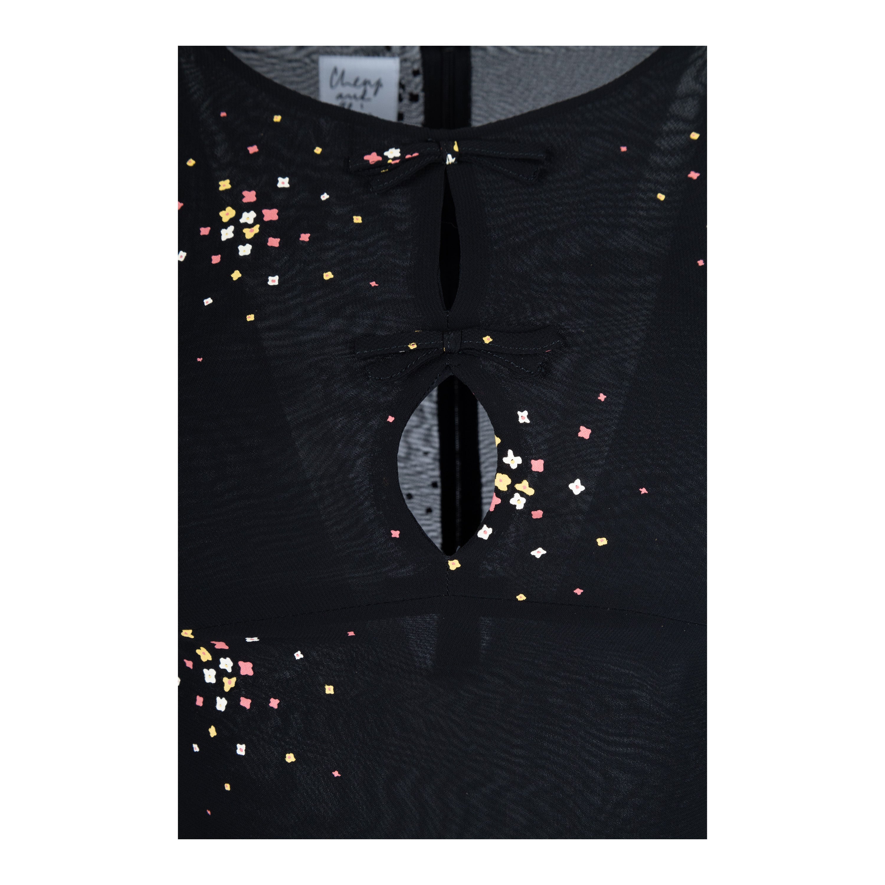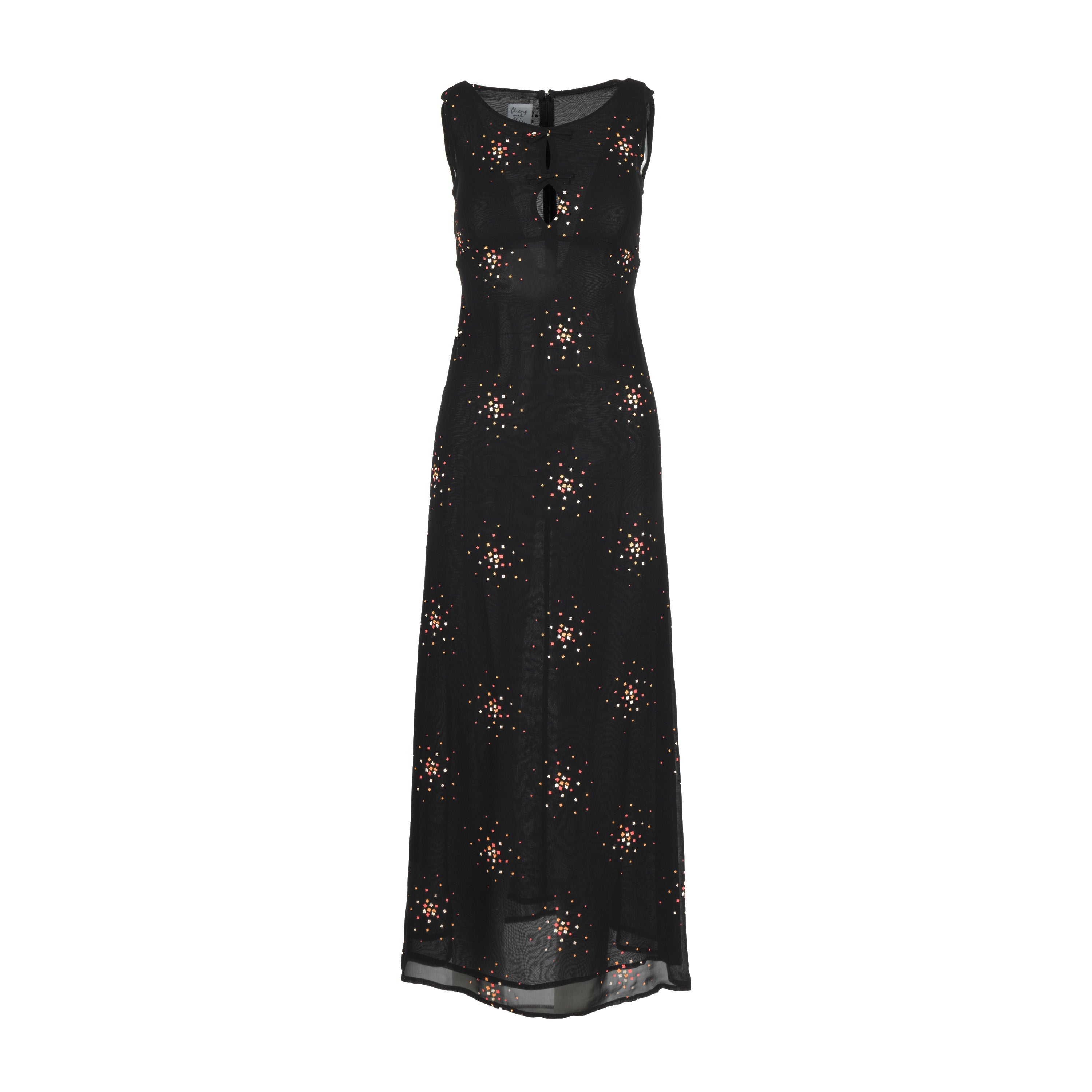 Expertly crafted from lightweight fabric, this Moschino Cheap and Chic Printed Maxi Dress boasts small flower prints all over for a delicate touch. The sleeveless design with a round neck and bow details, accented with small cut outs, creates a chic and elegant look. The dress is complete with a zip closure at the back.