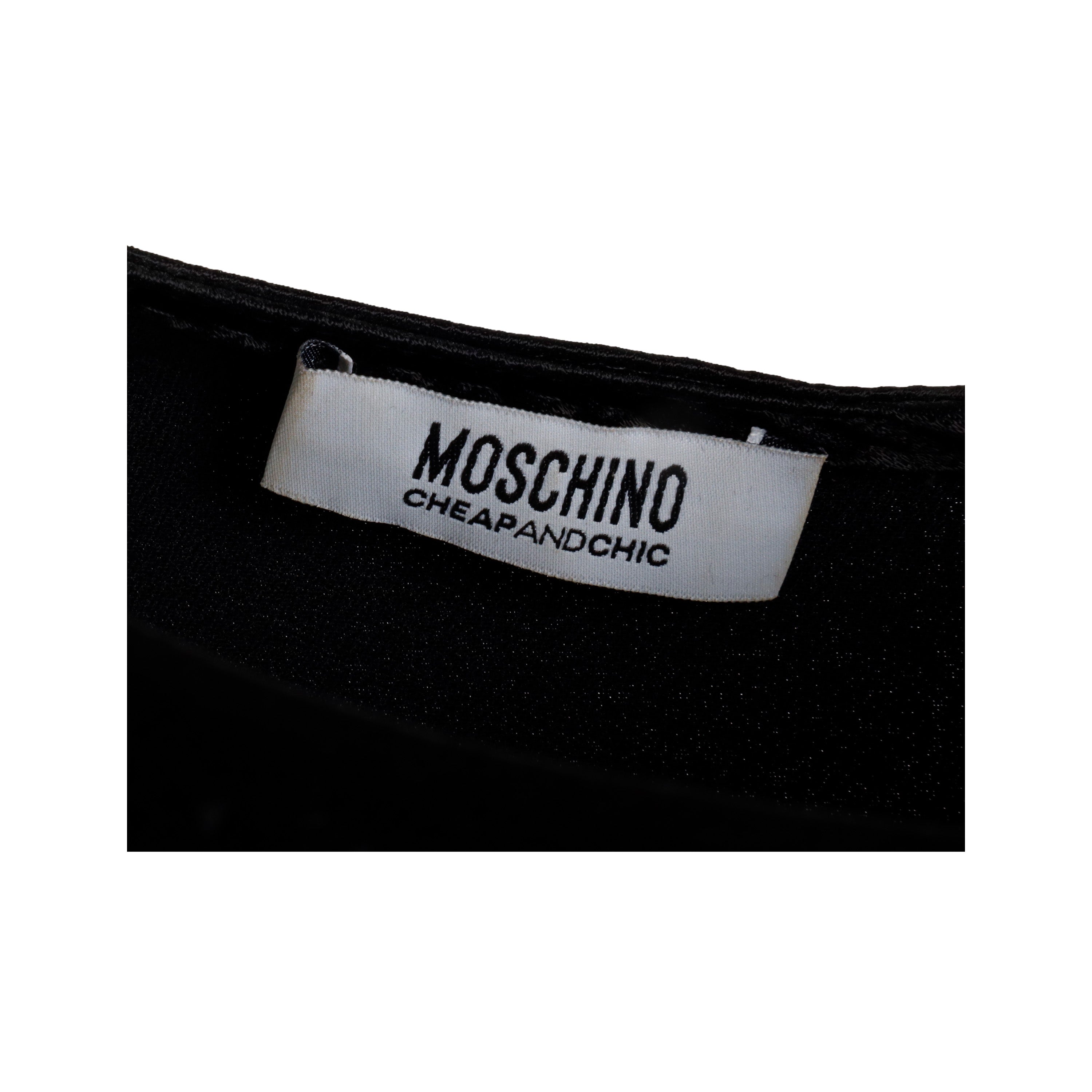 This Moschino Cheap and Chic sheath dress from the Fall 2009 collection is the perfect blend of style and comfort. Made from a wool and polyester blend, this midi cocktail dress features a fitted waistline and short sleeves, creating a flattering silhouette.