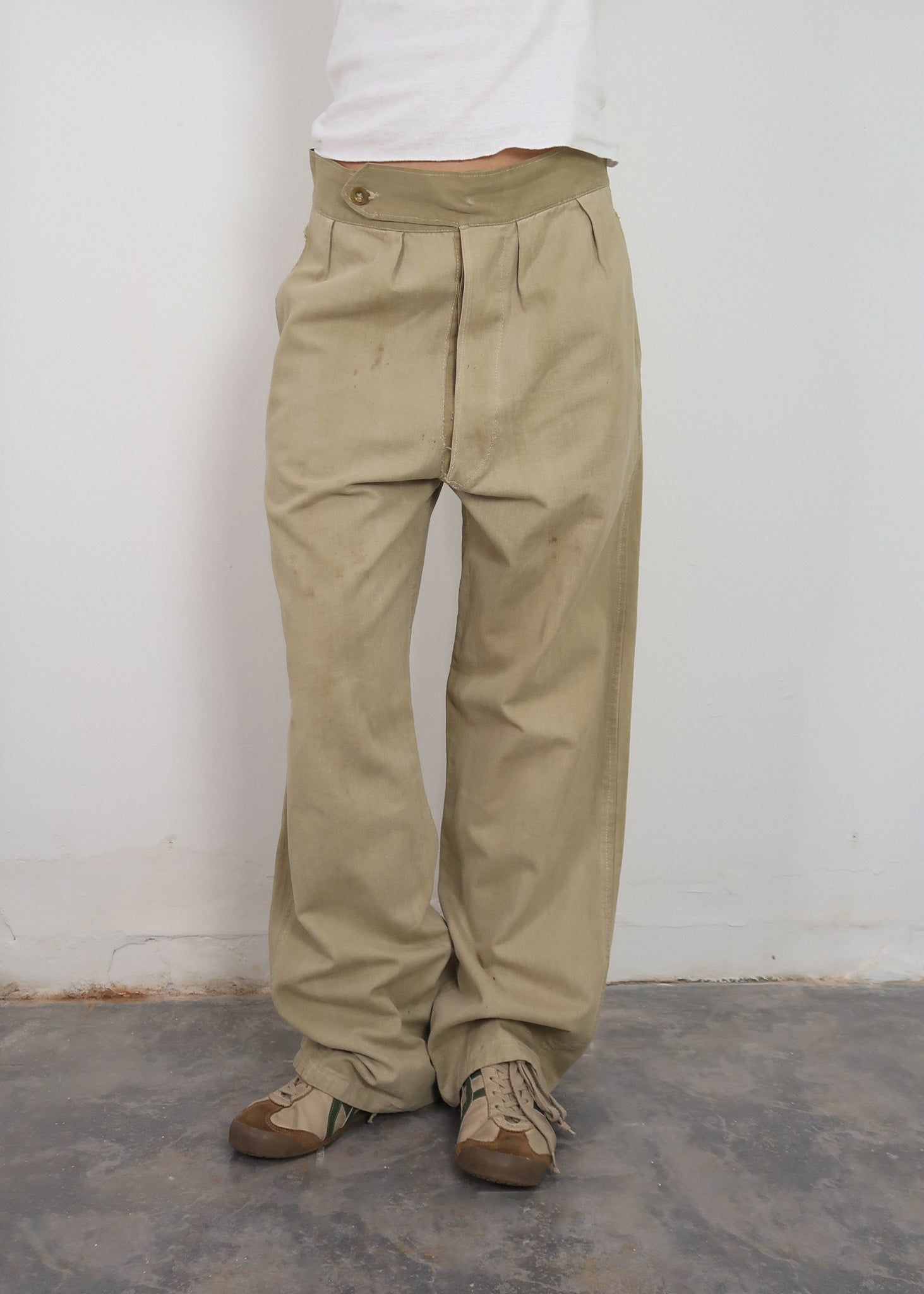 SOFT COTTON, METAL HARDWARE. THIS PAIR ARE TRULY UNIQUE AND HAVE BEEN WELL LOVED AND LOOKED AFTER.