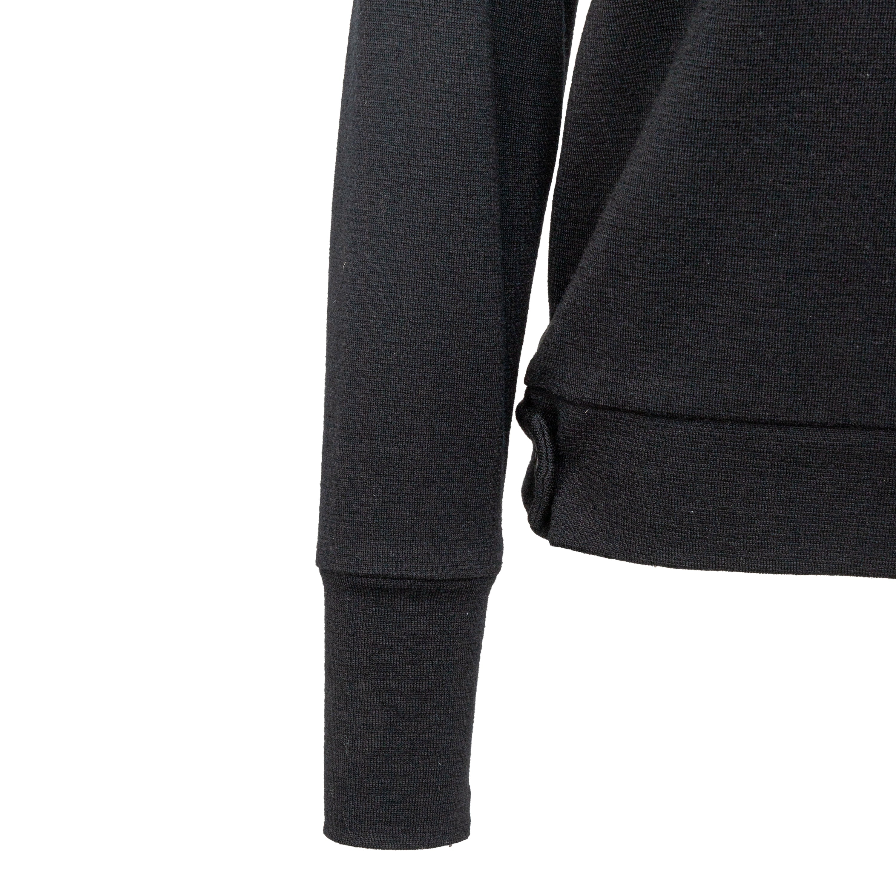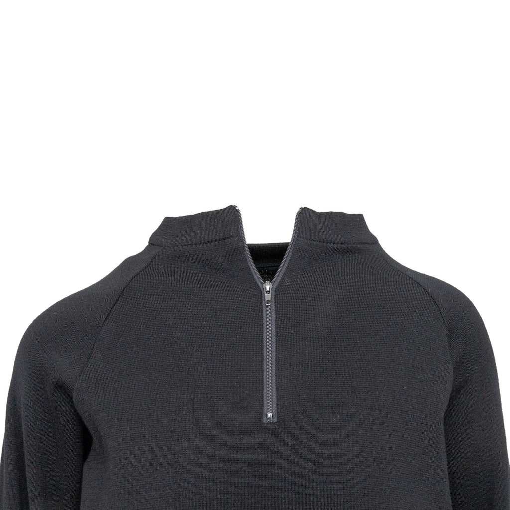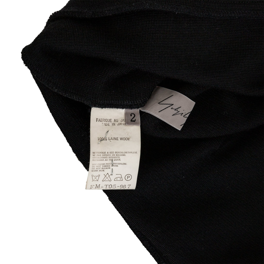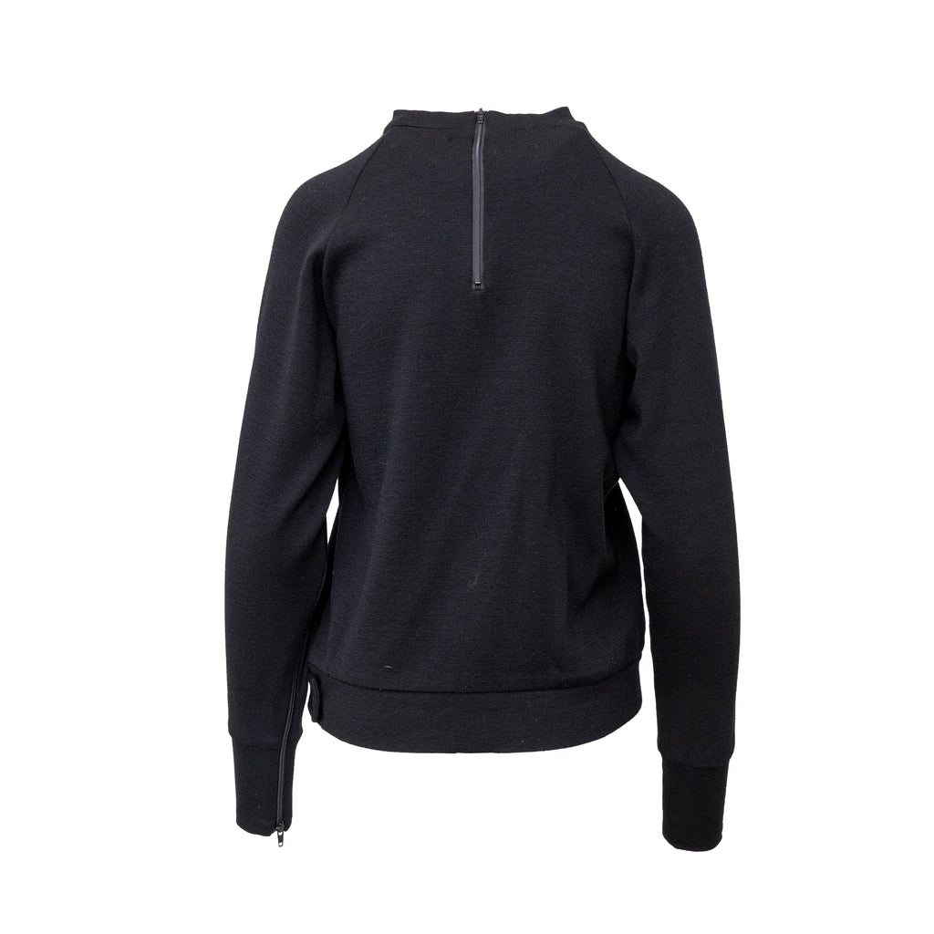 This Yohji Yamamoto Wool Sweater features a high neck design and raglan sleeves for an effortless look. Made of 100% wool in black, it provides both warmth and style. The back zipper closure and sleeve zipper on the left add functional and unique details.