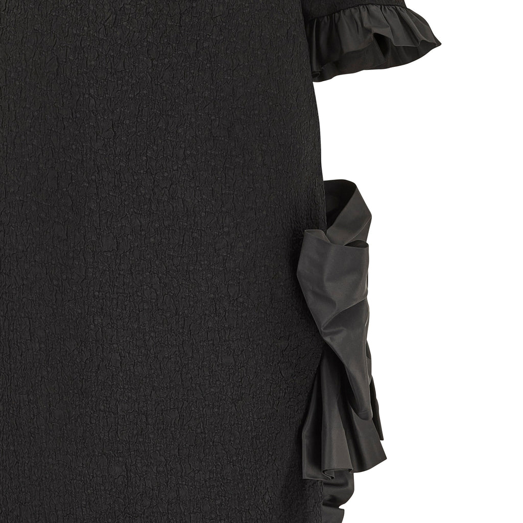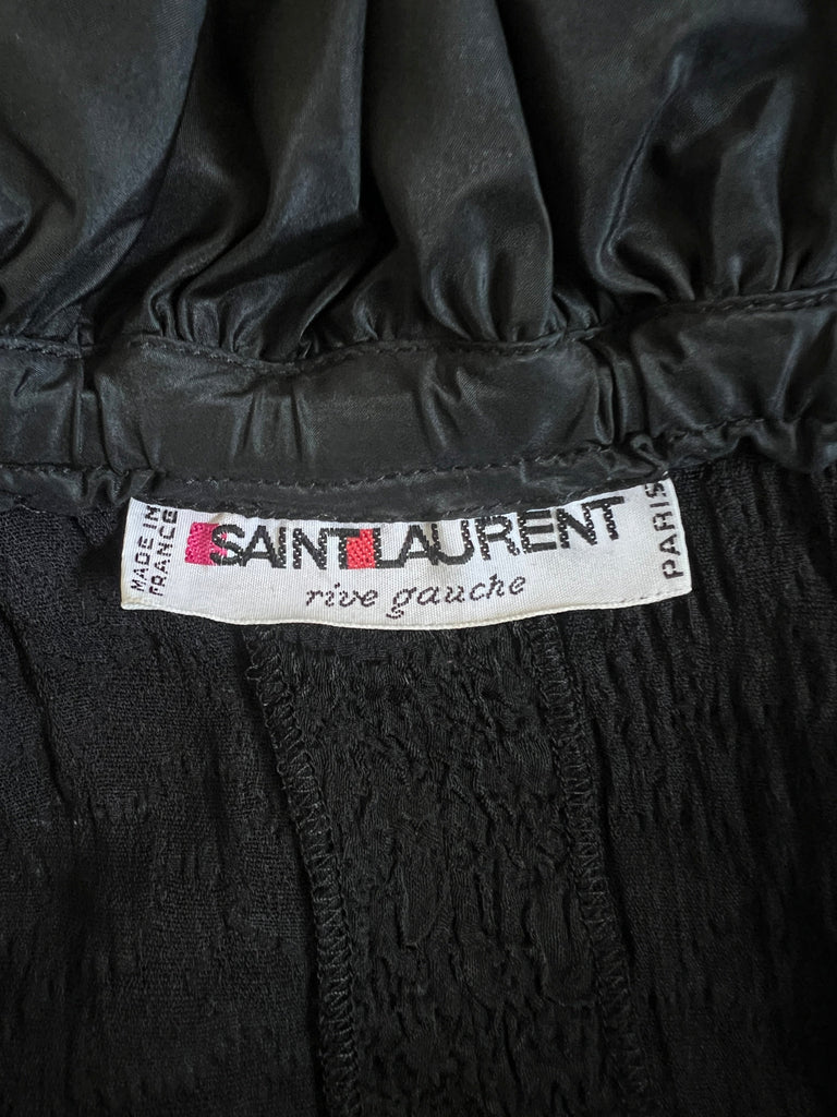 1987 Saint Laurent Runway Black Crinkle Dress with Taffeta Ruffles