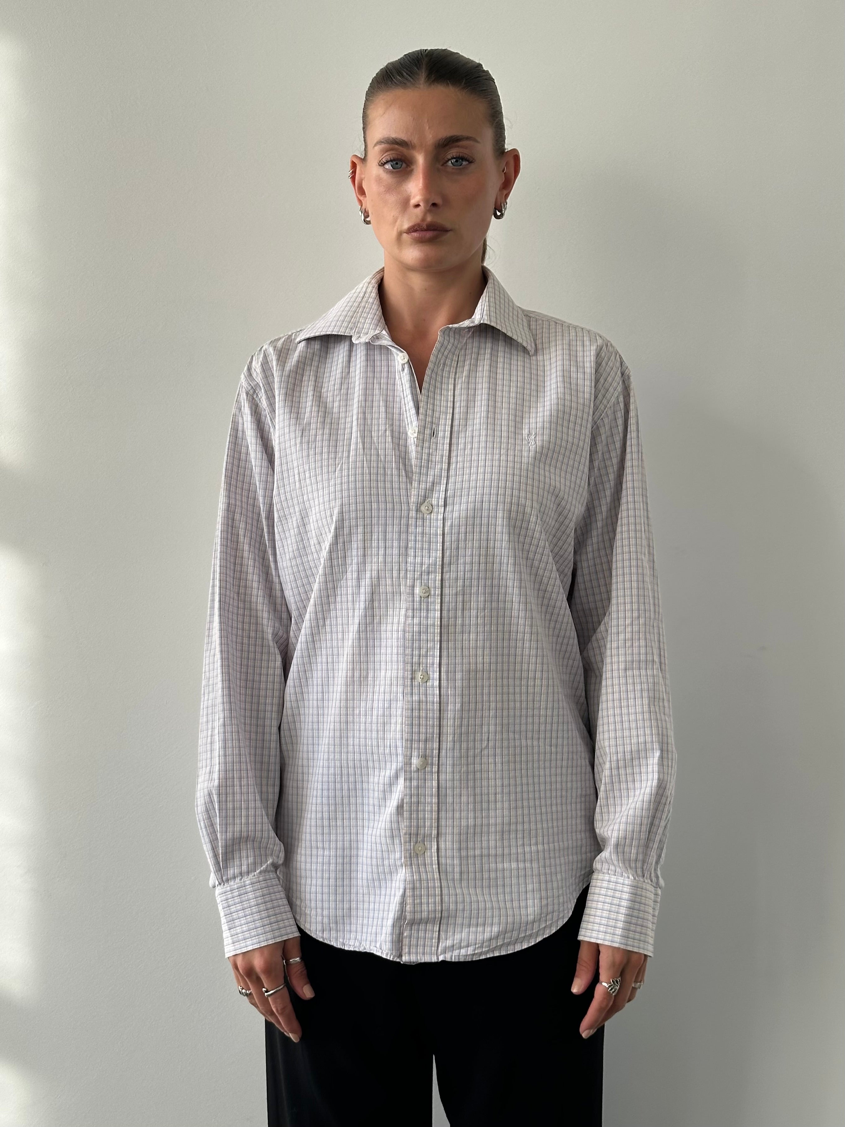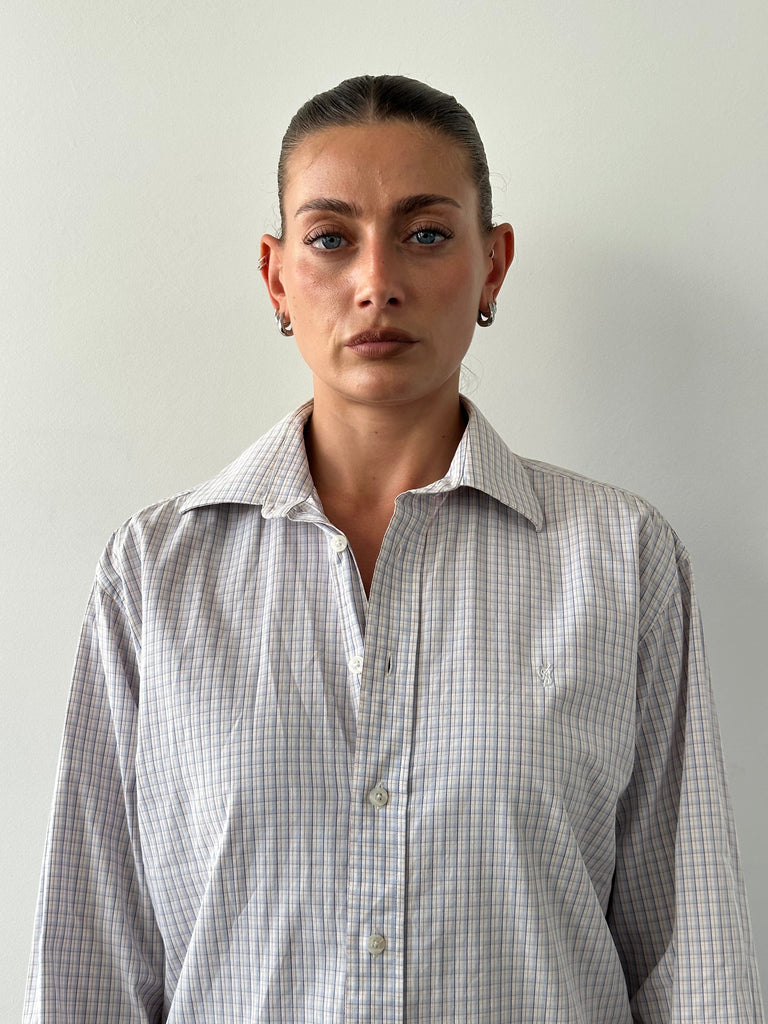 Yves Saint Laurent 00s Mini Check Pure Cotton Logo Shirt - M