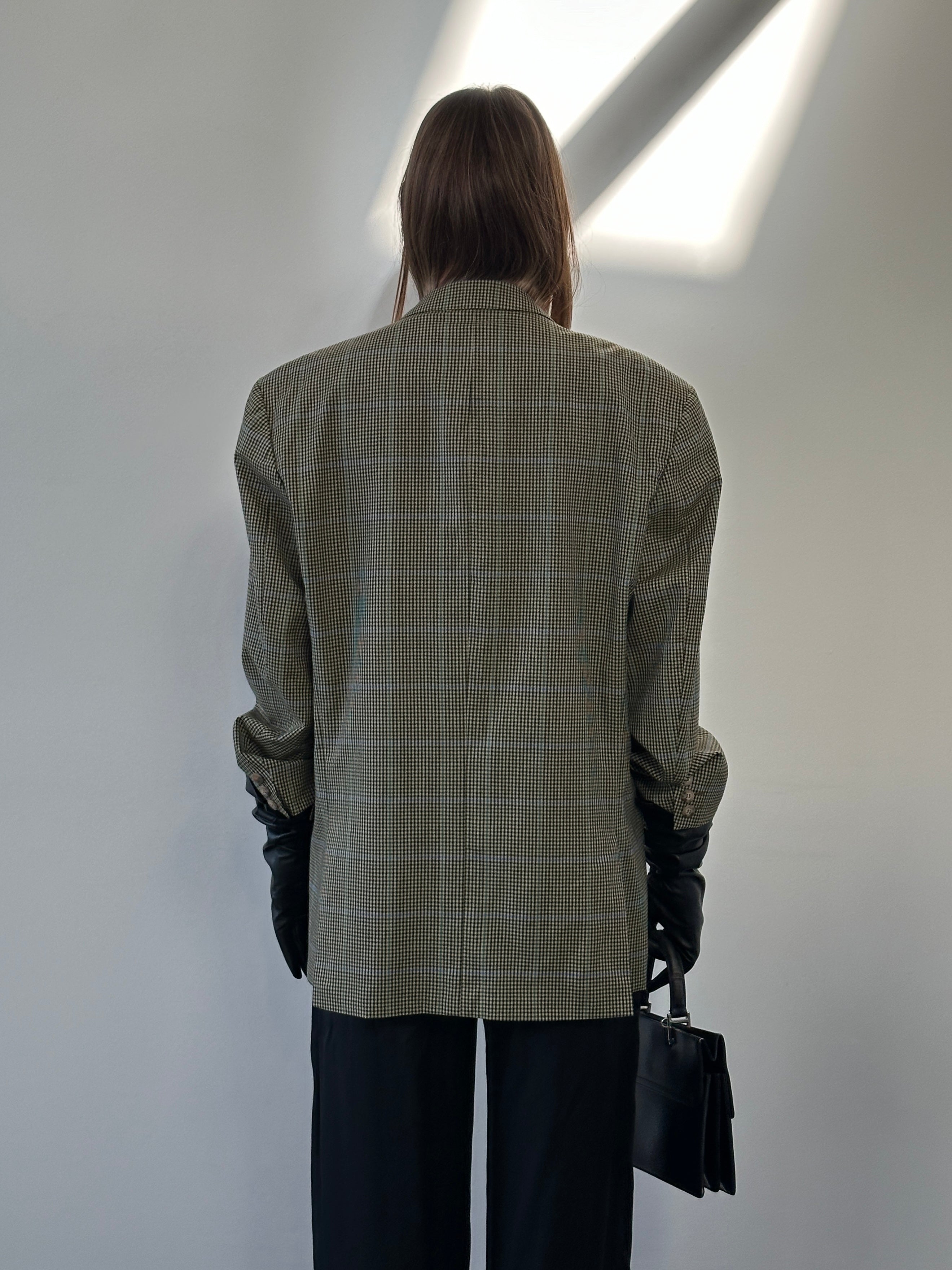 Yves Saint Laurent Pour Homme 1990s Wool Single Breasted Check Blazer - 44R/XL