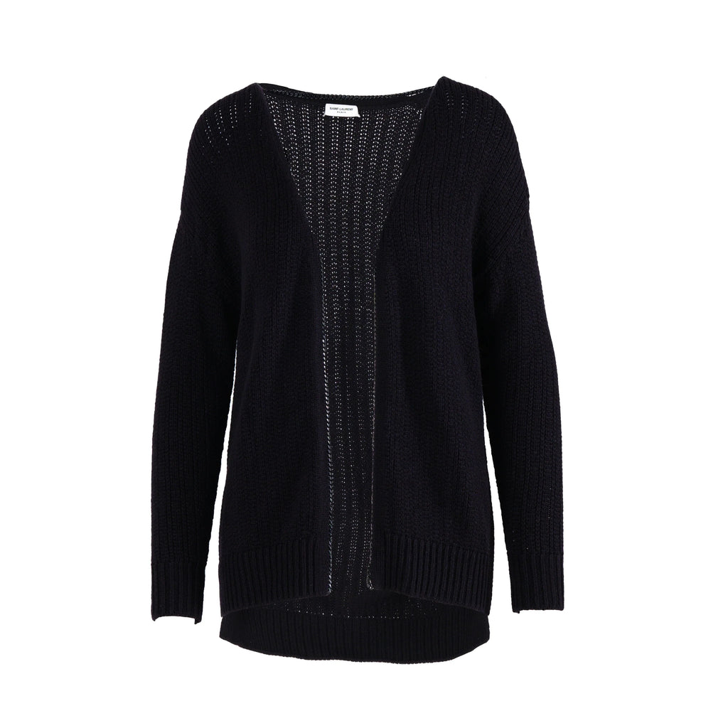 Saint Laurent Black Chain Trim Long College Cardigan - '10s