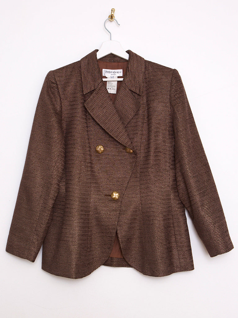 90S VINTAGE YVES SAINT LAURENT BROWN VELVET WITH GOLD BLAZER