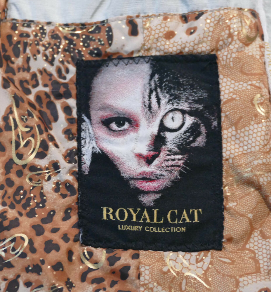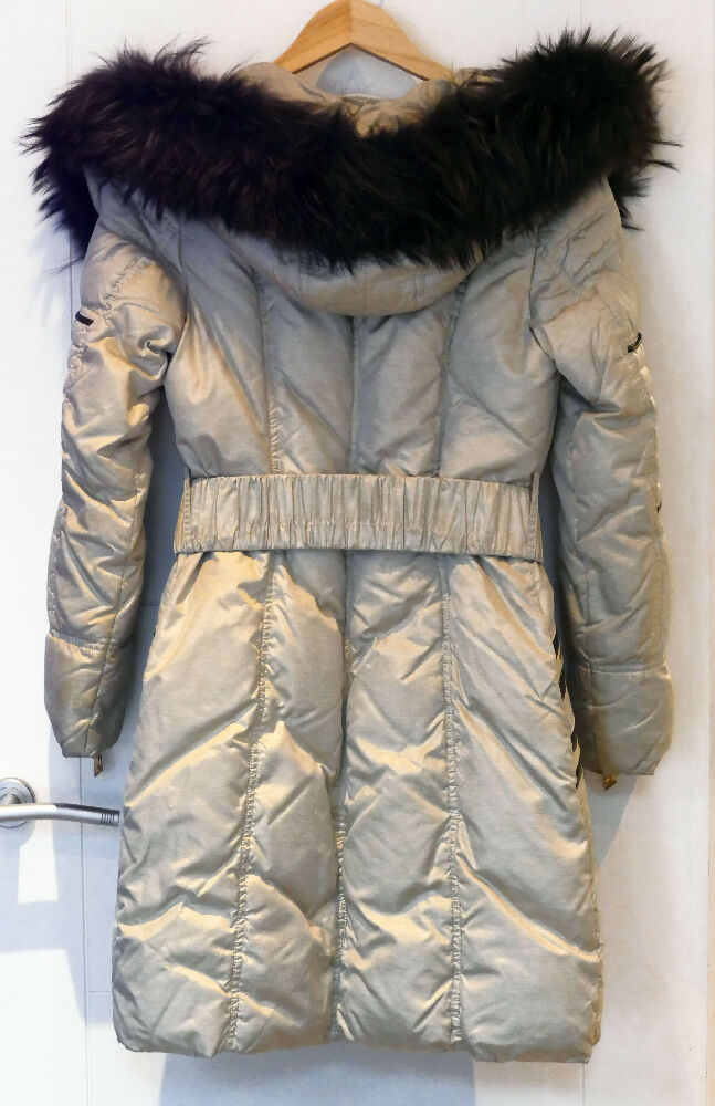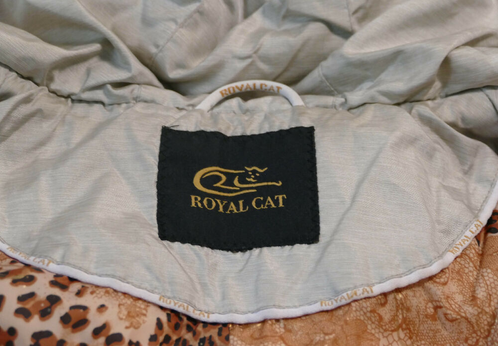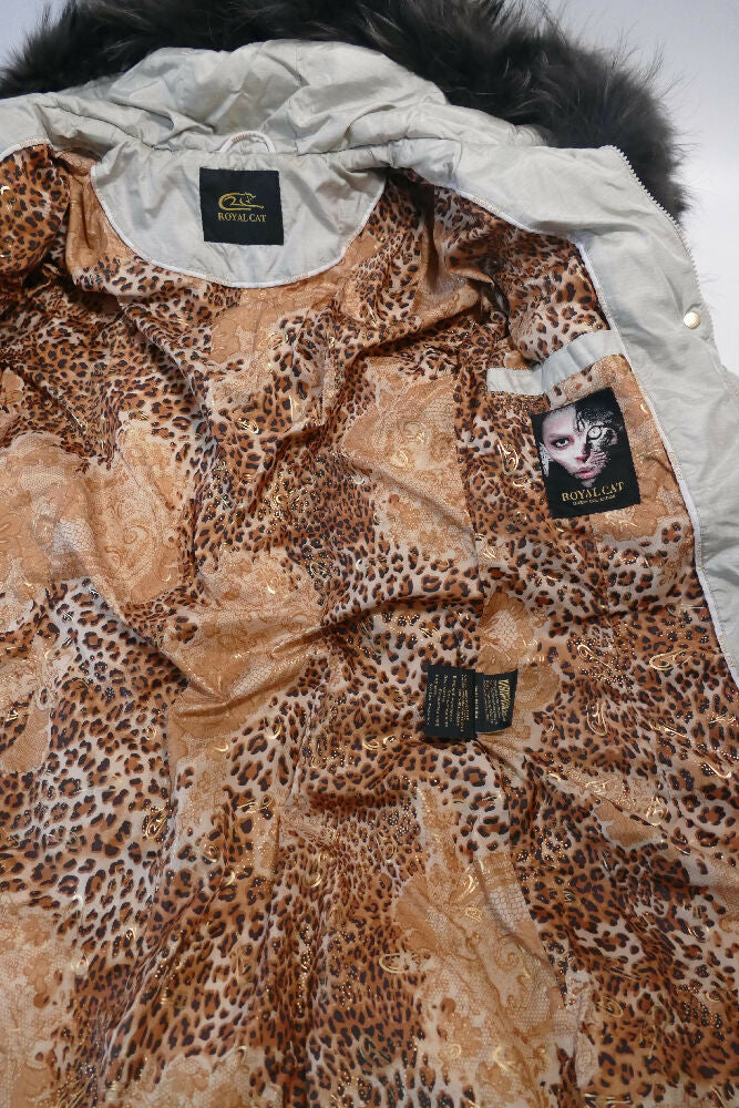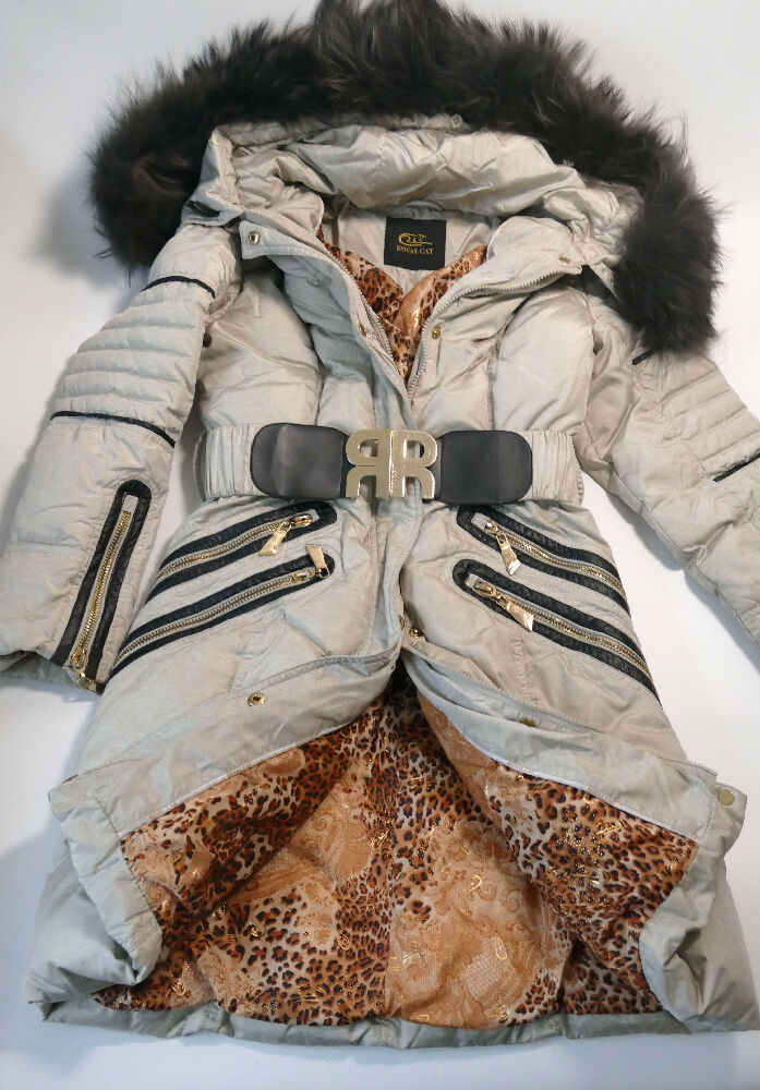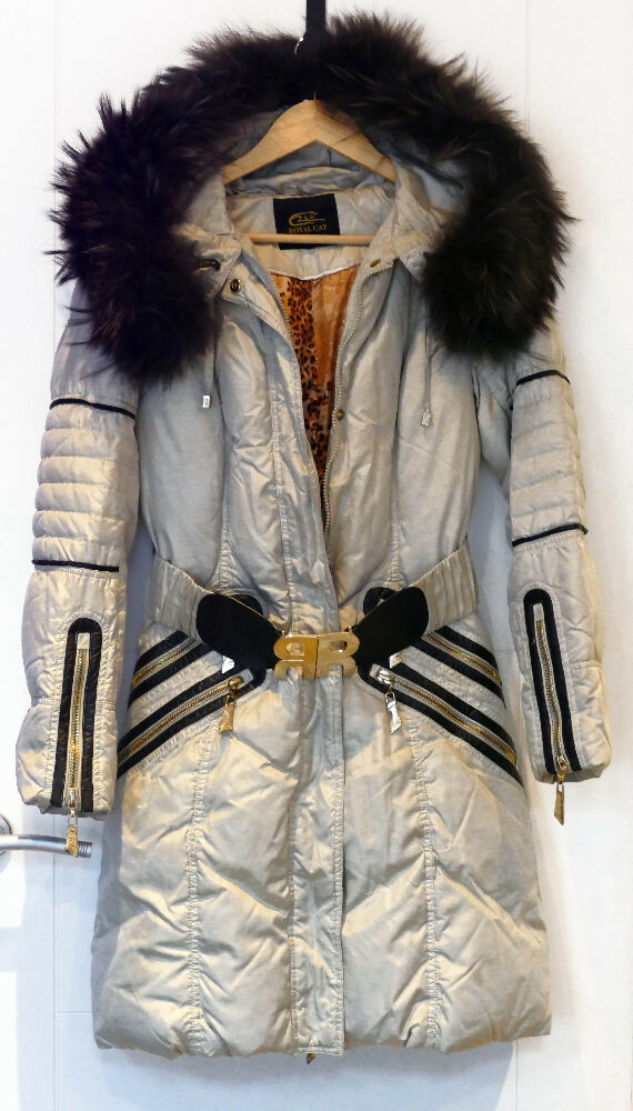 Royal Cat Duck Down with real fur hood detachable trimming. Generous hood. Extremely warm, no need to wear a jumper underneath. Double zip, several generous pockets inside, and outside with fleece lining (see pictures) very comfortable and warm.Excellent condition. Tiny signs of wear.