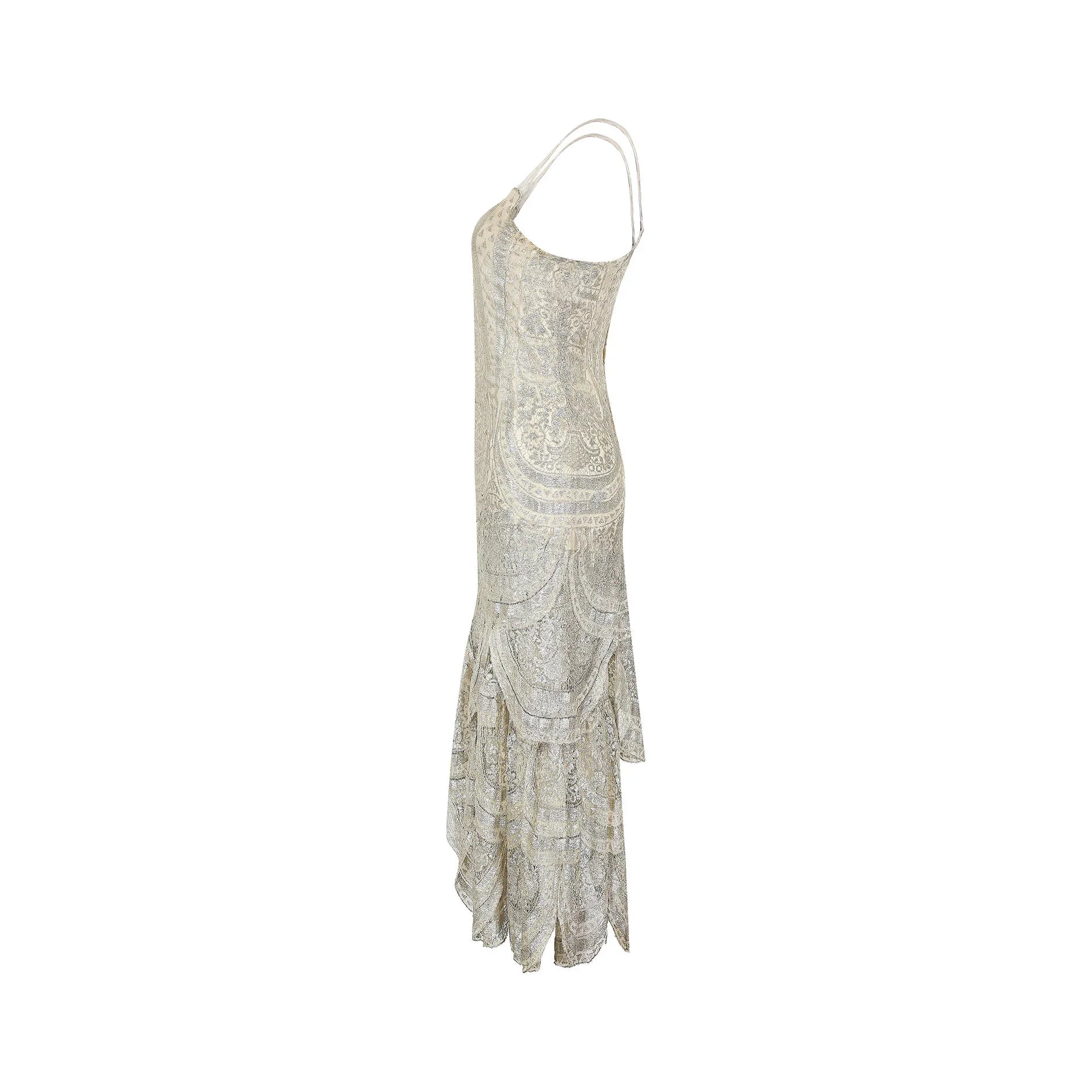 1920s Silver Cobweb Lame Flapper Culottes Dress