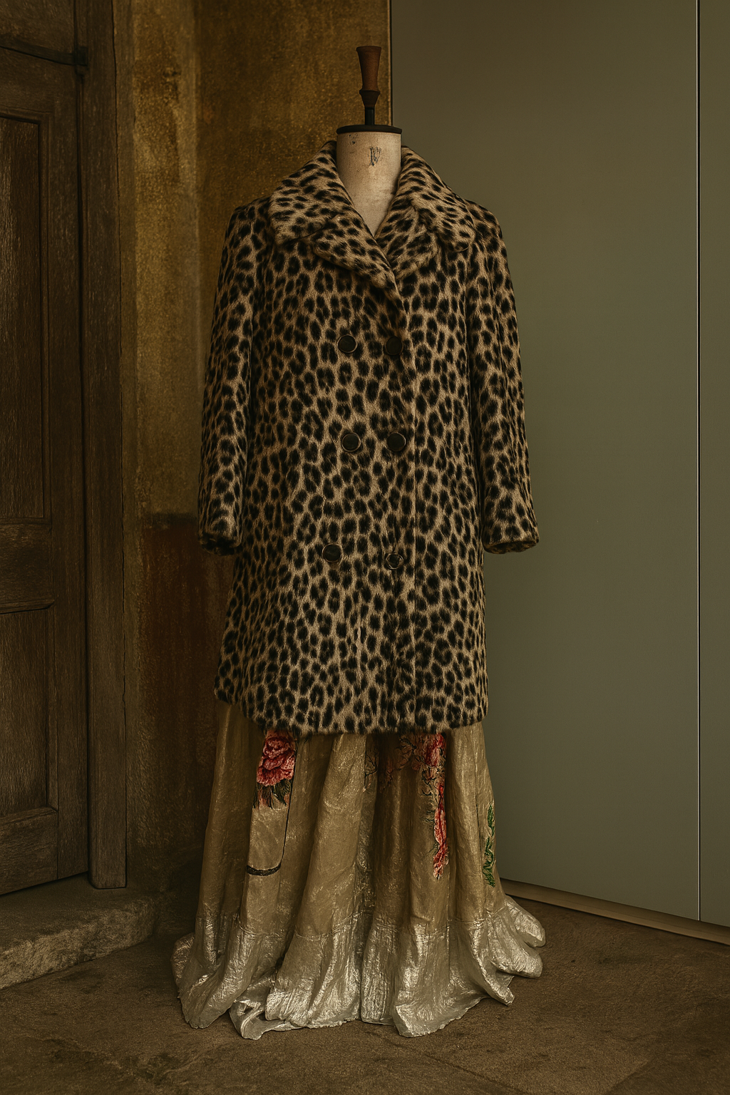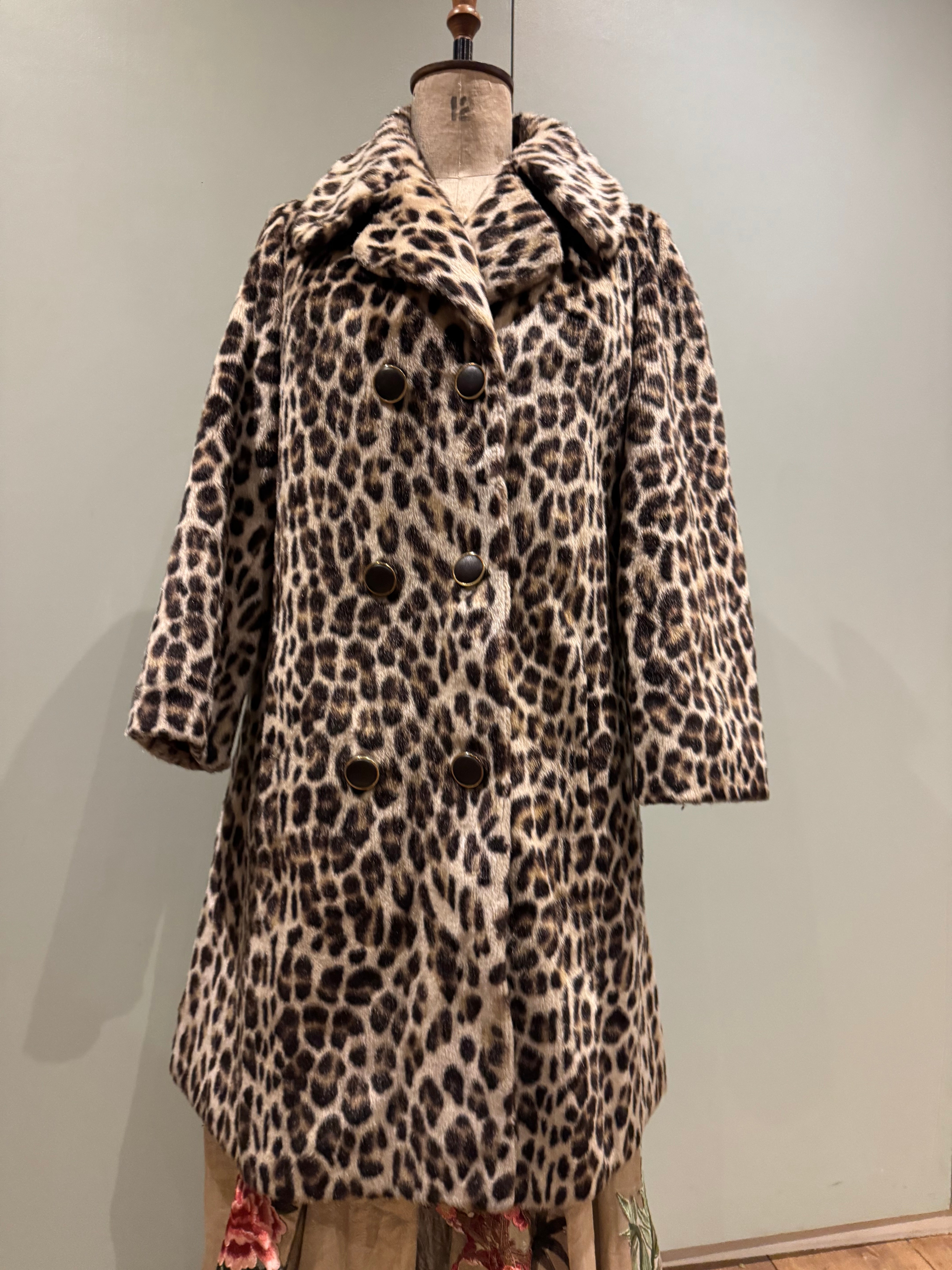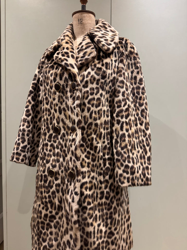 Leona, 40s faux fur leopard print double breasted coat