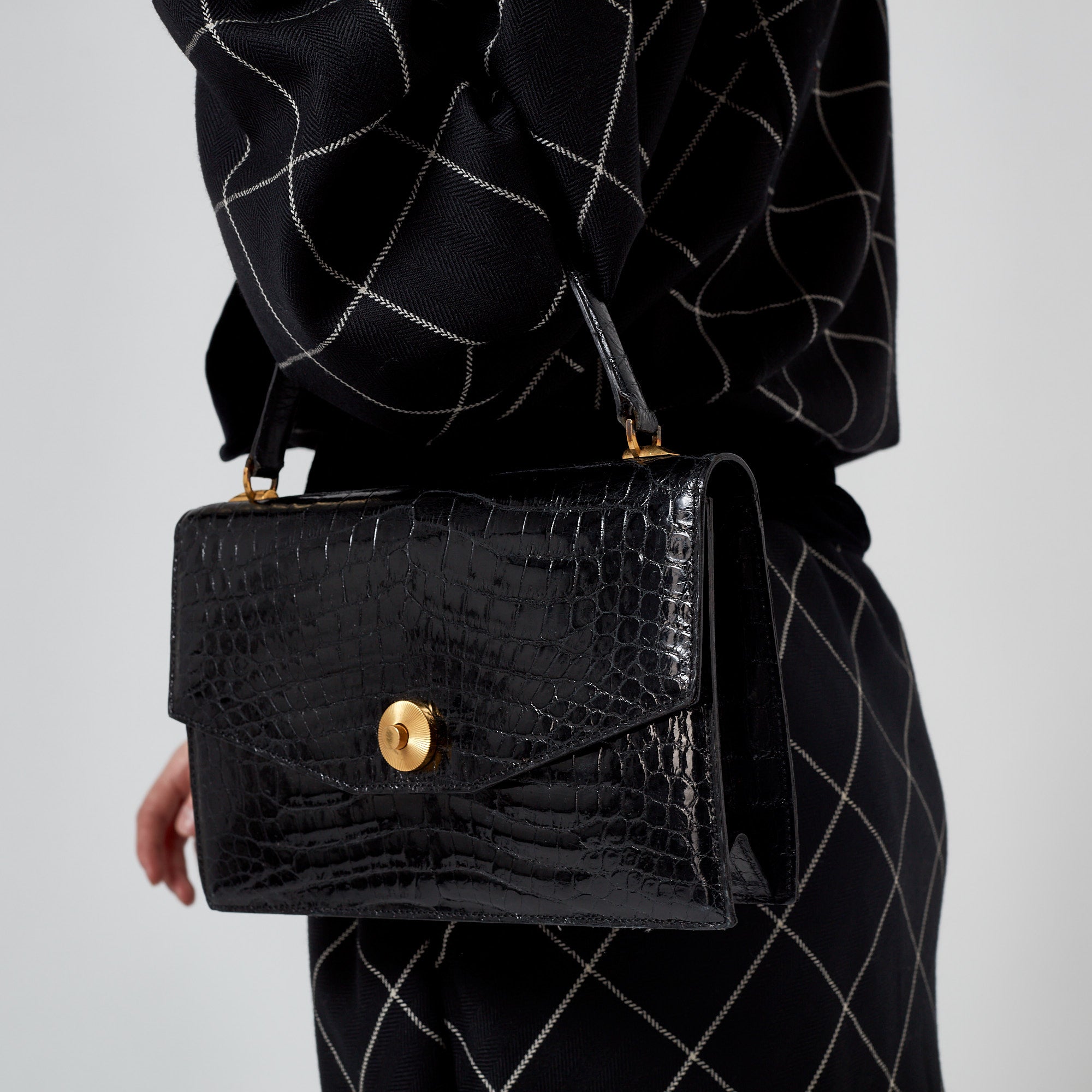 1960s Black Asprey Top Handle Crocodile Leather Bag