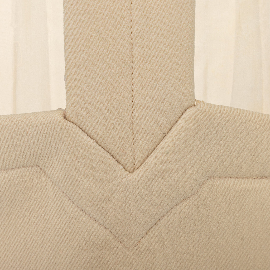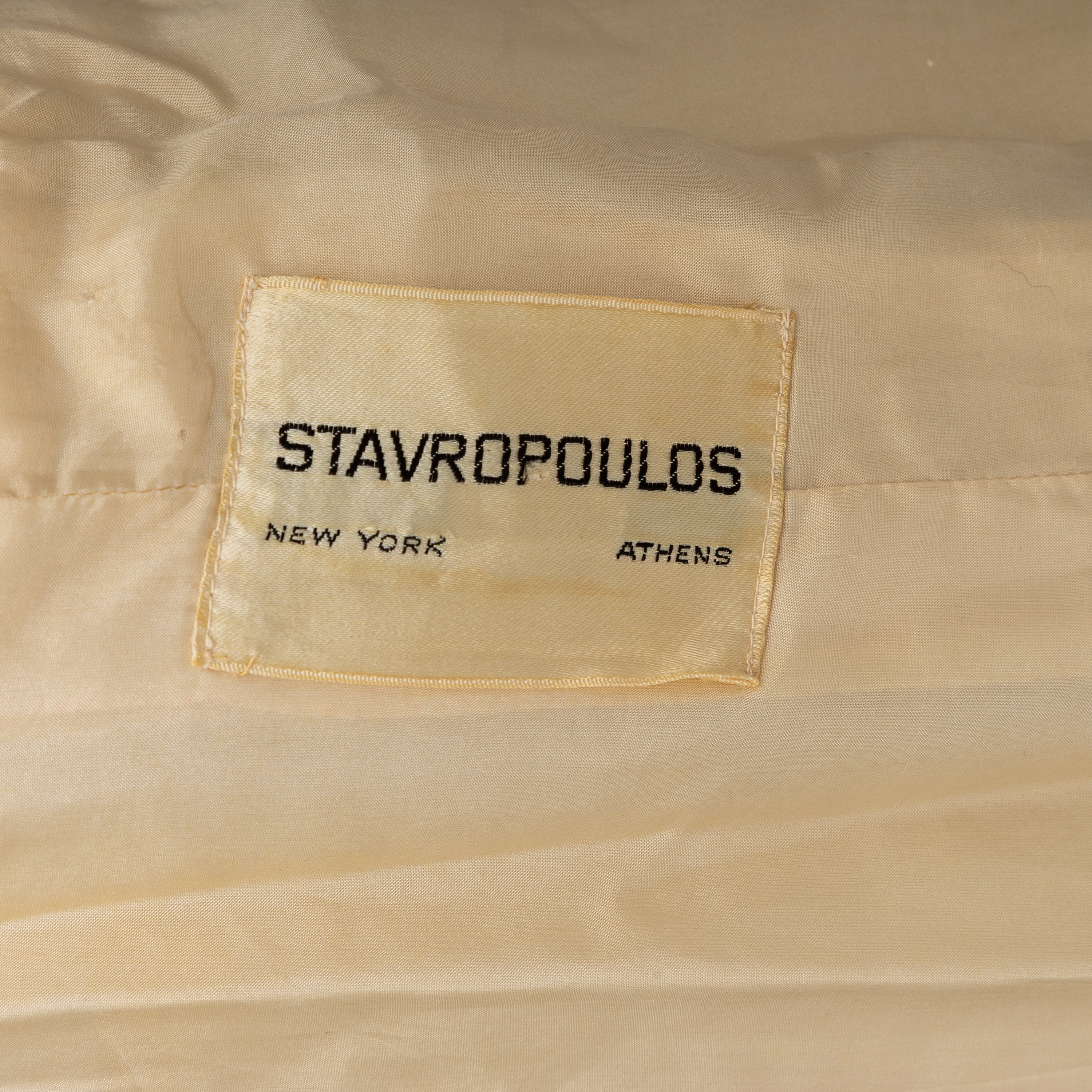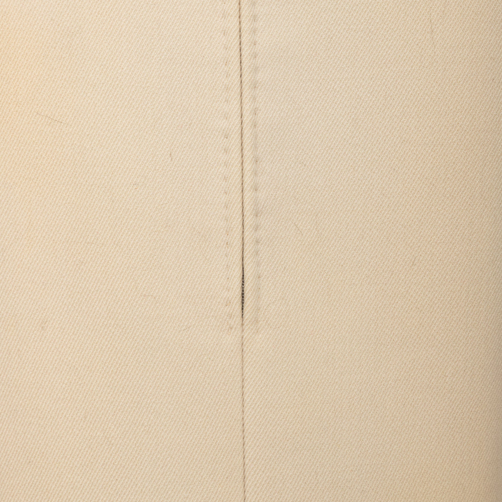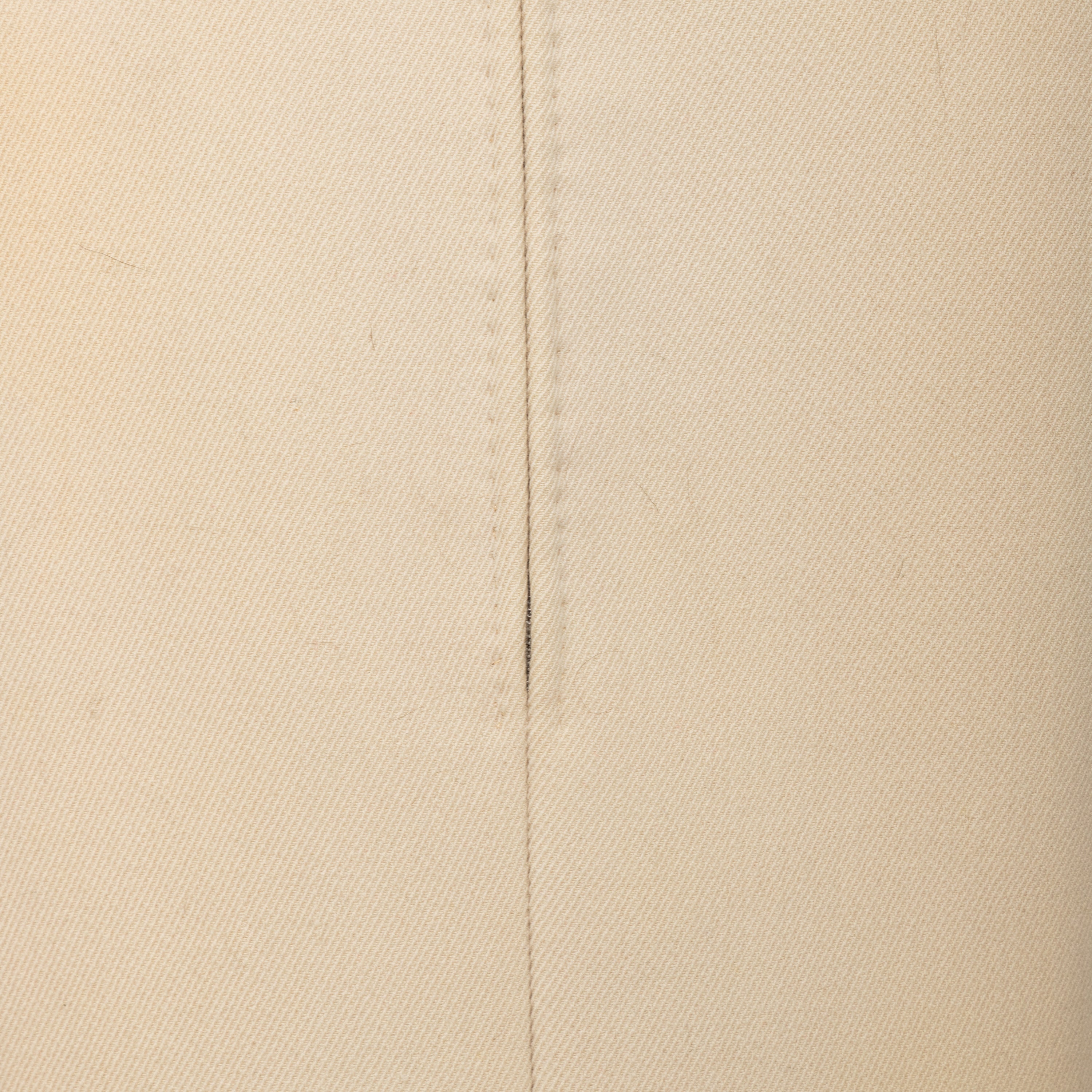 This 60s beige wool blend short overall from Stavropoulos features a back zipper and a chic round cut-out design, fully lined in acetate for a sleek, stylish fit.
