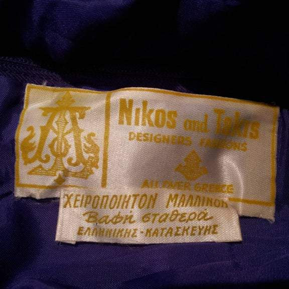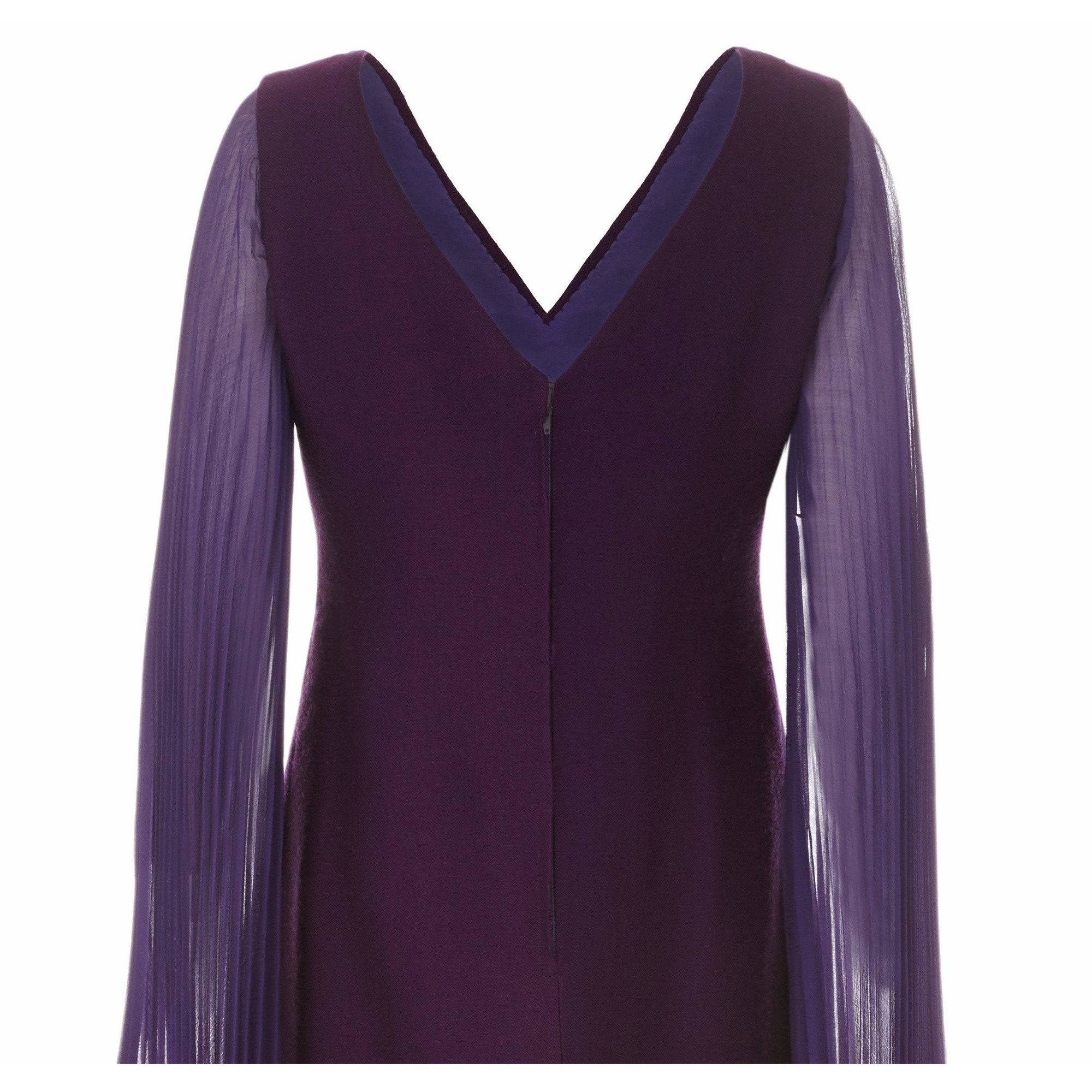 1970s Nikos-Takis Couture Purple Wool and Chiffon Dress