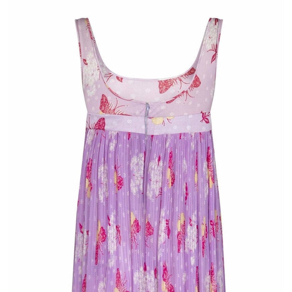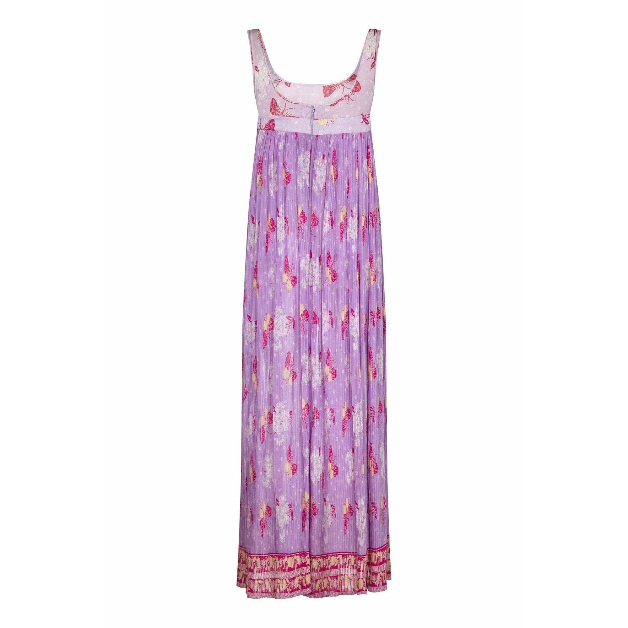 1970s Purple Butterfly Fortuny Style Empire Line Dress