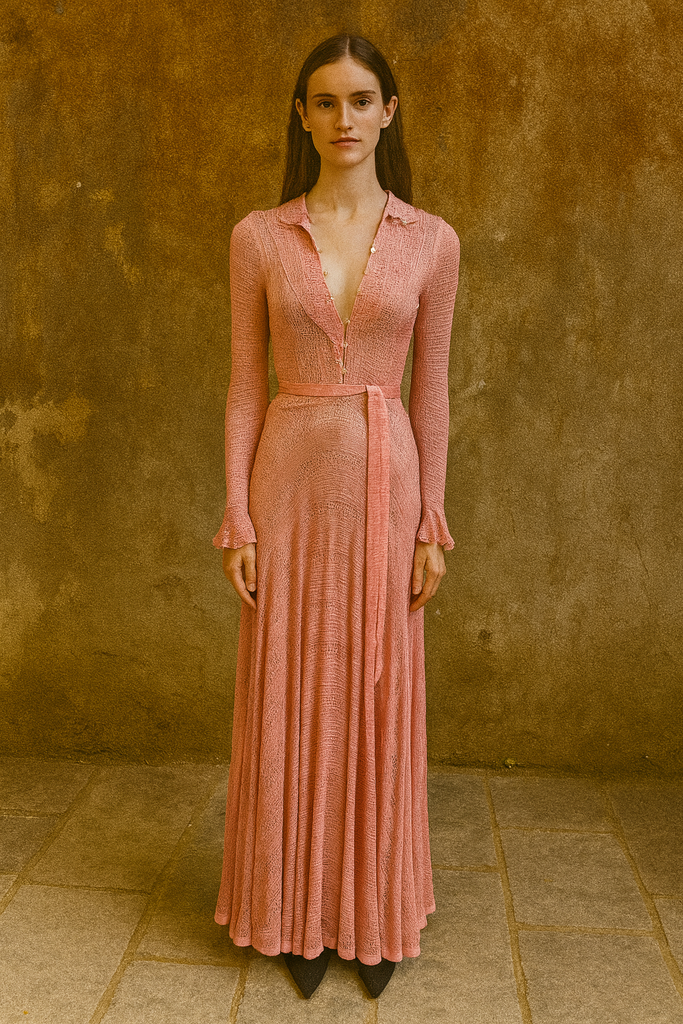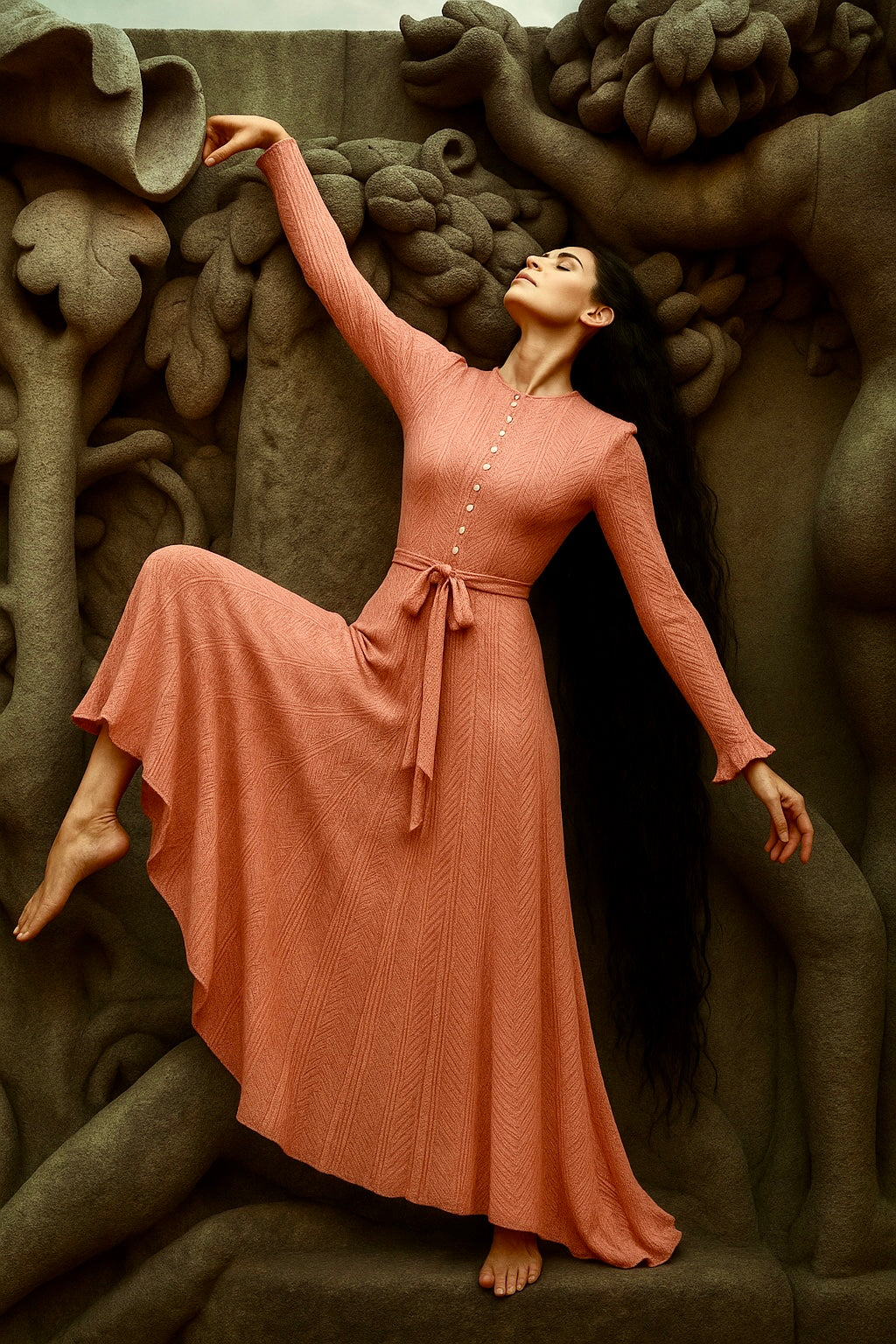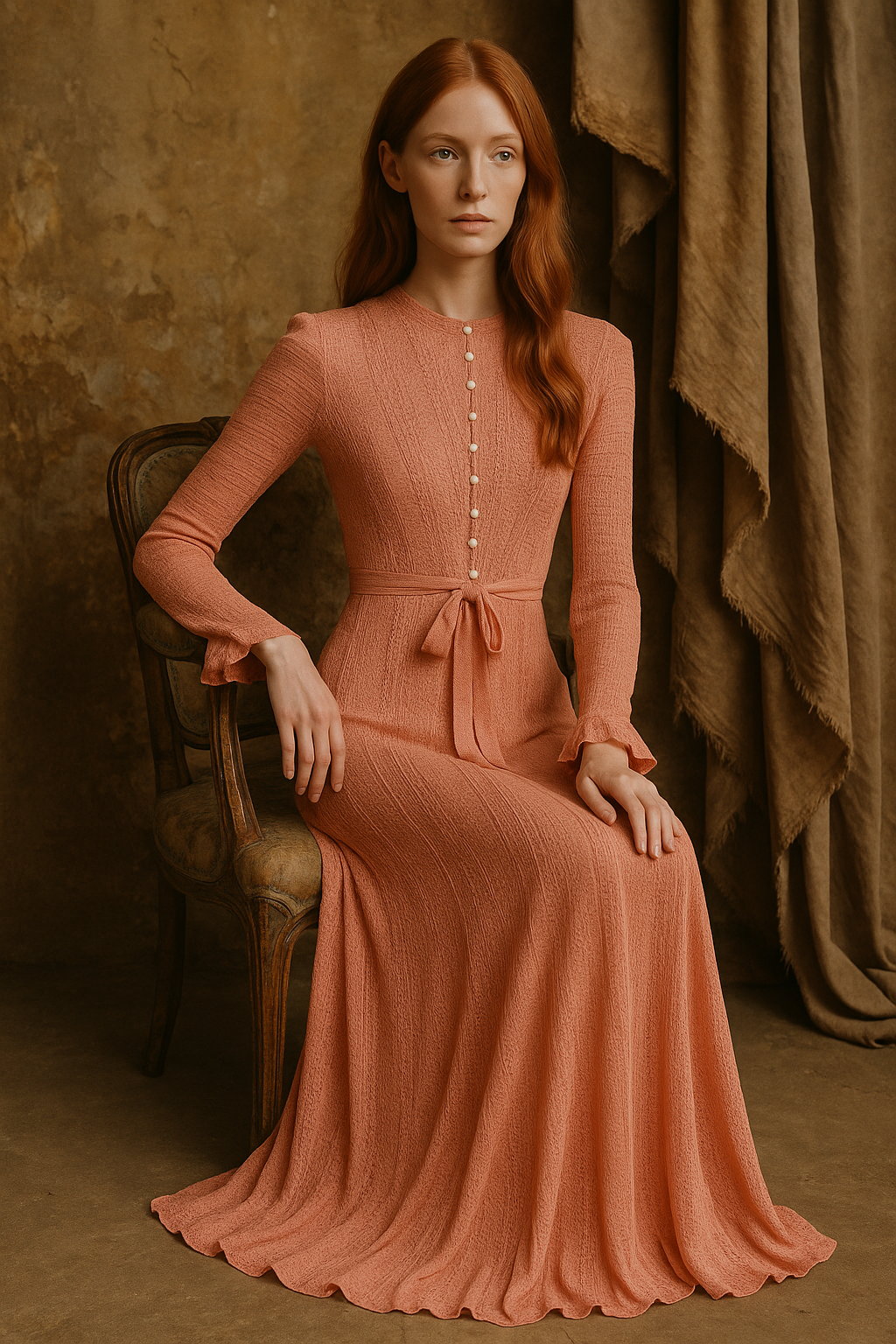 Discover a piece of fashion history with our Lola dress, original and ionic 70s buttoned knit dress. Made with a fine knit cotton blend material, this dress features long sleeves, a front button design, and a A line skirt. Complete the look with the matching belt and fine lining. Parrot with boots or gladiator style sandals for a timeless look.