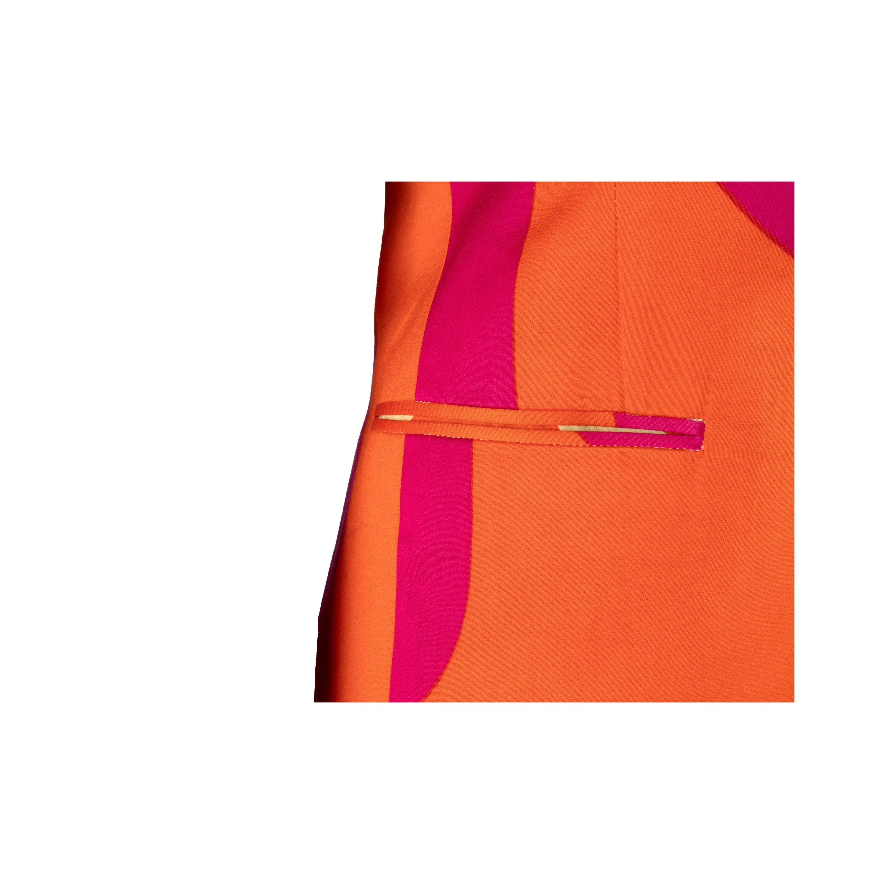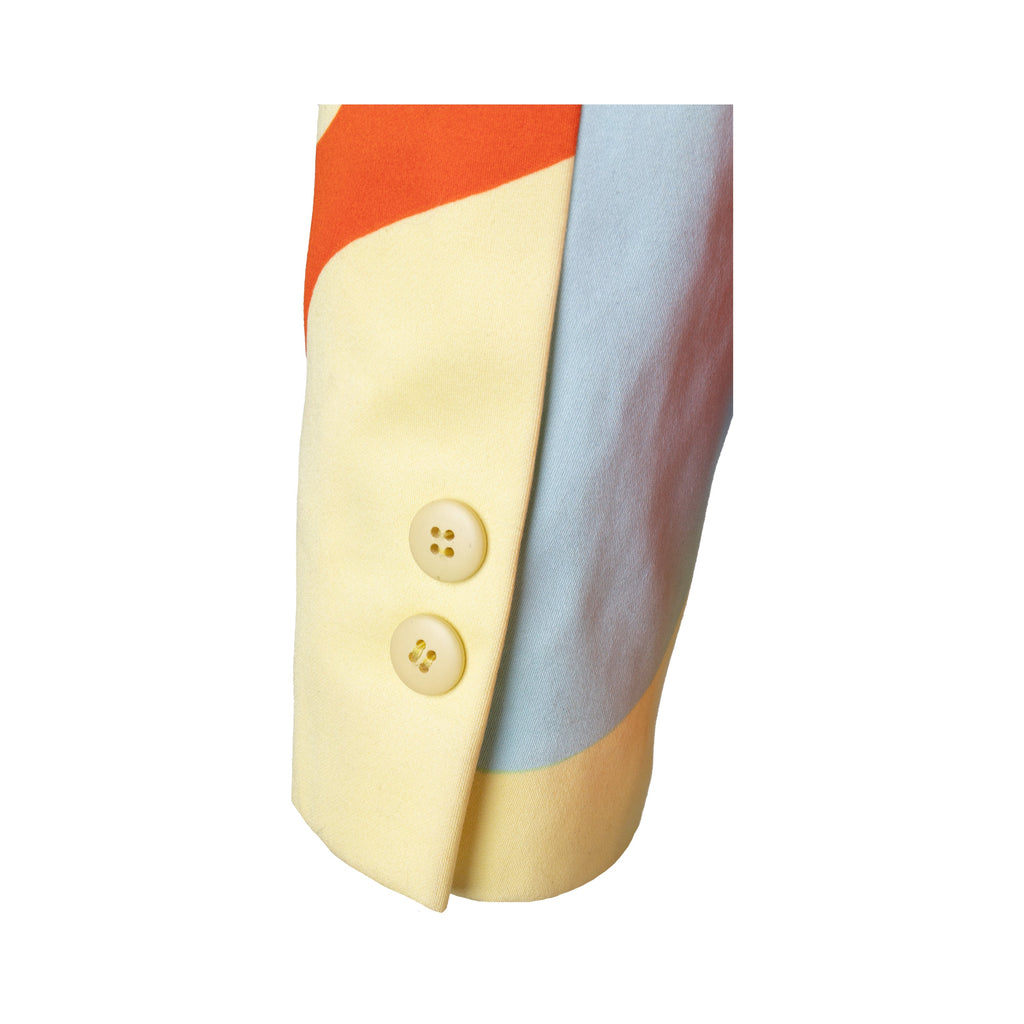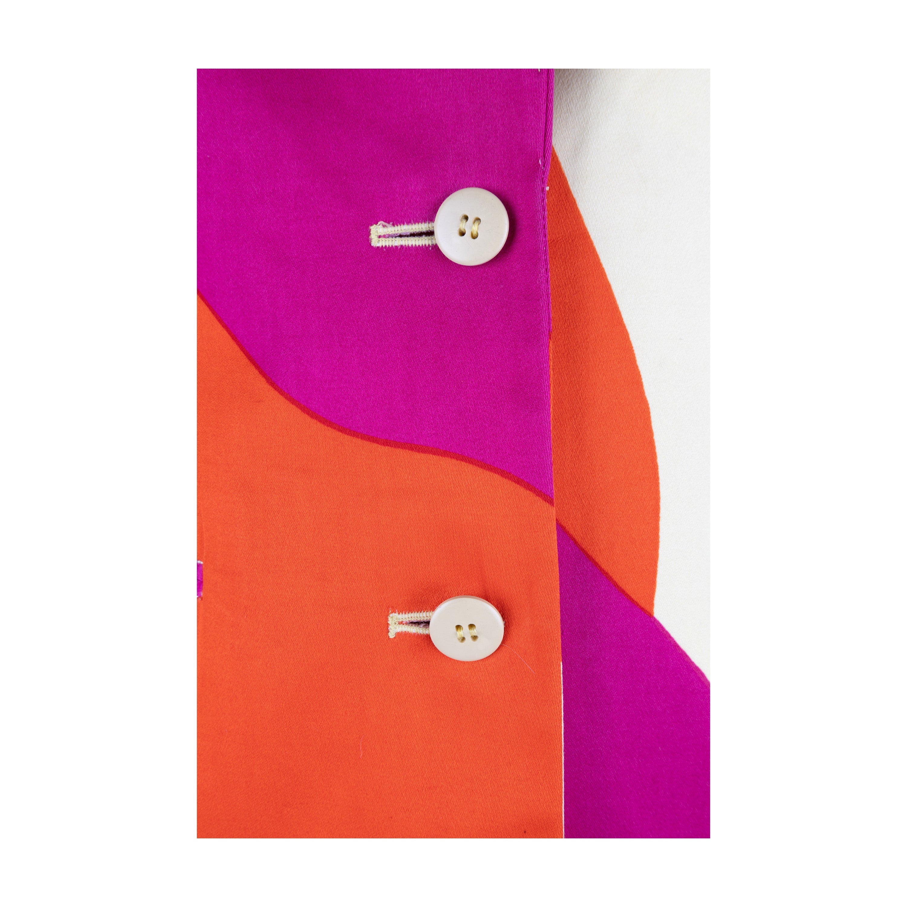 This vintage Stephen Sprouse x Andy Warhol 1987 Camouflage Jacket is a one-of-a-kind jacket designed by Andy Warhol American. Lapel collar and chest pocket provide classic style, while two front buttons complete the look. The unique swirl pattern in multicolor adds a touch of iconic flair. This item is featured in the MET's costume institute section online, making it a treasured, historic piece.