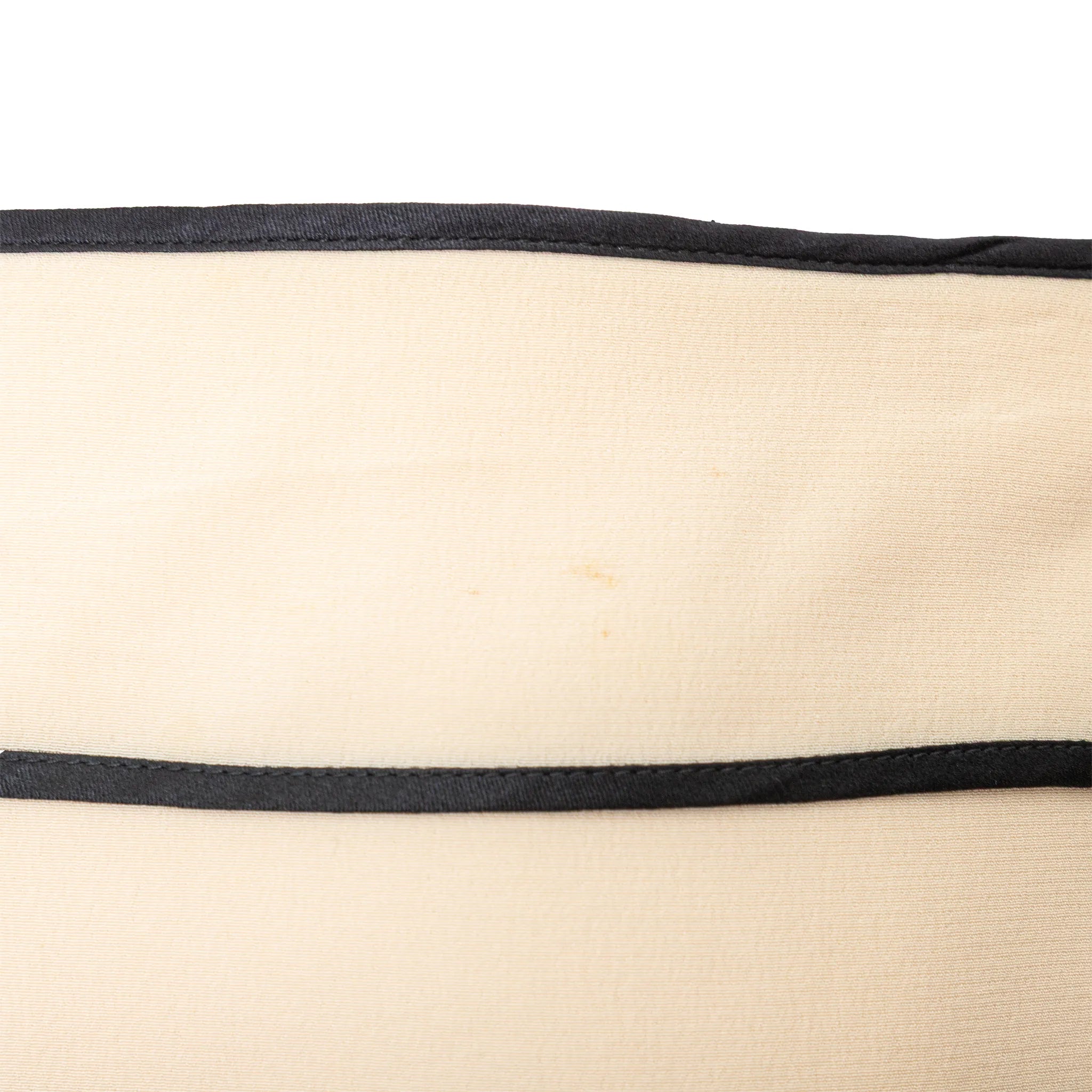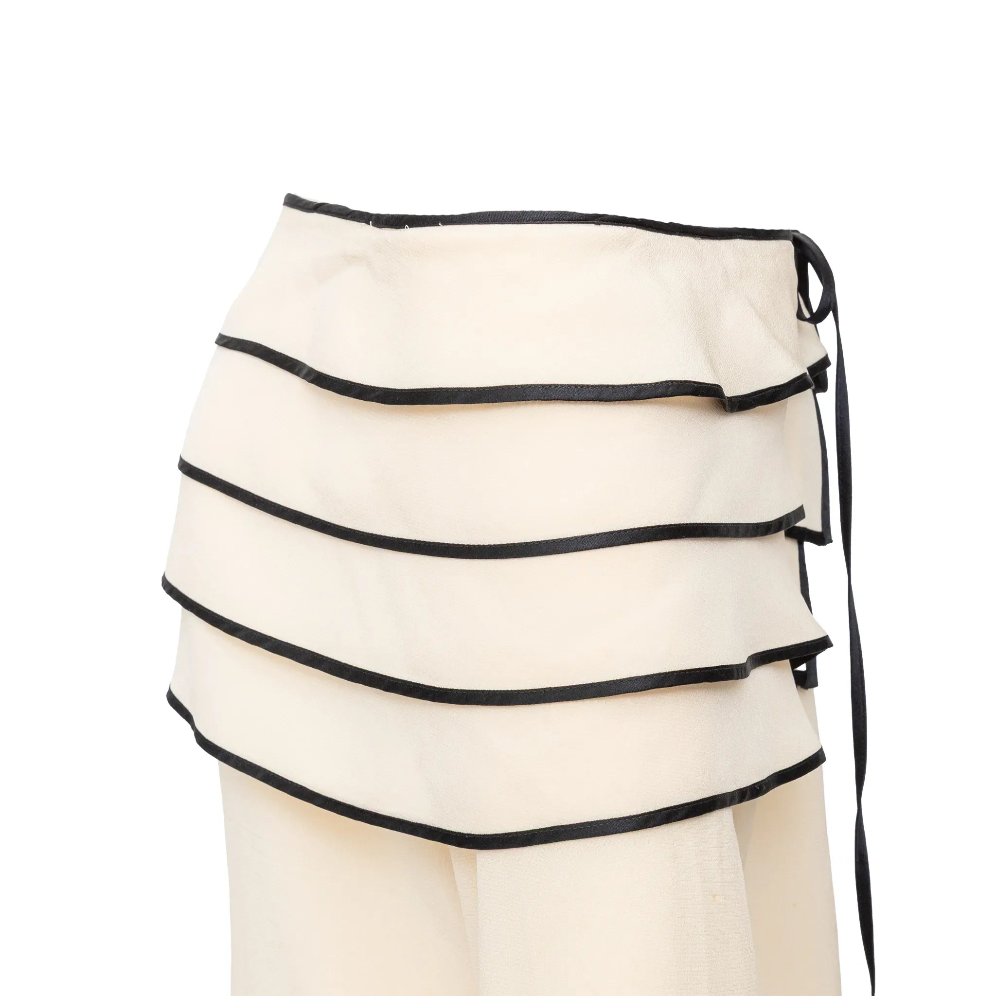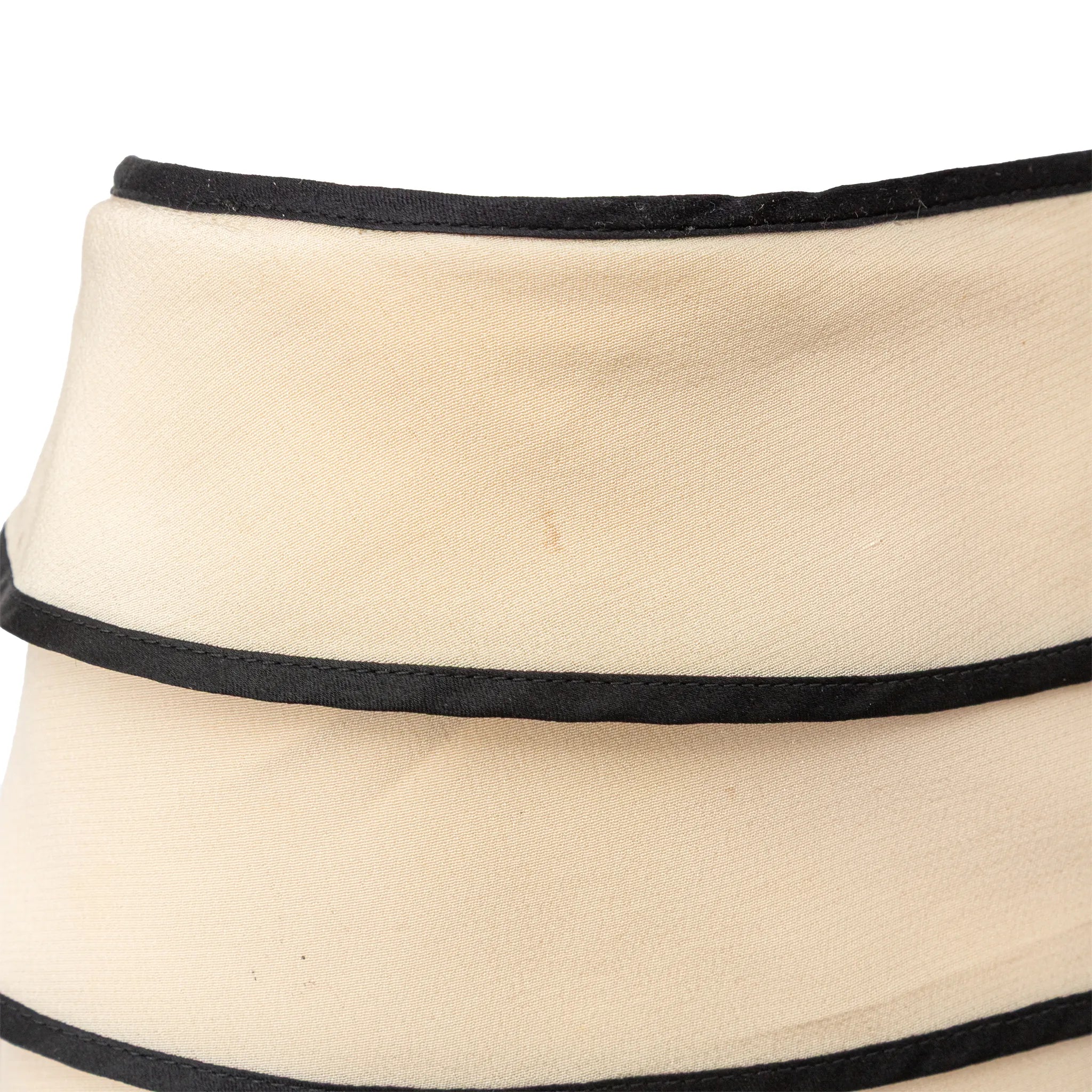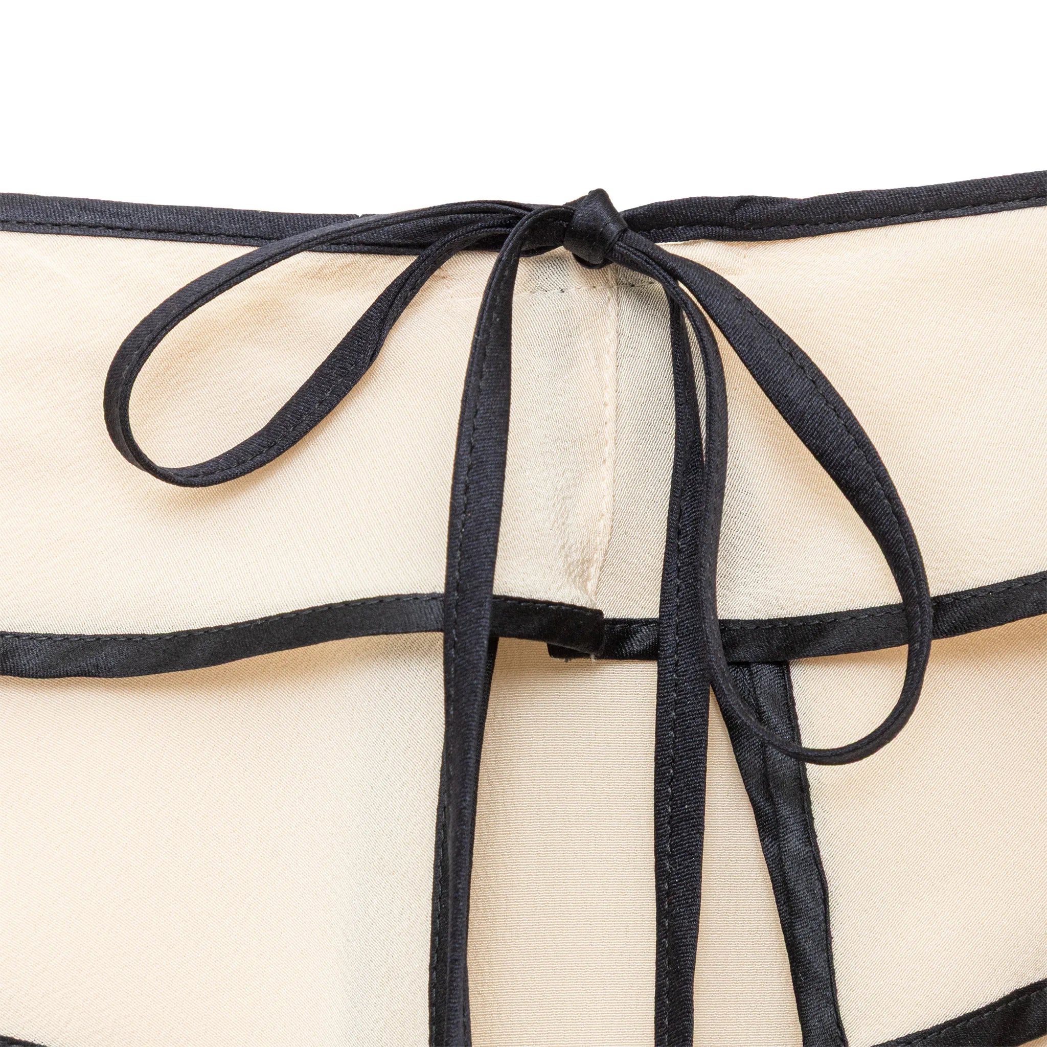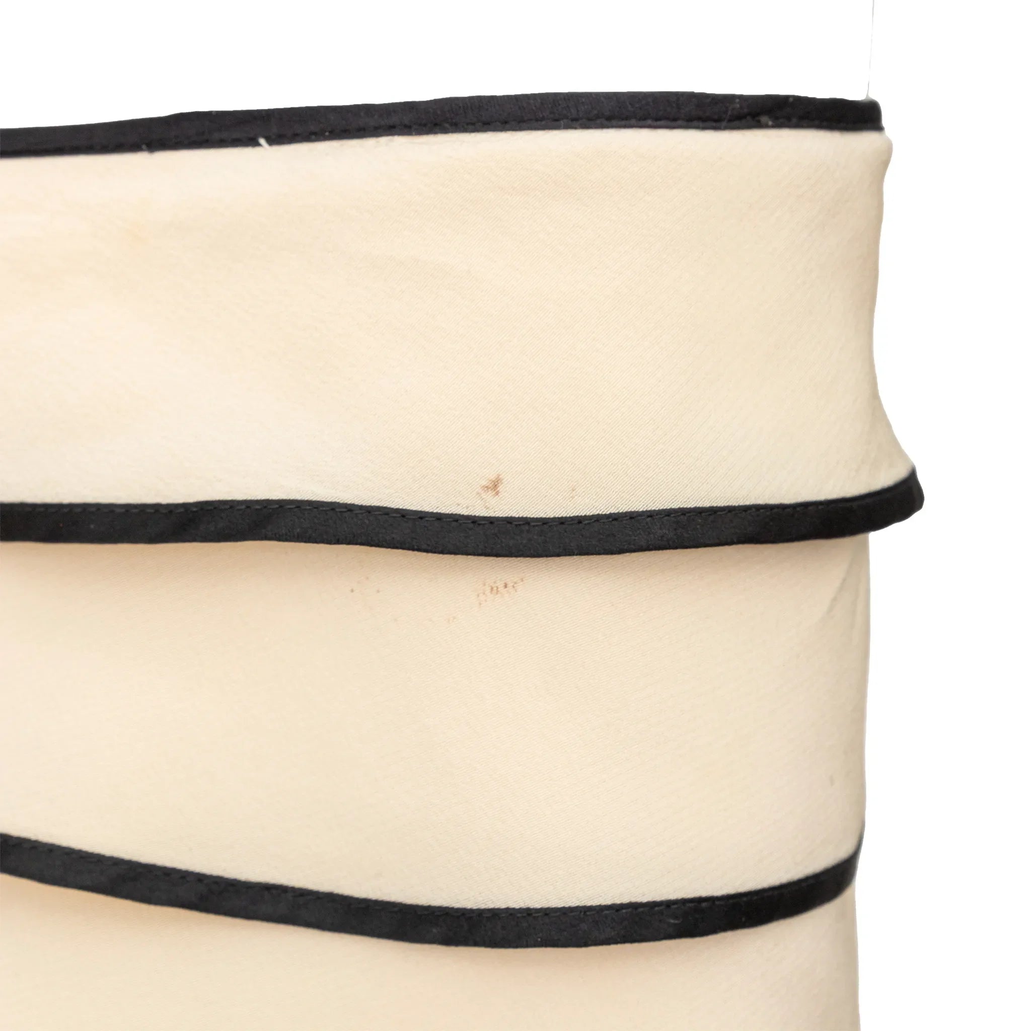 Versace Couture top in cream silk with elegant layered off-shoulder design, accented by black trimmings and a structured cuff with button.