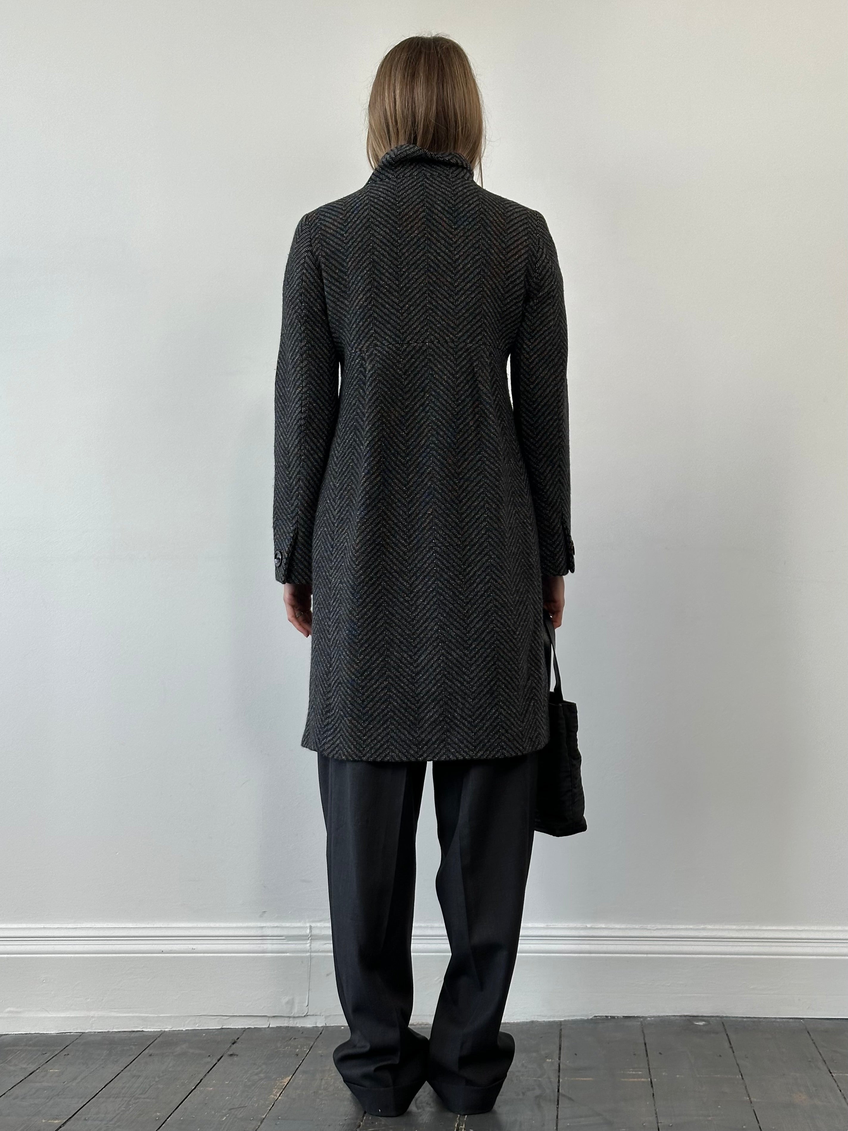 Max Mara Wool Cashmere Herringbone Single Breasted Coat - S/M