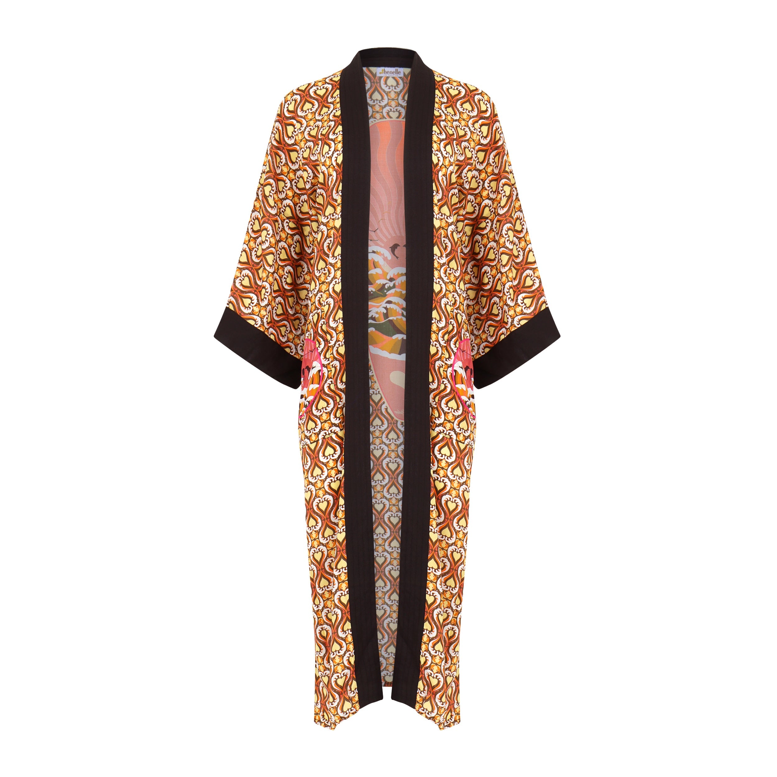 Inspired by Surfrider Beach, Malibu, this design features surf shaped repeat hearts, dolphins with a surf board on the back. So versatile, wear as a robe, swim cover or kimono style jacket.