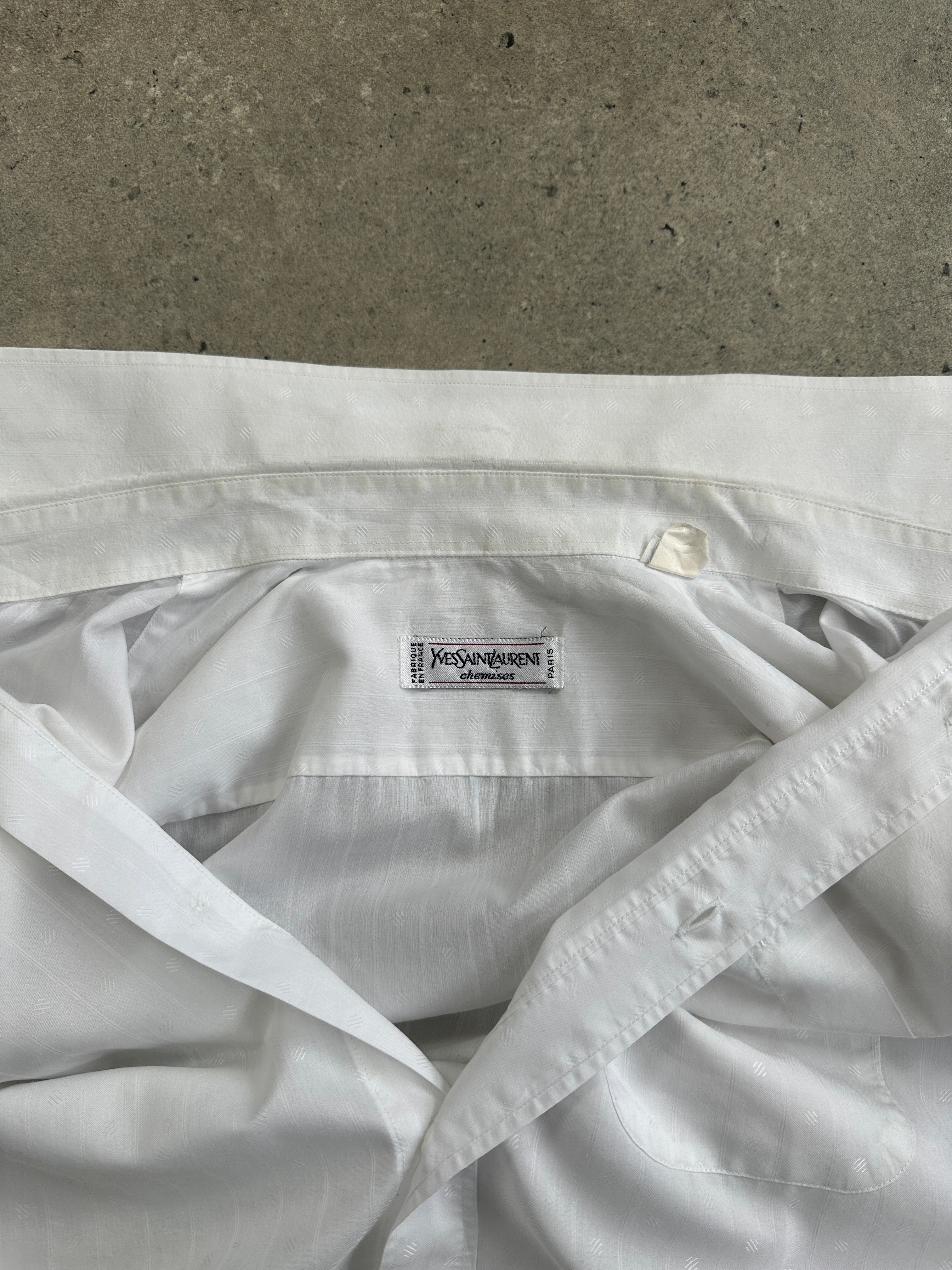 Yves Saint Laurent Chemises Paris menswear semi sheer jacquard shirt crafted in fine French cotton. Produced by YSL’s in-house Paris atelier team for the ready to wear label in 1980s - 1990s.