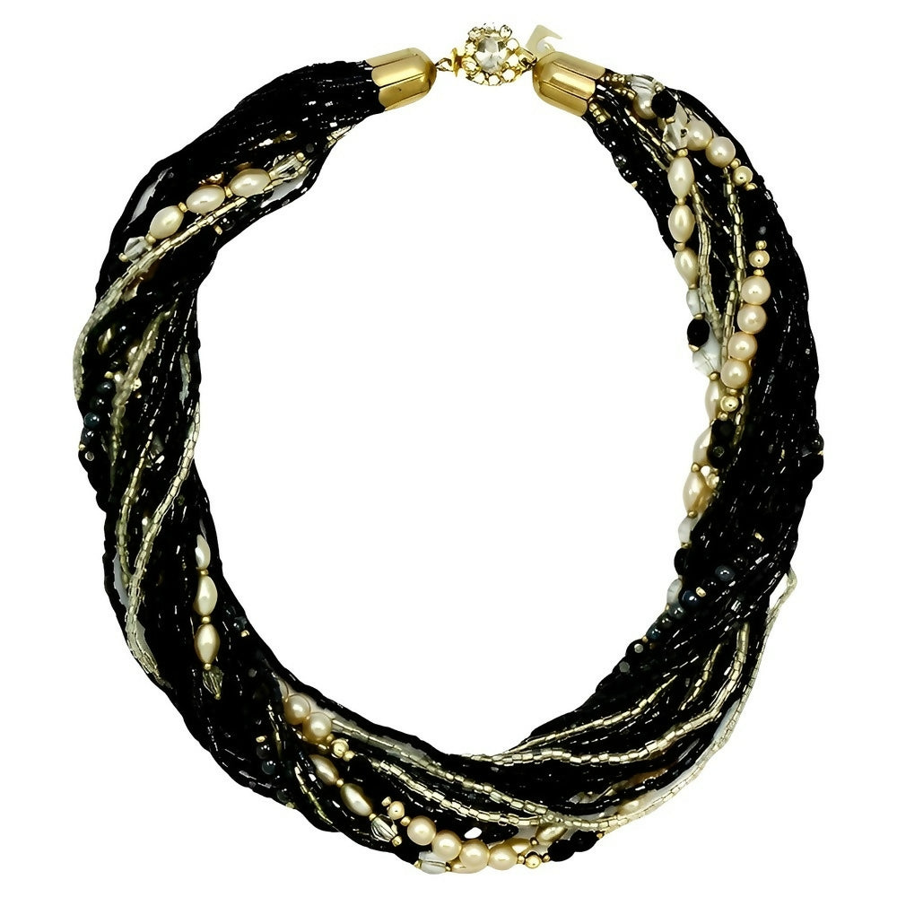 PIERRE CARDIN GLASS BEAD NECKLACE RHINESTONE CLASP