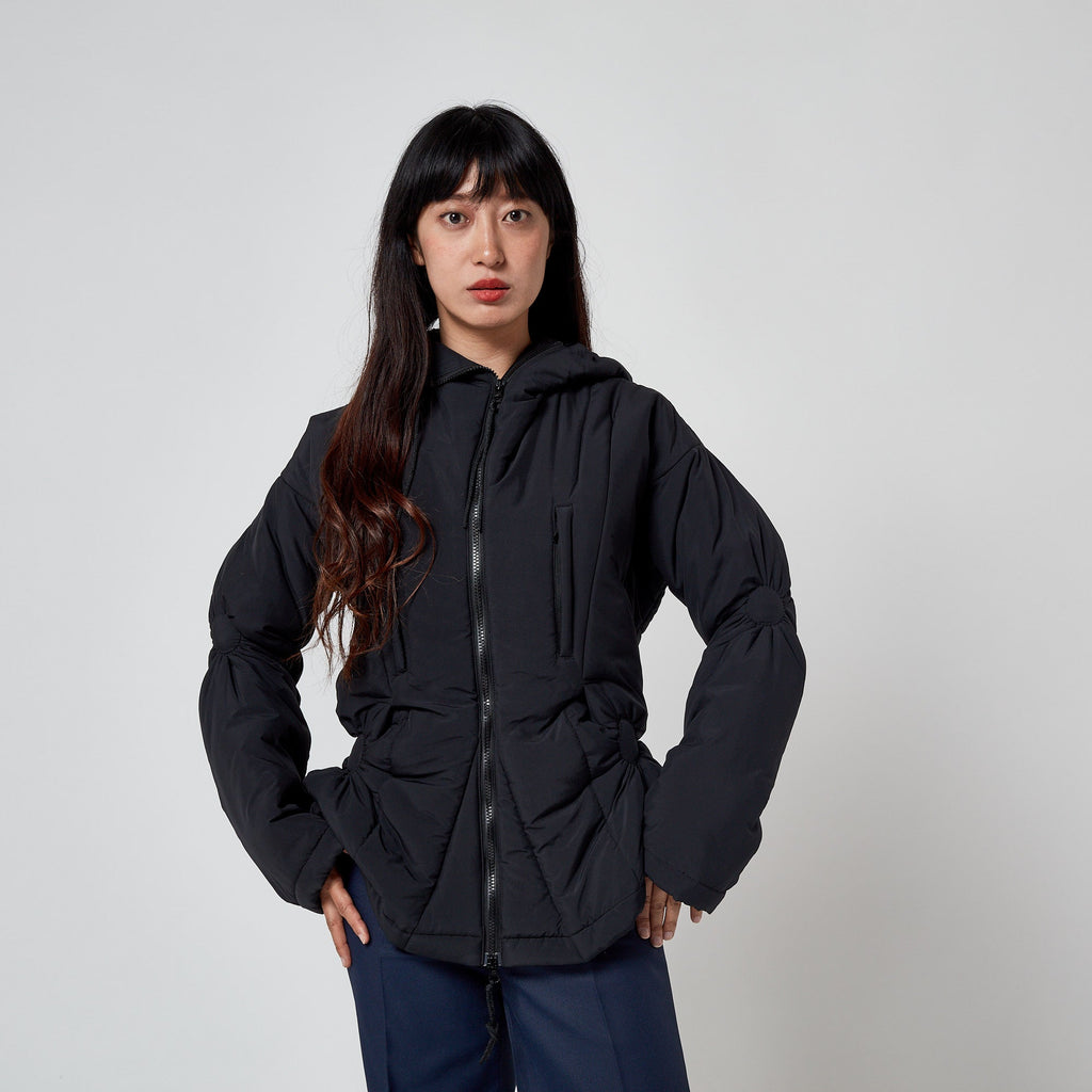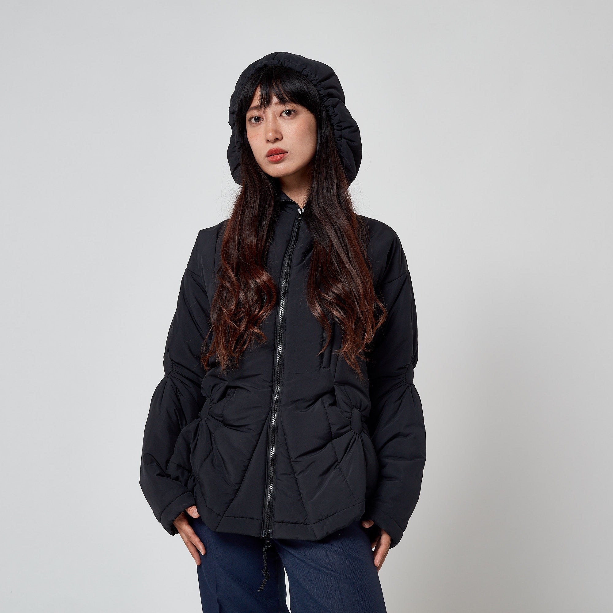 2003 Runway Issey Miyake Black Puffer Jacket with Ruched Design