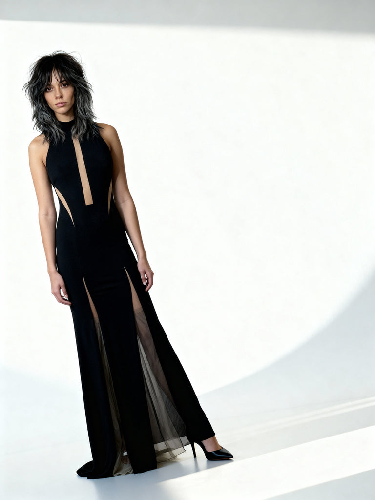 1970'S Vintage Black with Sheer Panelling Maxi Dress Uk 8 - 10