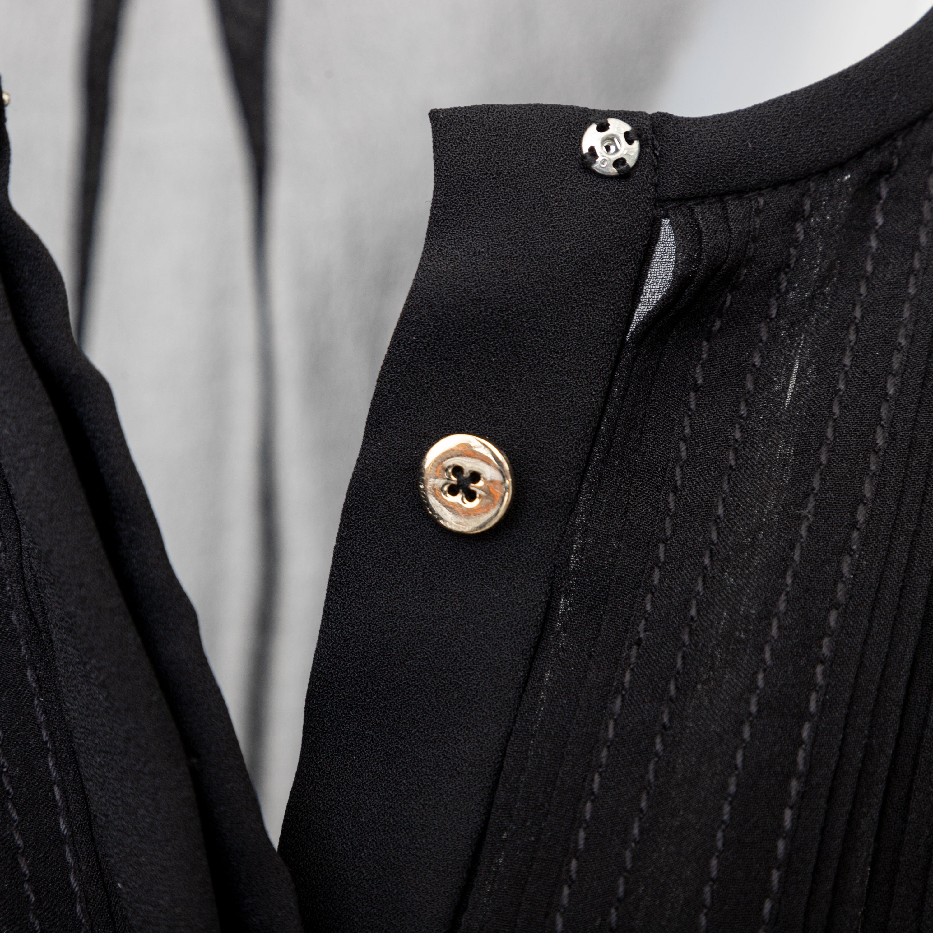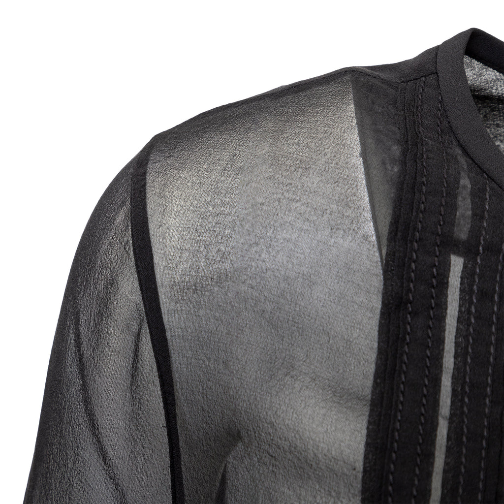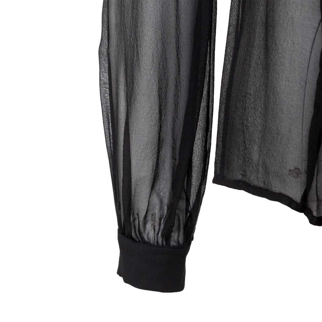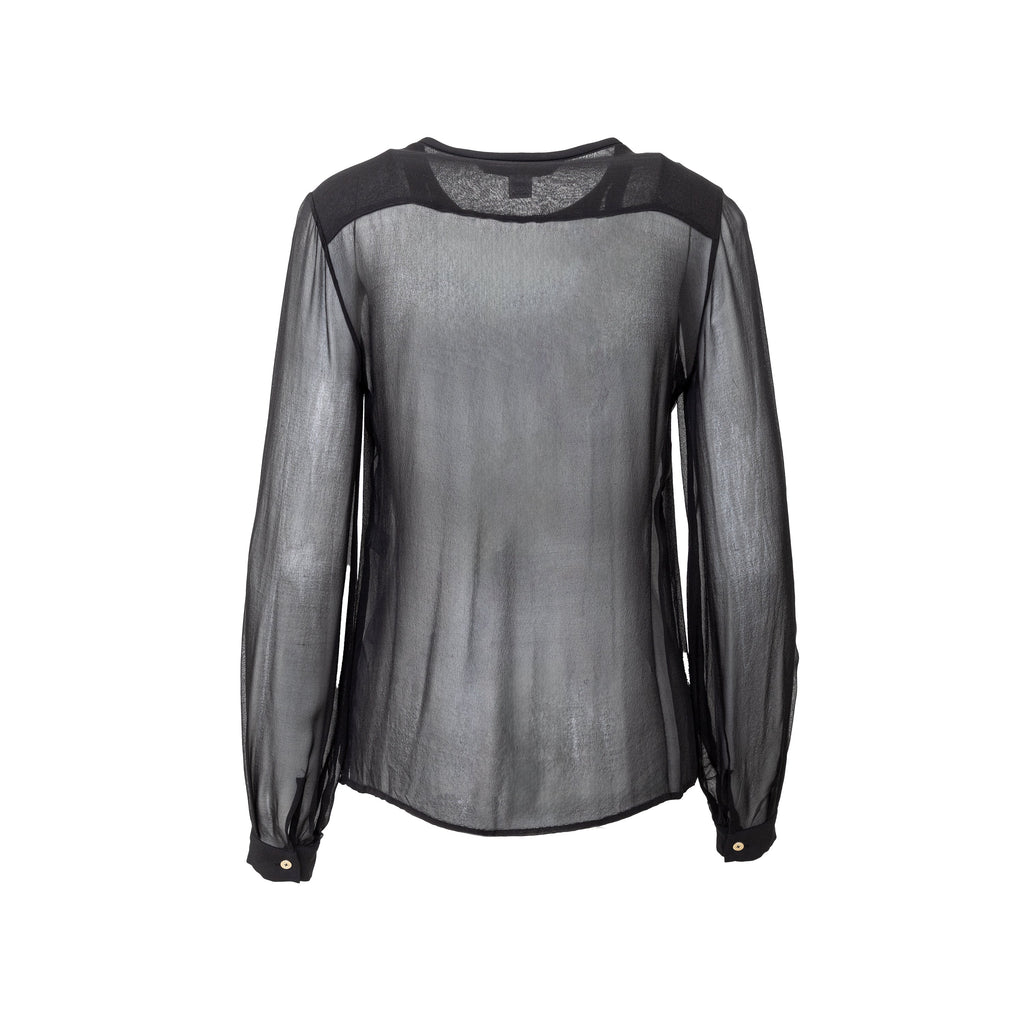 Elevate your wardrobe with the Diane von Furstemberg Pleated Blouse. Crafted from luxurious black silk, this blouse features a semi-transparent design, crew neck, and front button placket. The front pleats add a touch of sophistication.