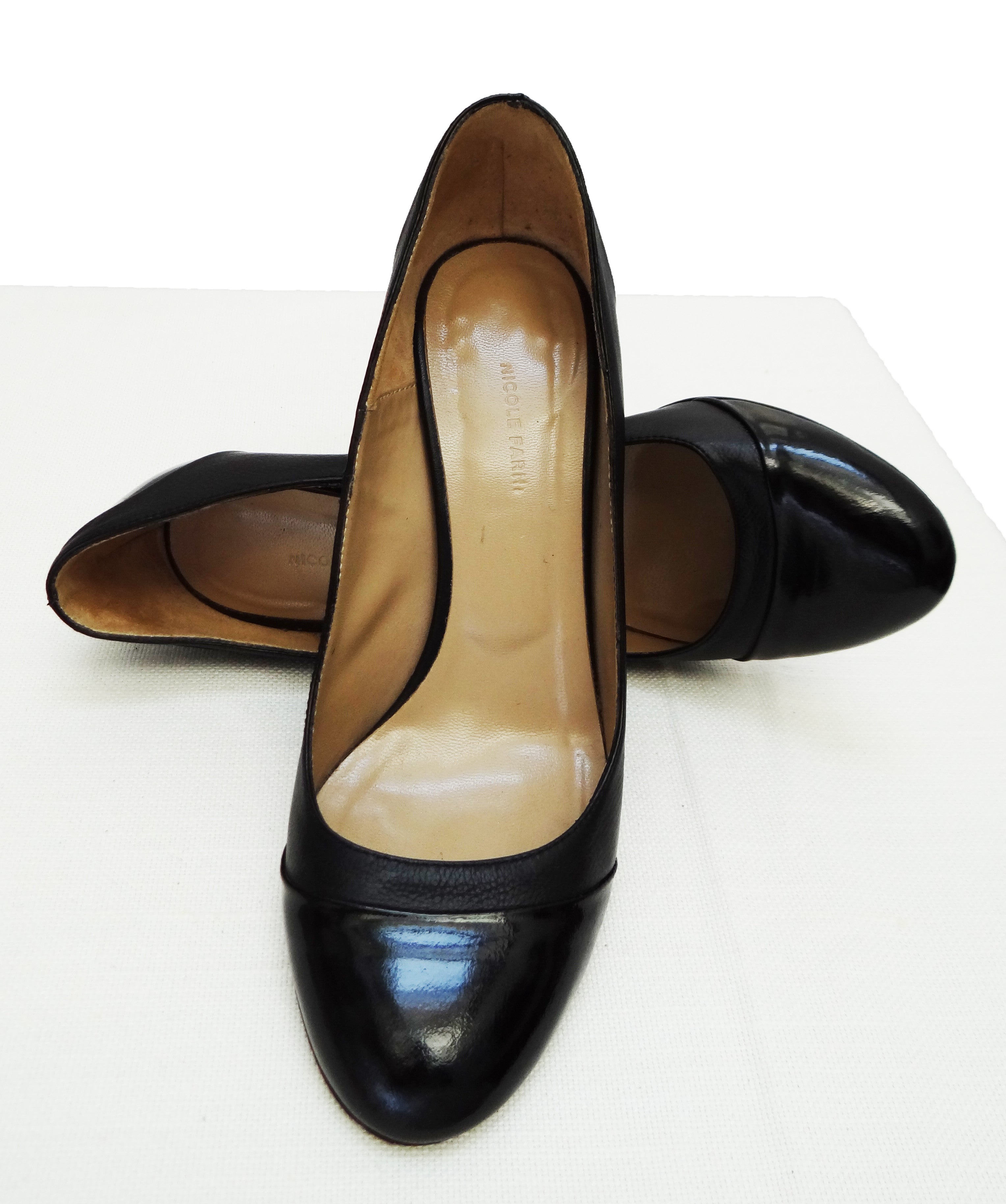 Nicole Farhi Black Leather and Patent Court Shoes, EU38
