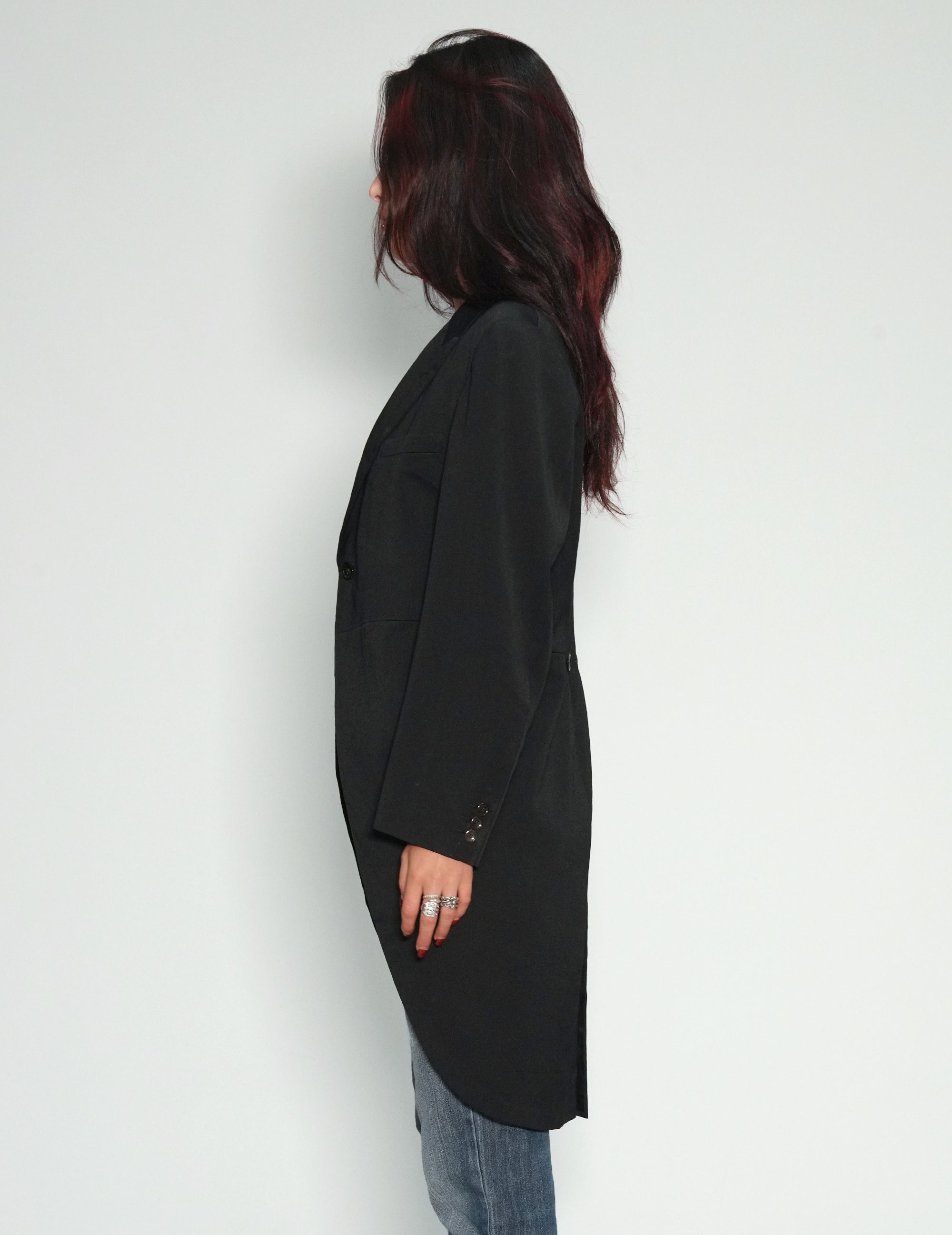 Vintage Edwardian tailcoat, customised with South Korean army patch. Circa 1920's. 100% Wool. Features inside breast pocket and 3-button fastening front.