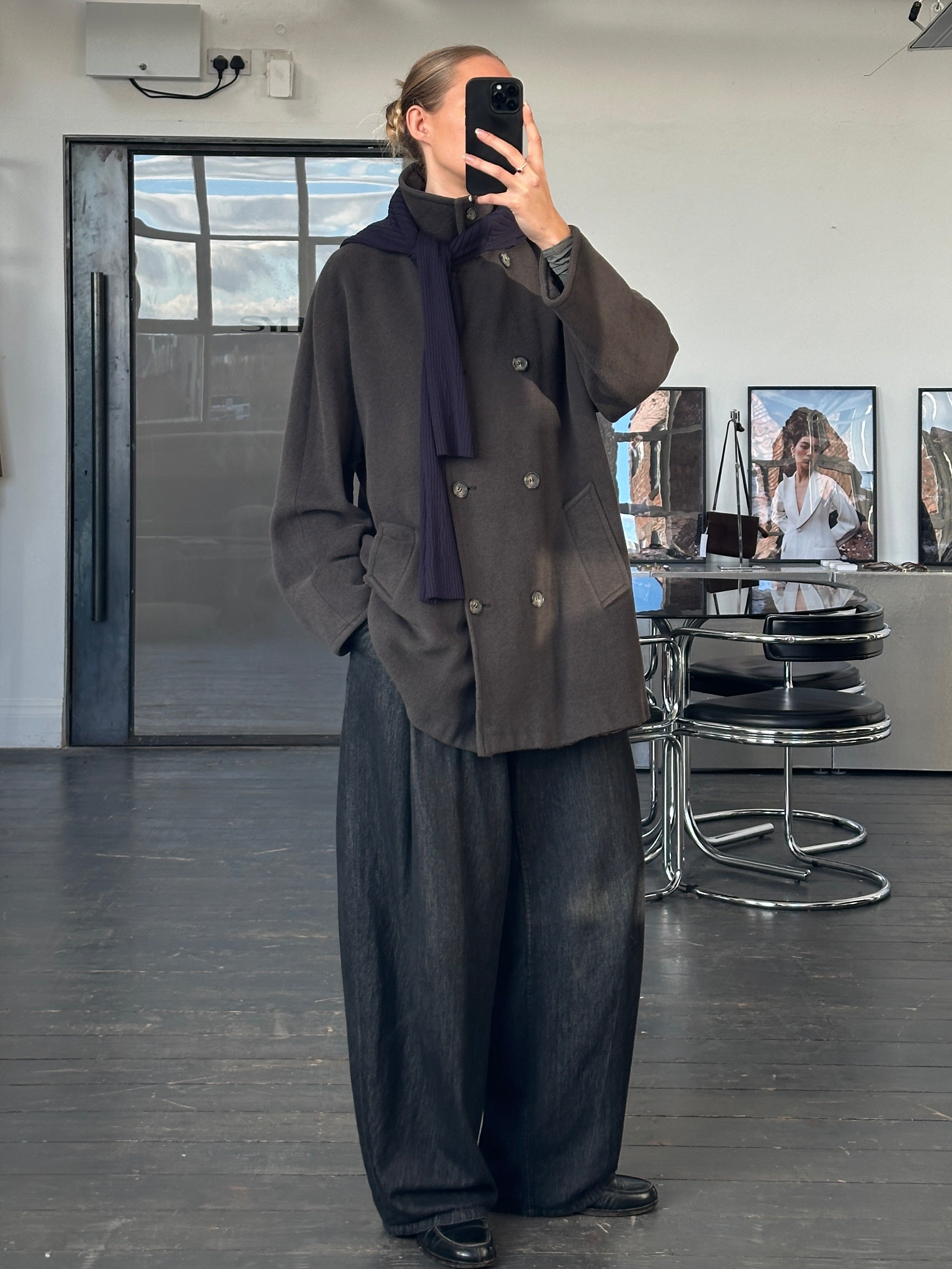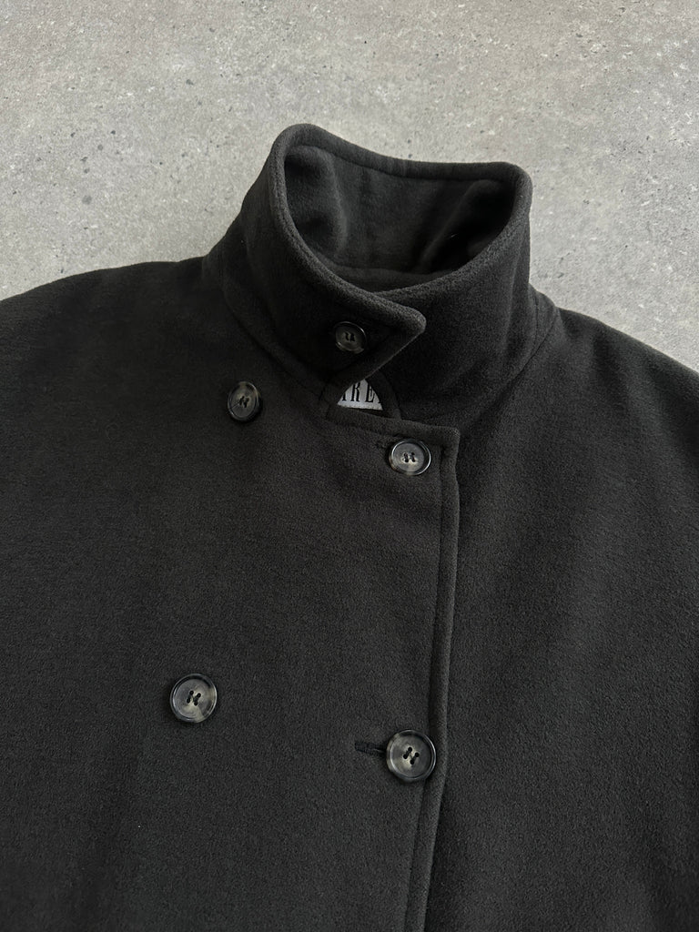~ Double-breasted front with high-neck fastening