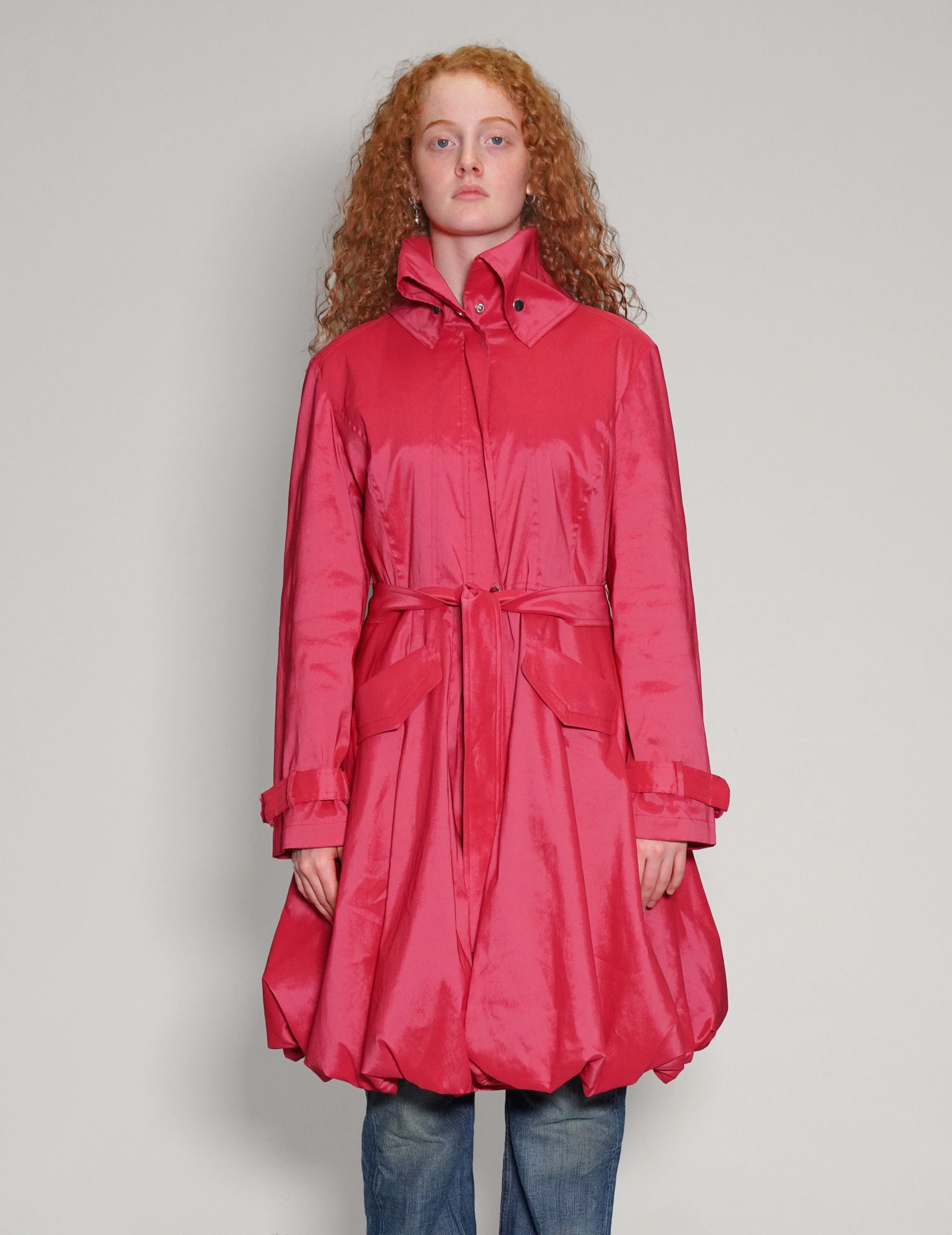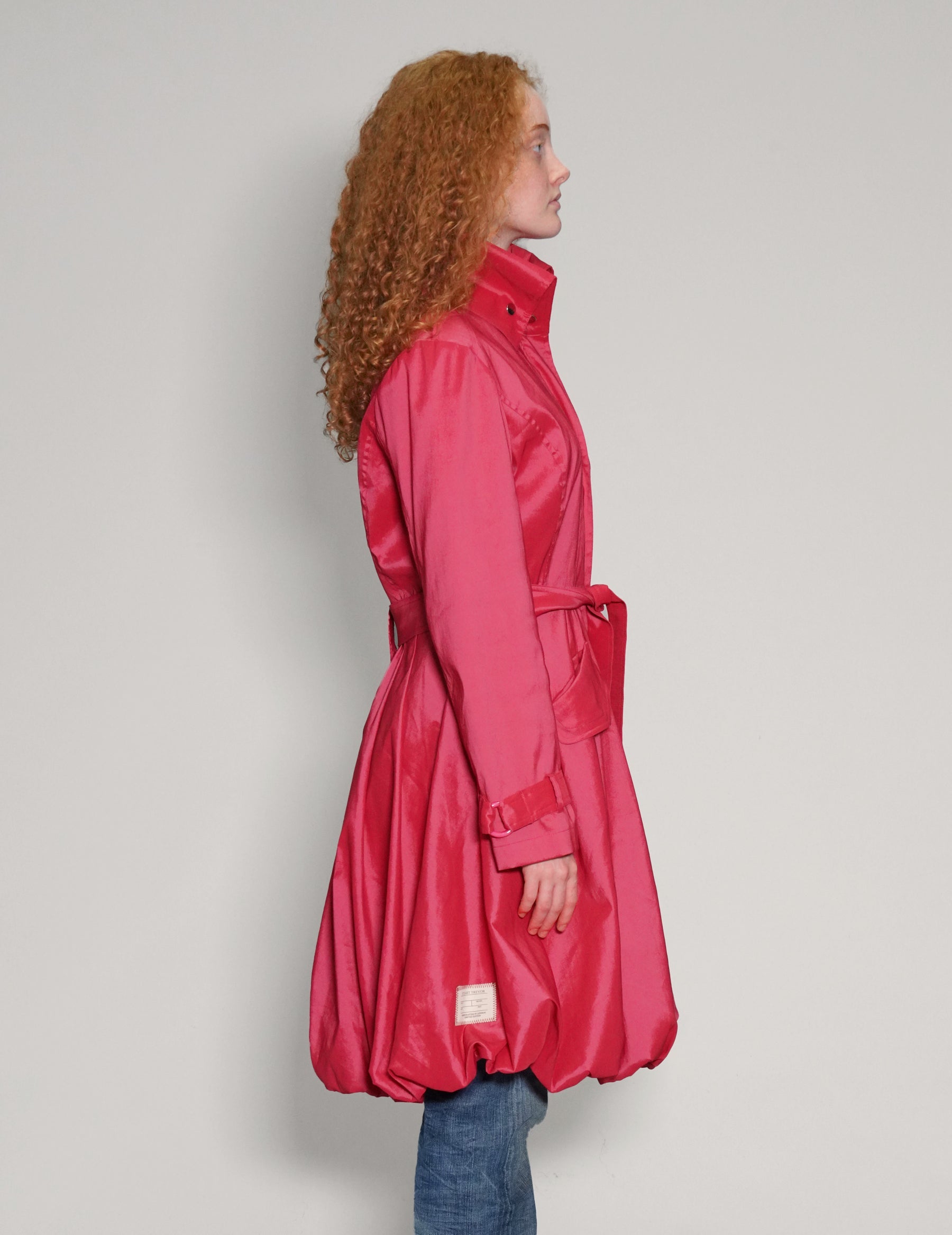 Samuel Dong overcoat, 48% Polyester 45% Nylon 7% Spandex. Incredible construction, with high popper fastened collar, adjustable waist belt and cuffs, large flap pockets and popper fastening front. Perfect for adding a pop of colour to Autumn outfits.