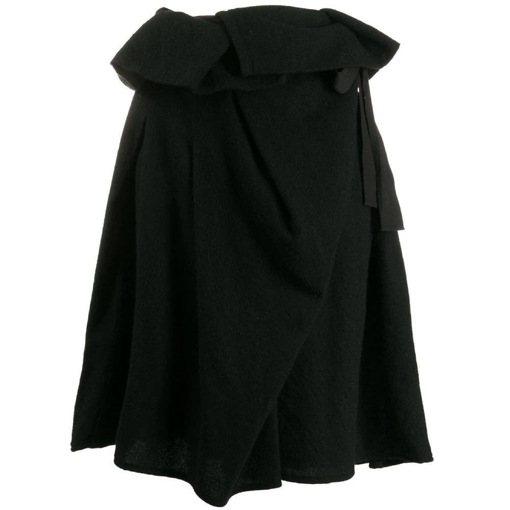 Comme des Garçons black wool blend skirt. Drawstring waist and full-length darts.