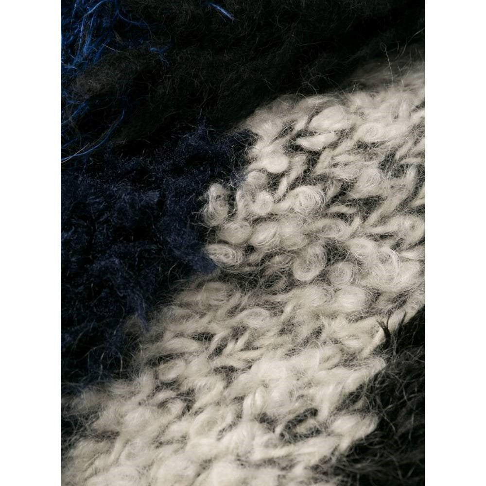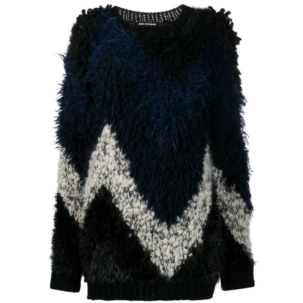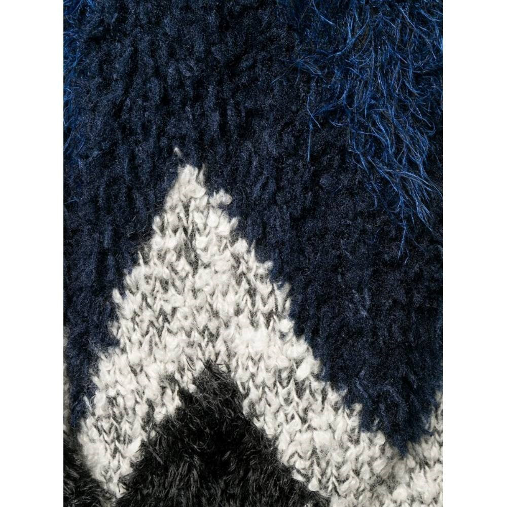 Junya Watanabe Comme des Garçons blue, black and white wool blend 2000s oversize sweater. Fur effect and round collar. This item belongs to a deadstock, it has never been worn and comes with its original tag.