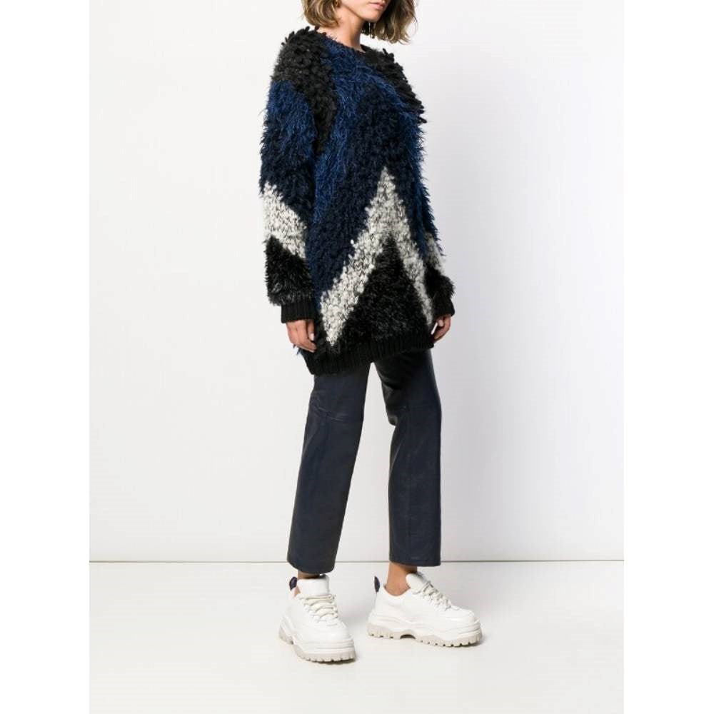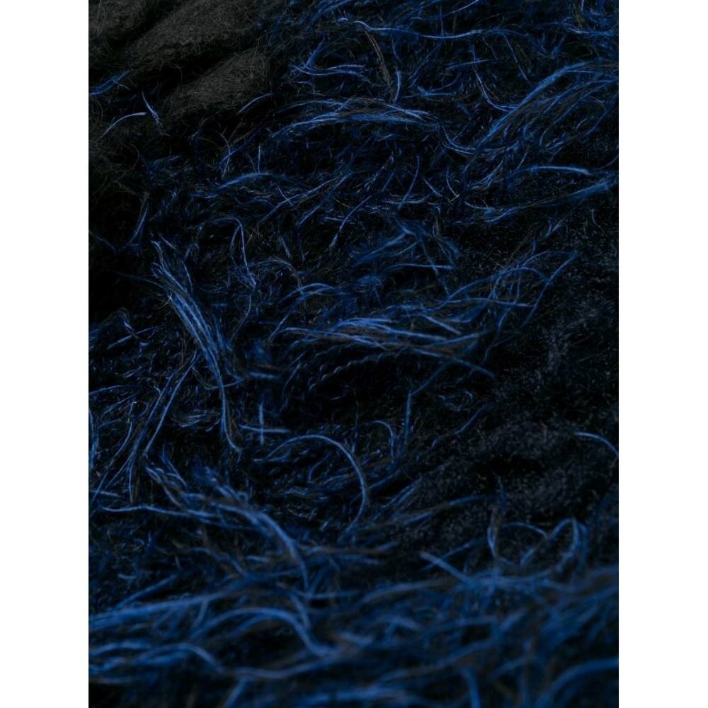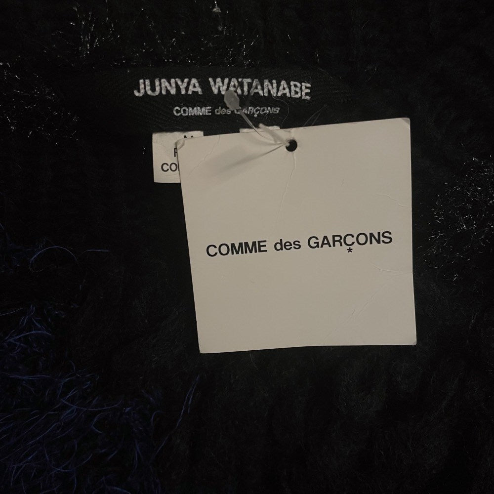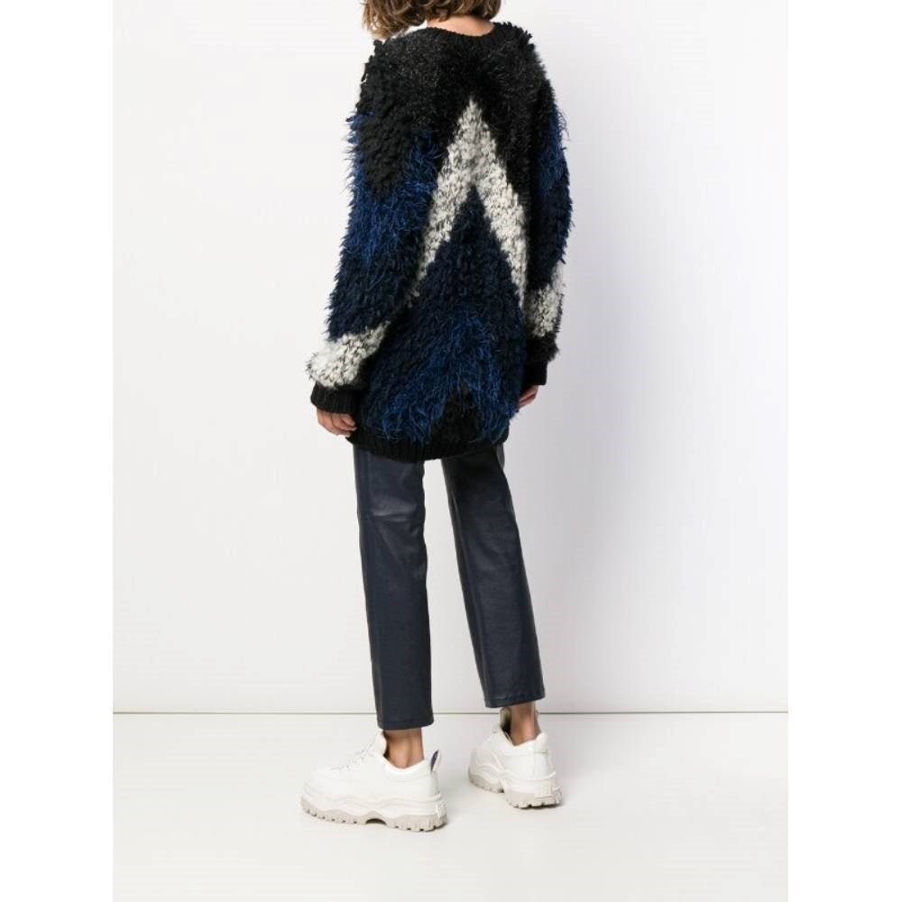 Junya Watanabe Comme des Garçons blue, black and white wool blend 2000s oversize sweater. Fur effect and round collar. This item belongs to a deadstock, it has never been worn and comes with its original tag.
