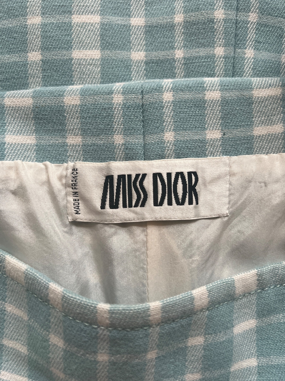 1970s Miss Dior Blue and White Gingham Check Dress