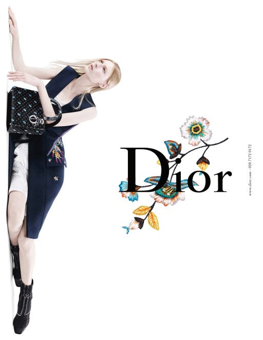 Made in Italy, this beautiful elongated waistcoat was designed by Raf Simons as part of Christian Dior’s Spring 2015 collection (a similar piece was seen in look 25/50 and look 34/50). The runway version also featured in one of the campaign shots for the season. The Vogue review highlighted Simons’ ability to tie the past with the present, particularly noting the gilet silhouettes on the runway and stating that they “referenced an 18th-century court cout, which evoked the historicism of Christian Dior’s original Bar silhouette”. Tailored from navy wool, it has a sleeveless cut with an elegant waterfall front that hangs open at the collar. It has a single closure which ties with a thick black grosgrain ribbon. It has an A-line silhouette which results in a playful flippy hemline that ripples around the body. The stand-out detailing of this piece is the fuchsia embroidery that climbs the right side of the chest and up over the collar; exquisitely detailed, it features a variety of blooms, vines and pretty repeating patterns which recall the embroidery of ancient Asian textiles and chintzy patterns formed across antique porcelain.