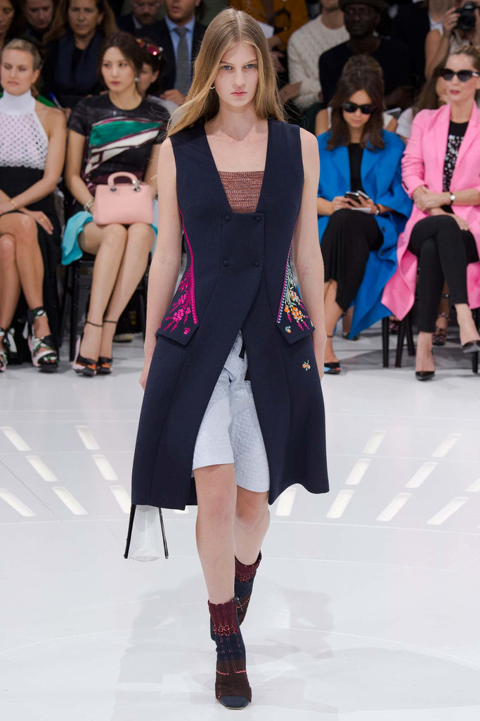 2015 Christian Dior Navy Swing Waistcoat with Fuchsia Embroidery