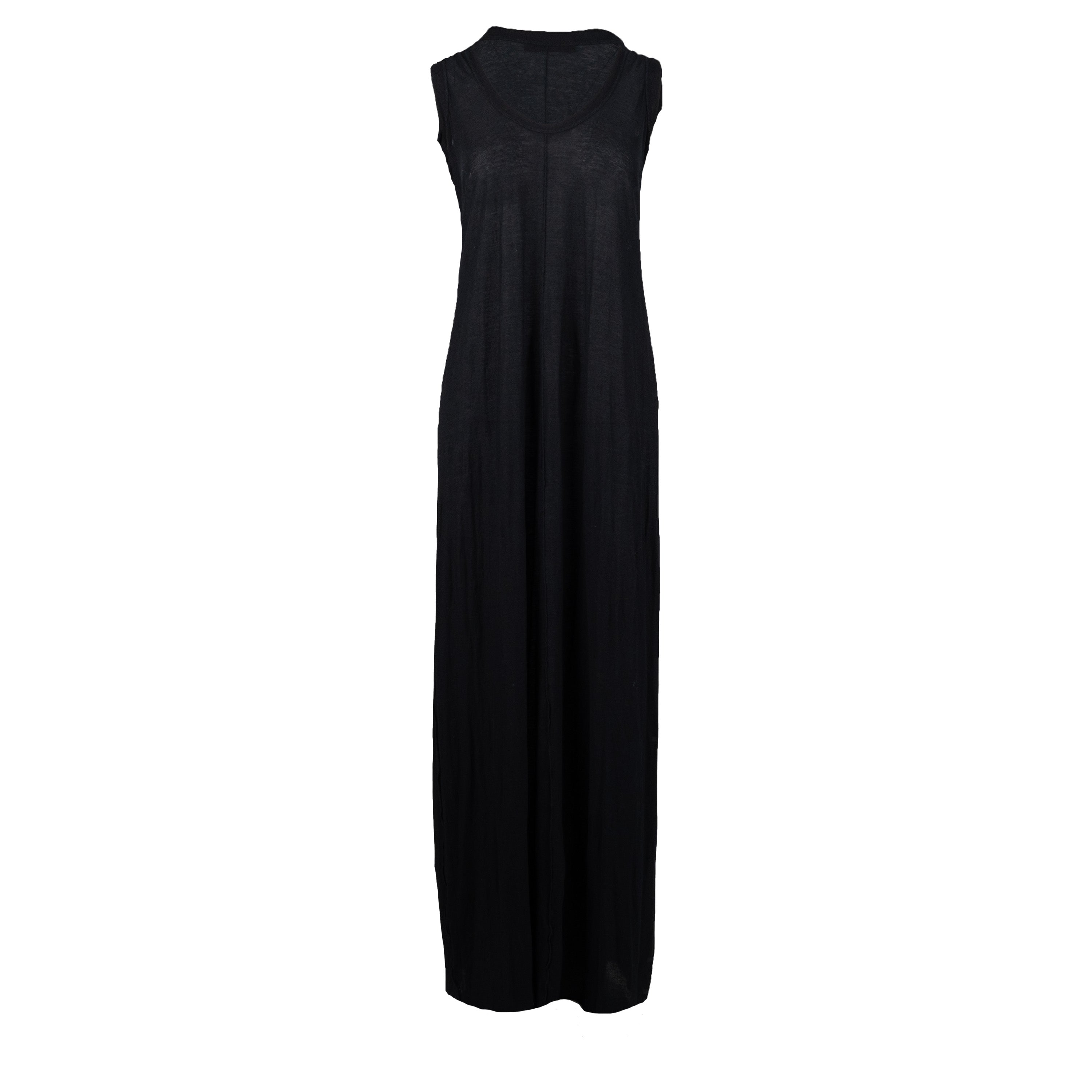 Crafted from comfortable cotton knit, this sleeveless dress in black features a classic scoop neckline and a graceful long silhouette. Look chic and stylish, while experiencing utmost comfort.