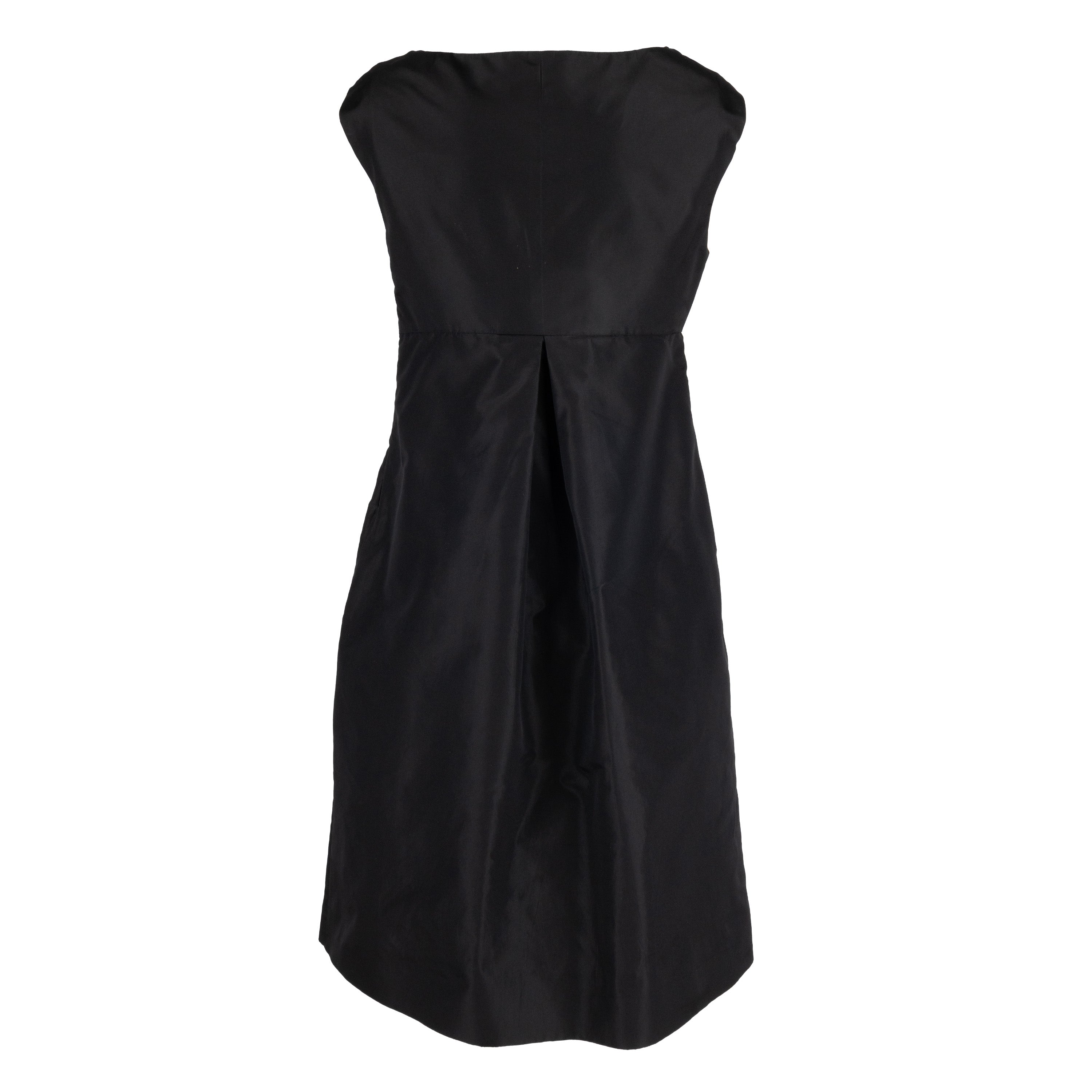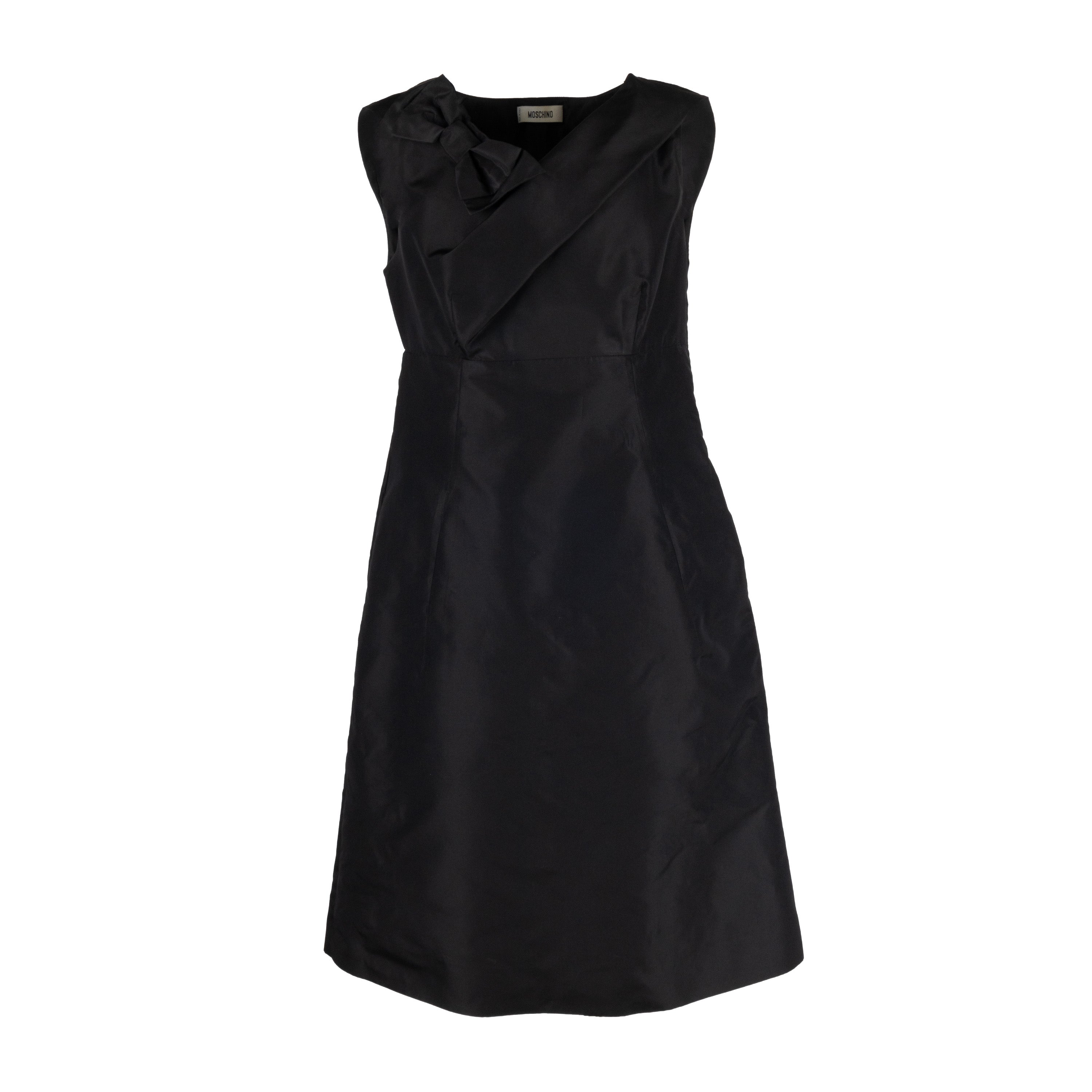 Expertly crafted from a silk and polyester blend, the Moschino dress is the quintessential little black dress. With a delicate bow accent on the neckline, this sleeveless and short dress is ideal for any special occasion or evening event.