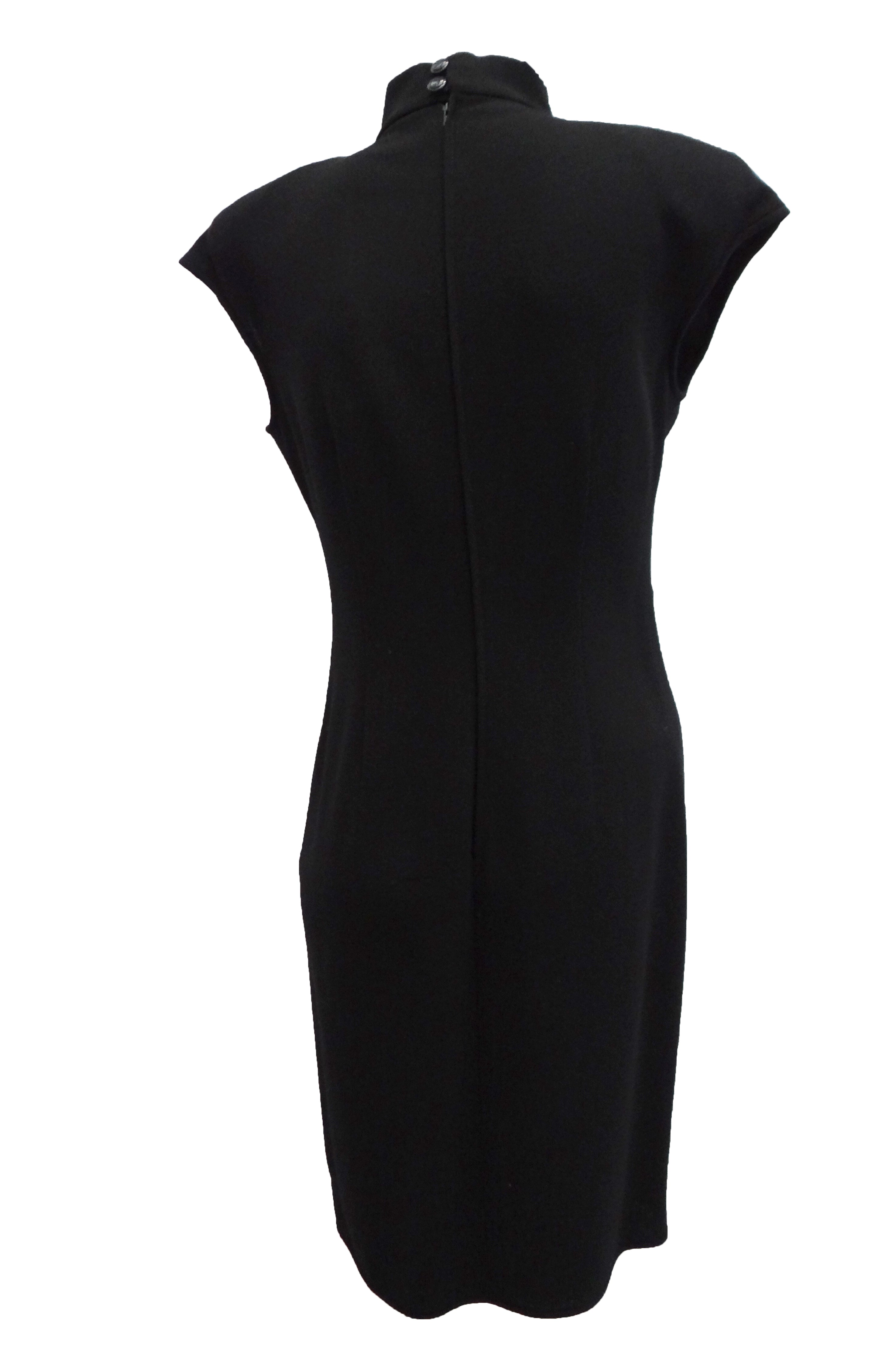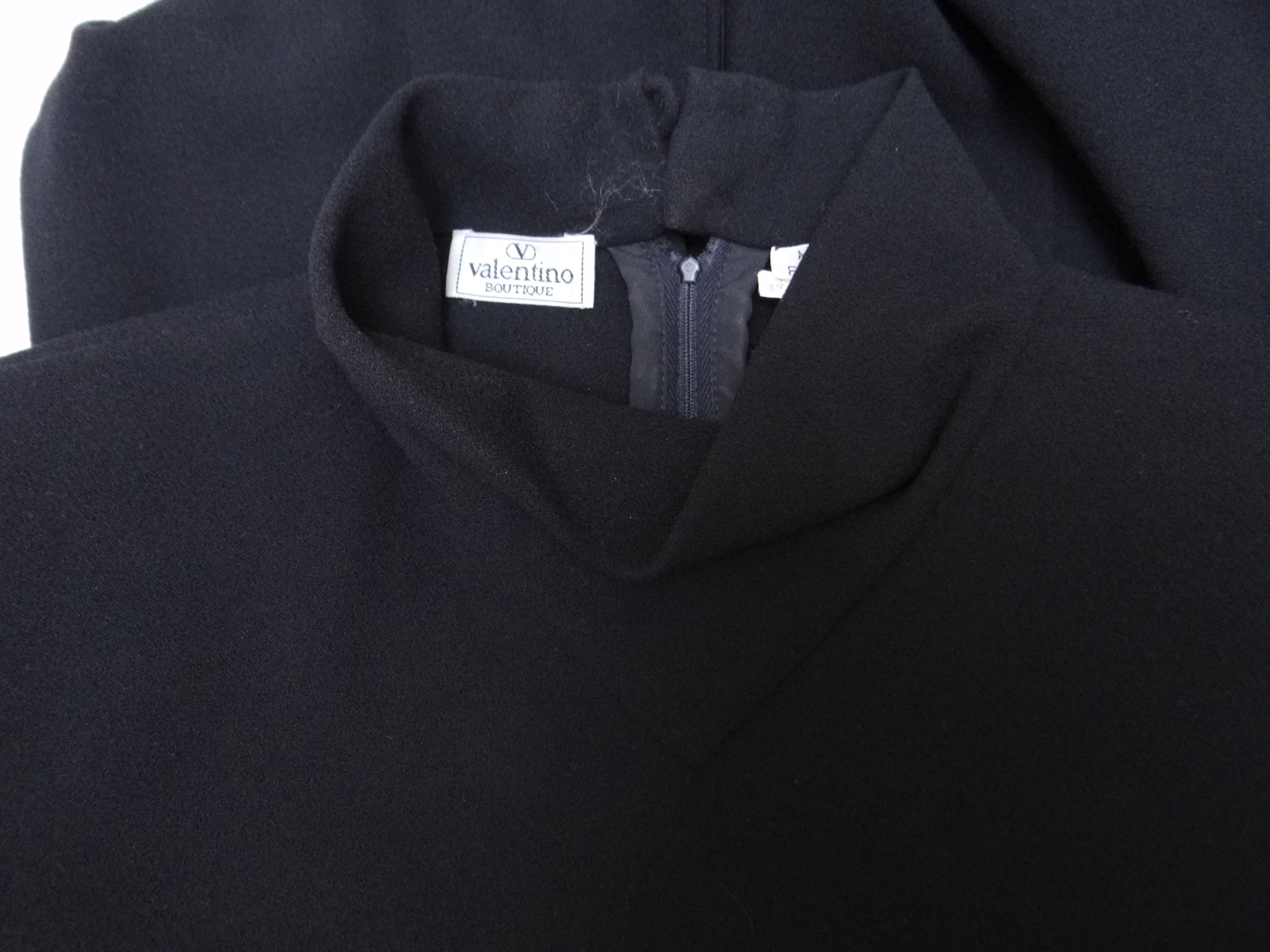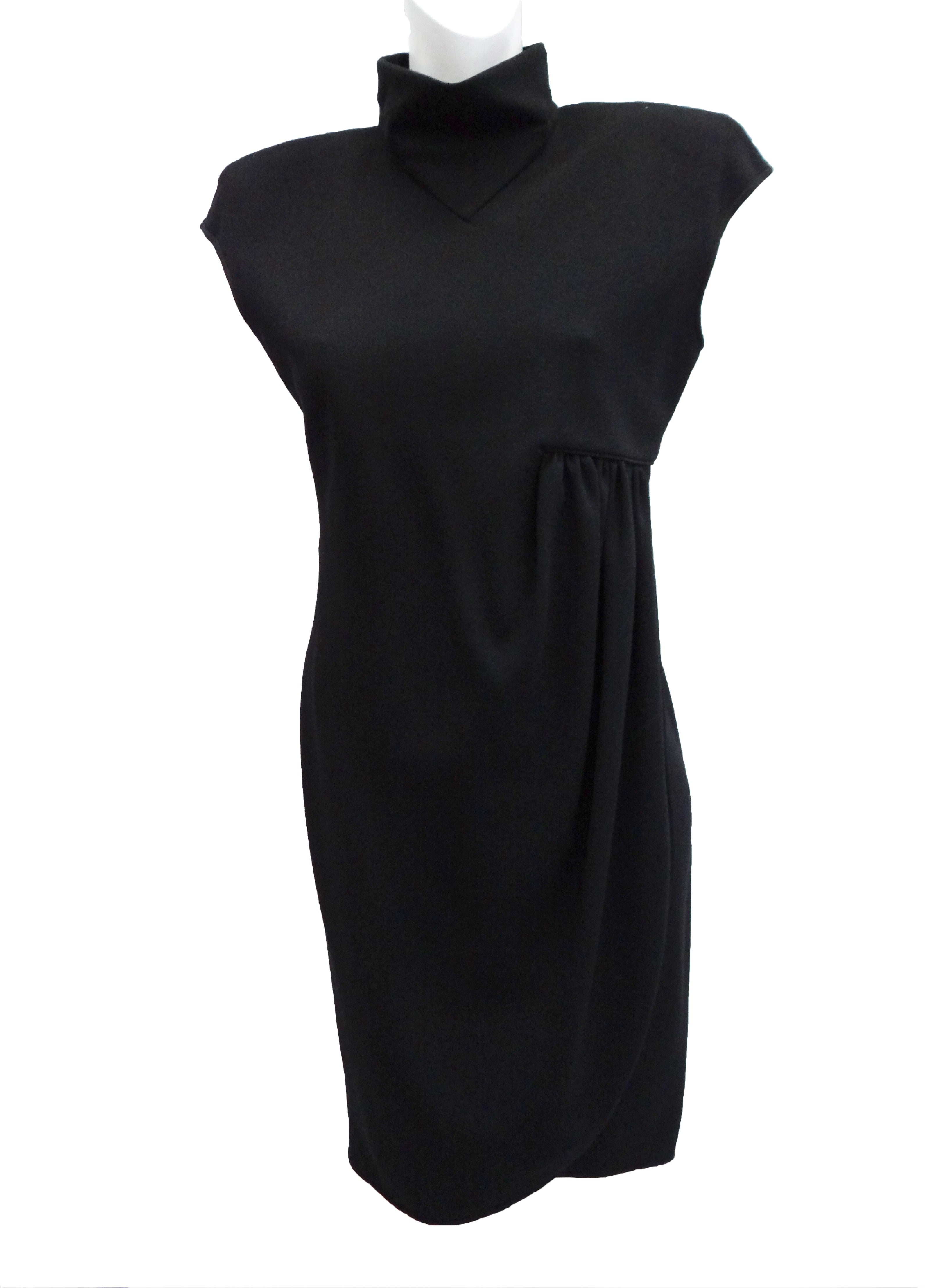 An elegant and useful knee length wrap dress in black wool crepe by Valentino.