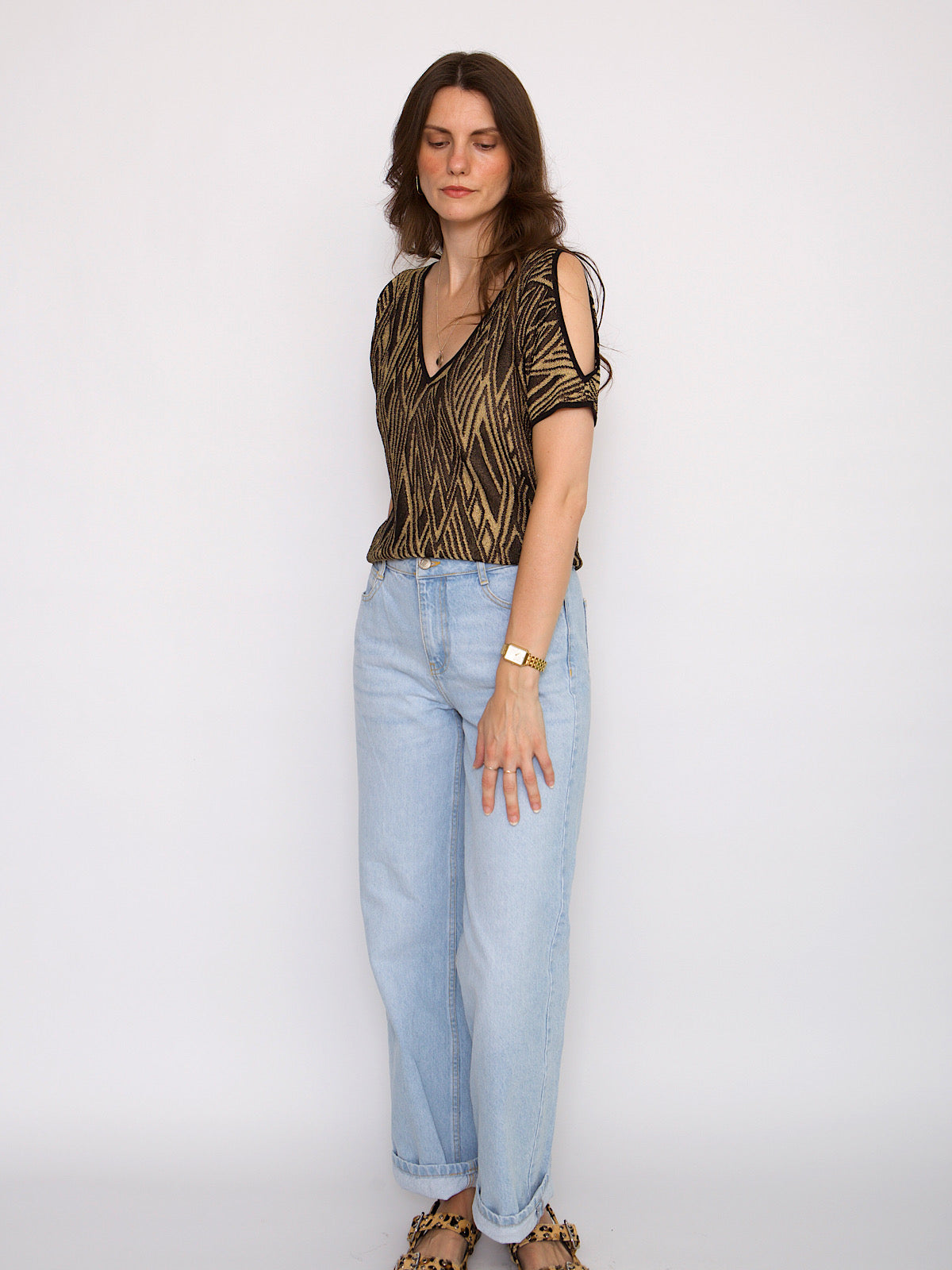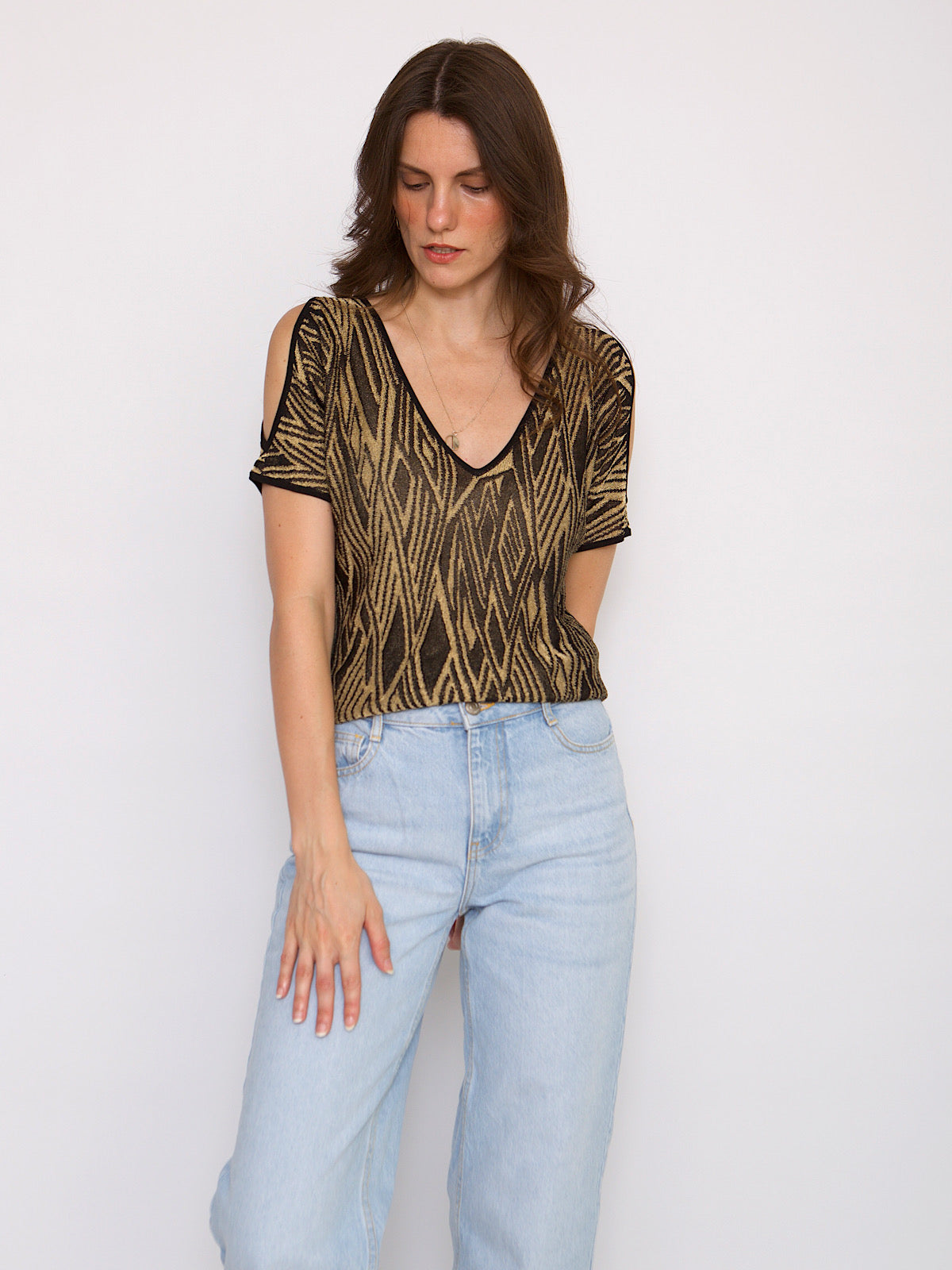 Beautiful evening top with flatering opened shoulders.
