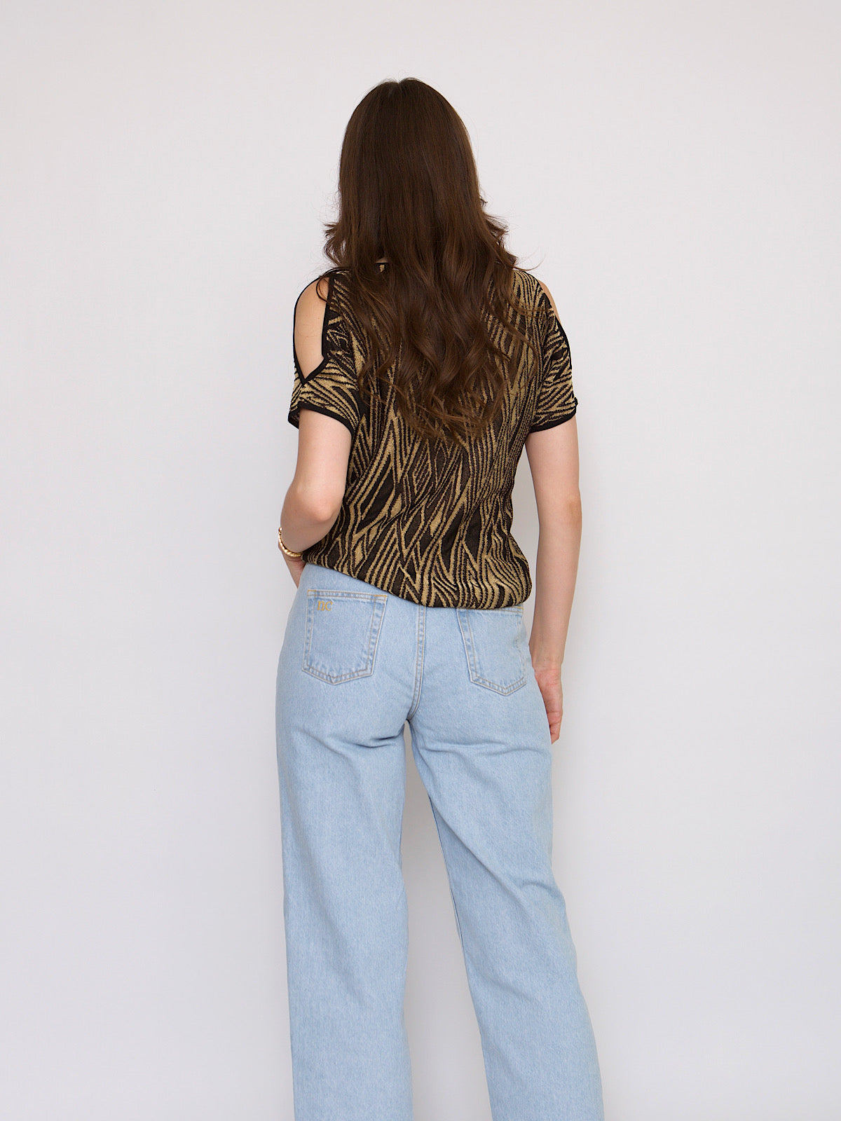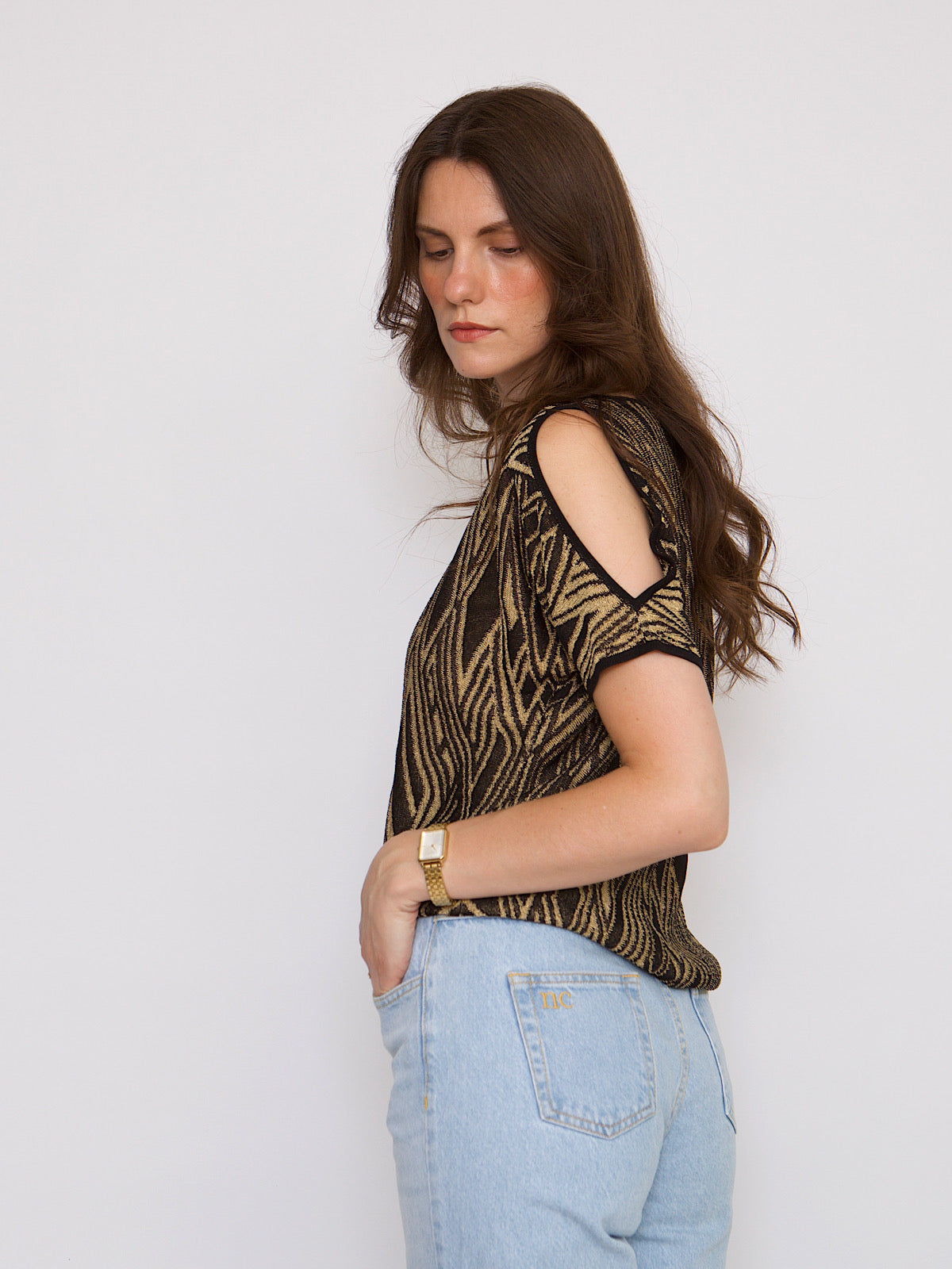 Black & gold evening top opened shoulder by Ralph Lauren