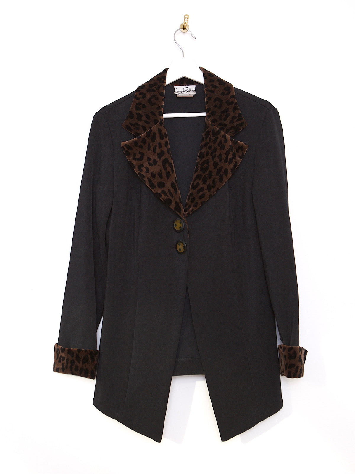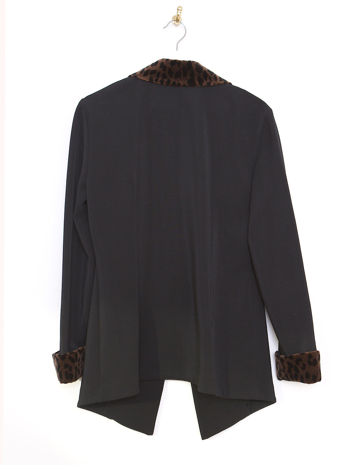 Y2K BLACK FITTED JACKET WITH FAUX LEOPARD TRIM