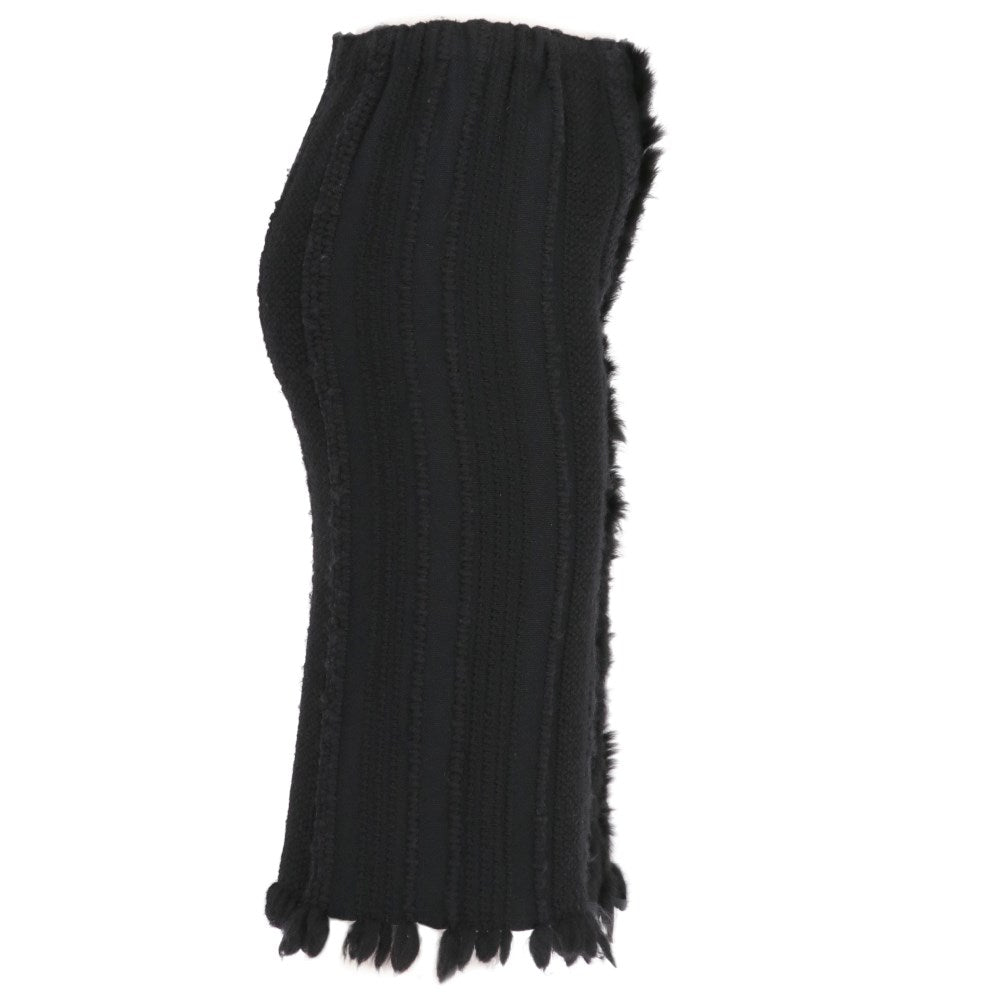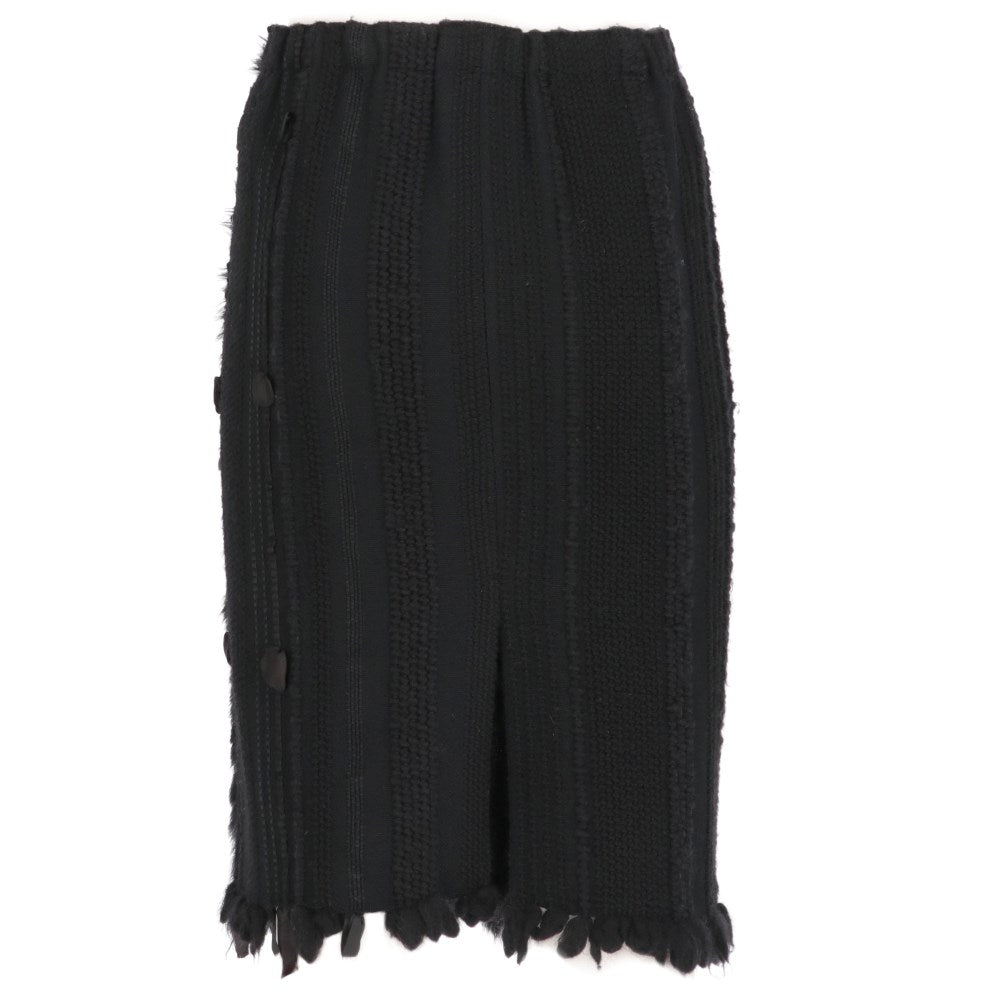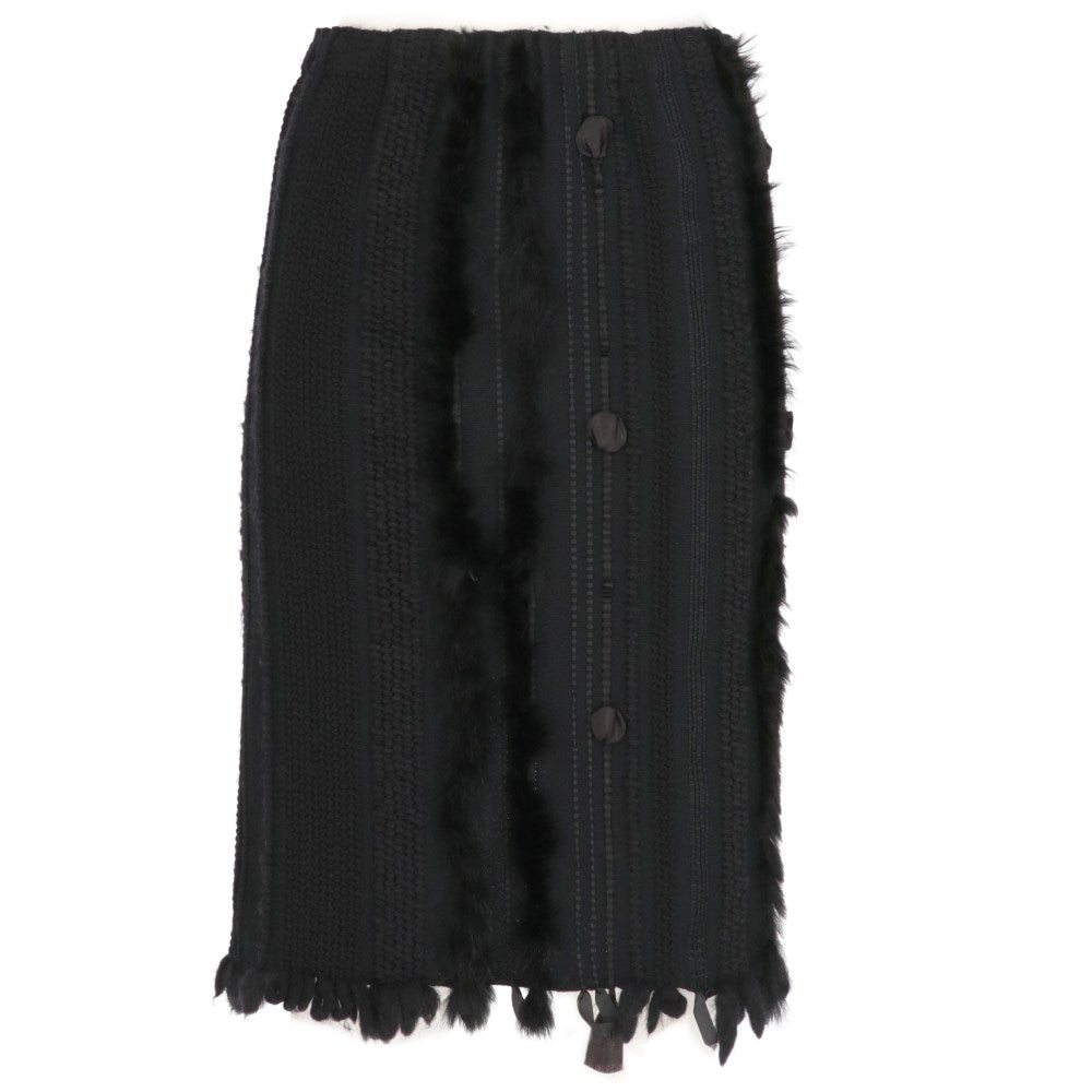 Gucci 2000s wool blend skirt. High-waist model with elastic waist, knee length. Relief knitting and black fur details.