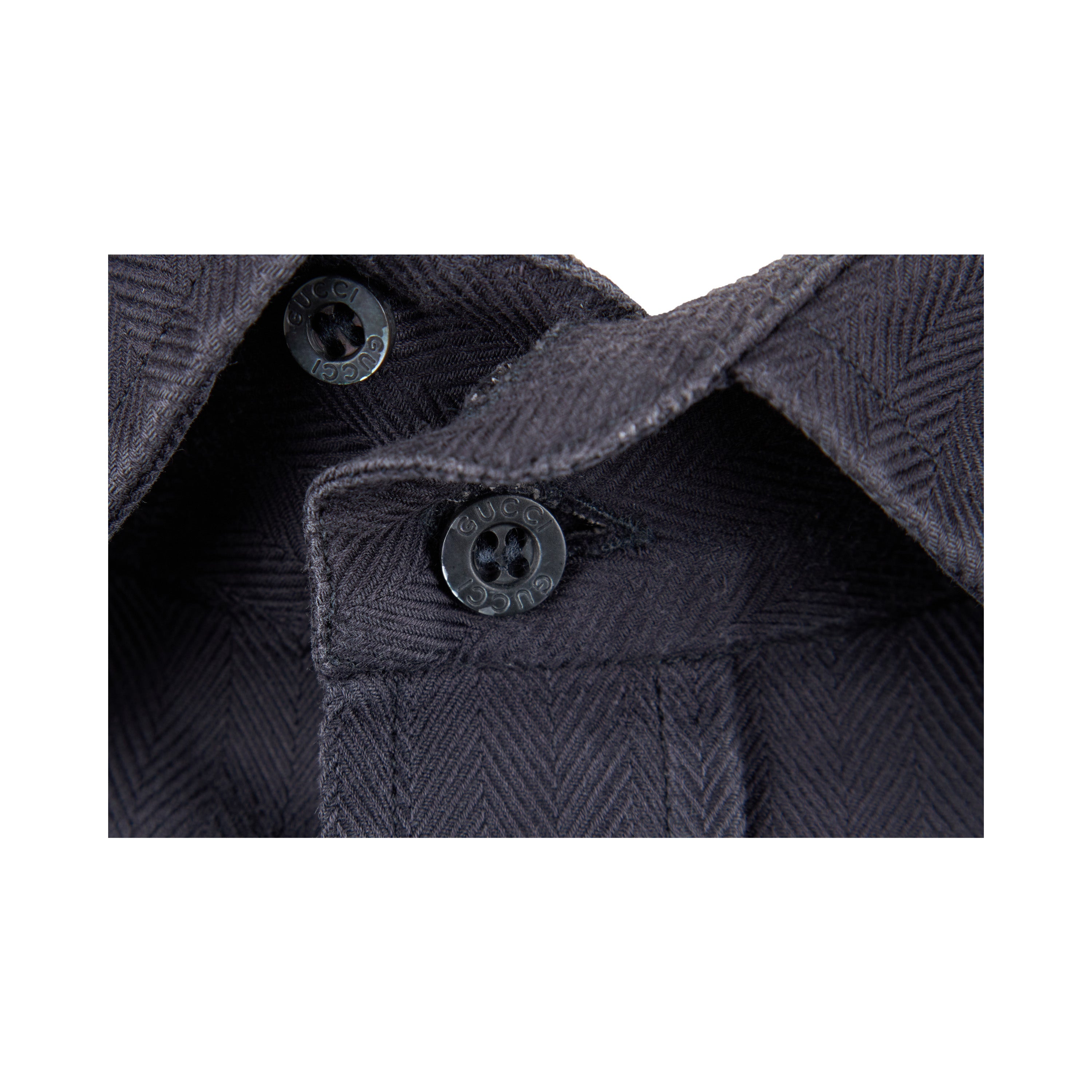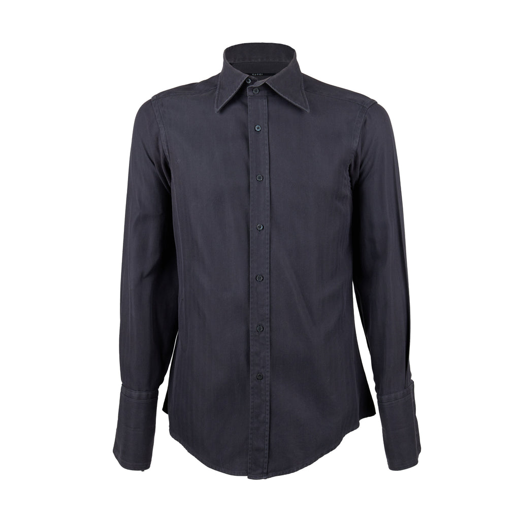 This Gucci Cotton Shirt is the perfect combination of fashion and function, crafted from 100% cotton with a classic shirt collar and opened cuffs, perfect for wearing with cufflinks. The herringbone pattern and faded black hue make it a wardrobe essential.