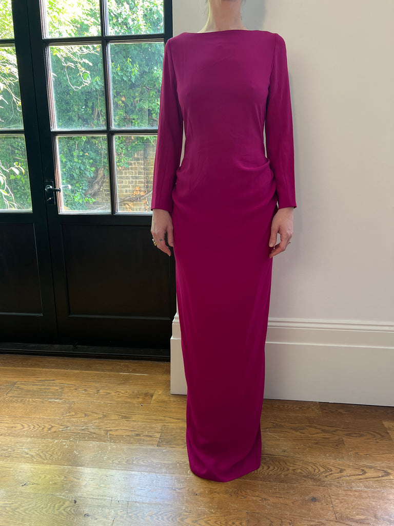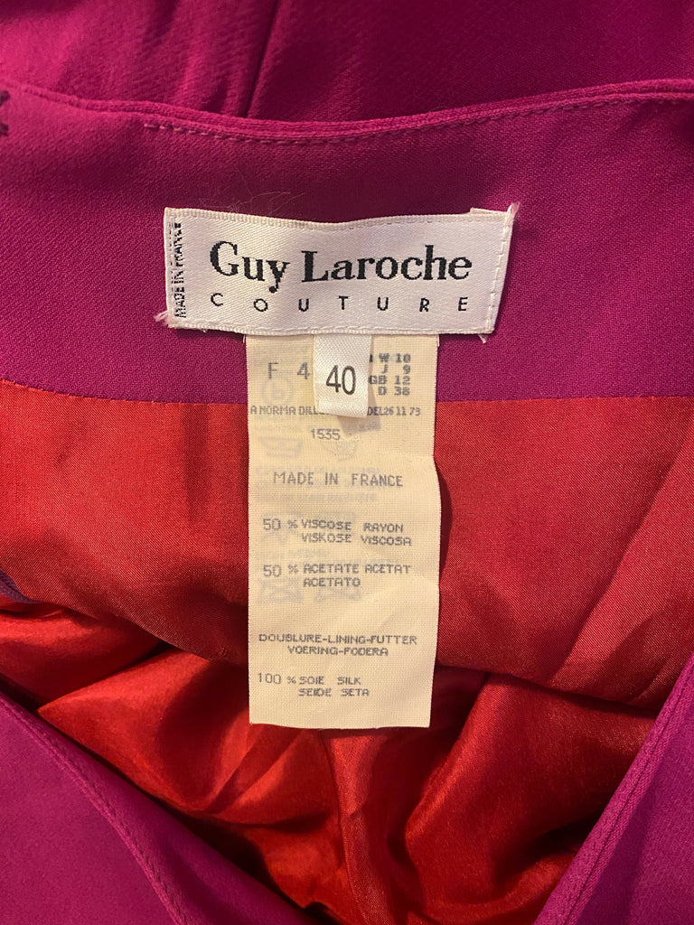 1990s Guy Laroche Couture Pink Silk Crepe Dress