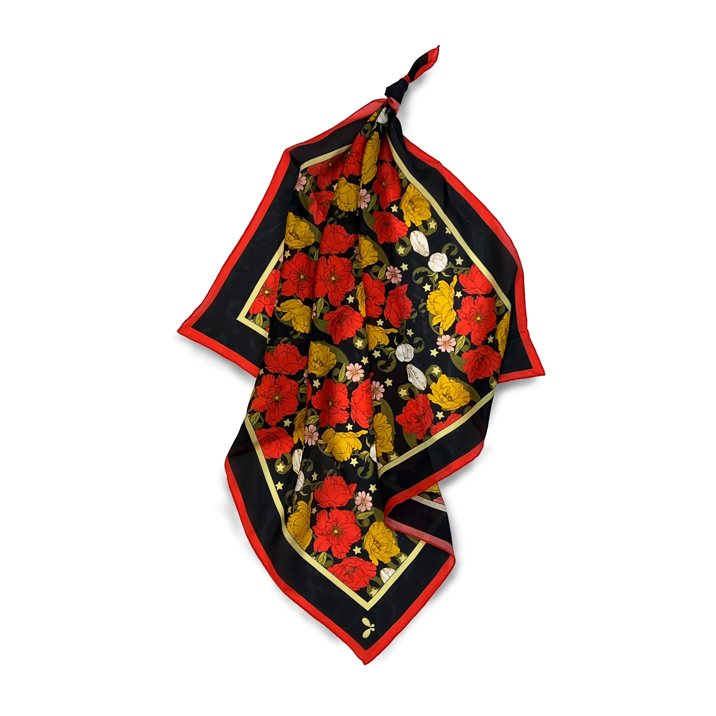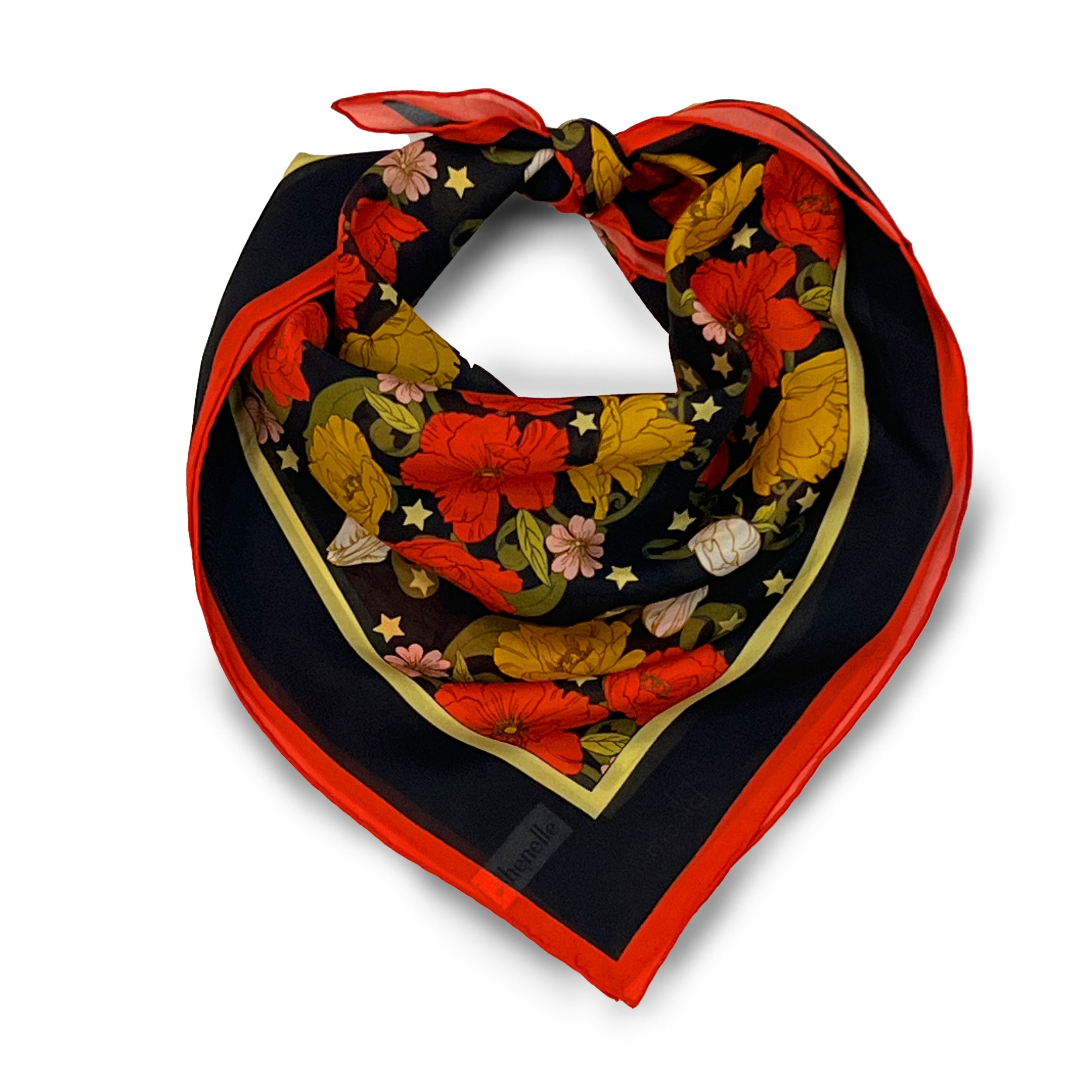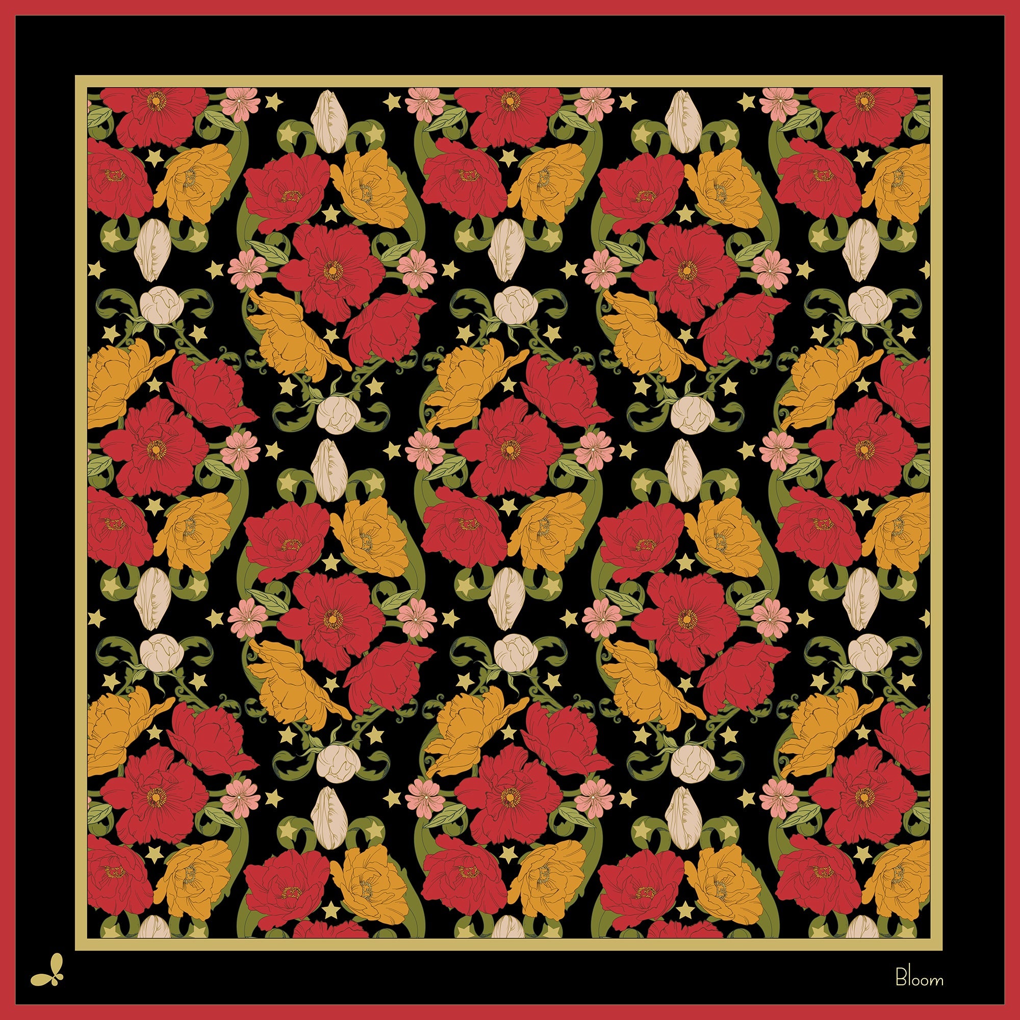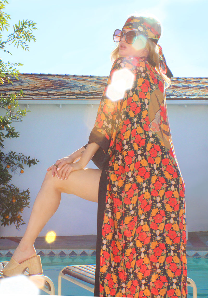 Vintage floral print inspired by the state flower of Cali, the orange poppy. Yellow, Orange, Tan Shades.