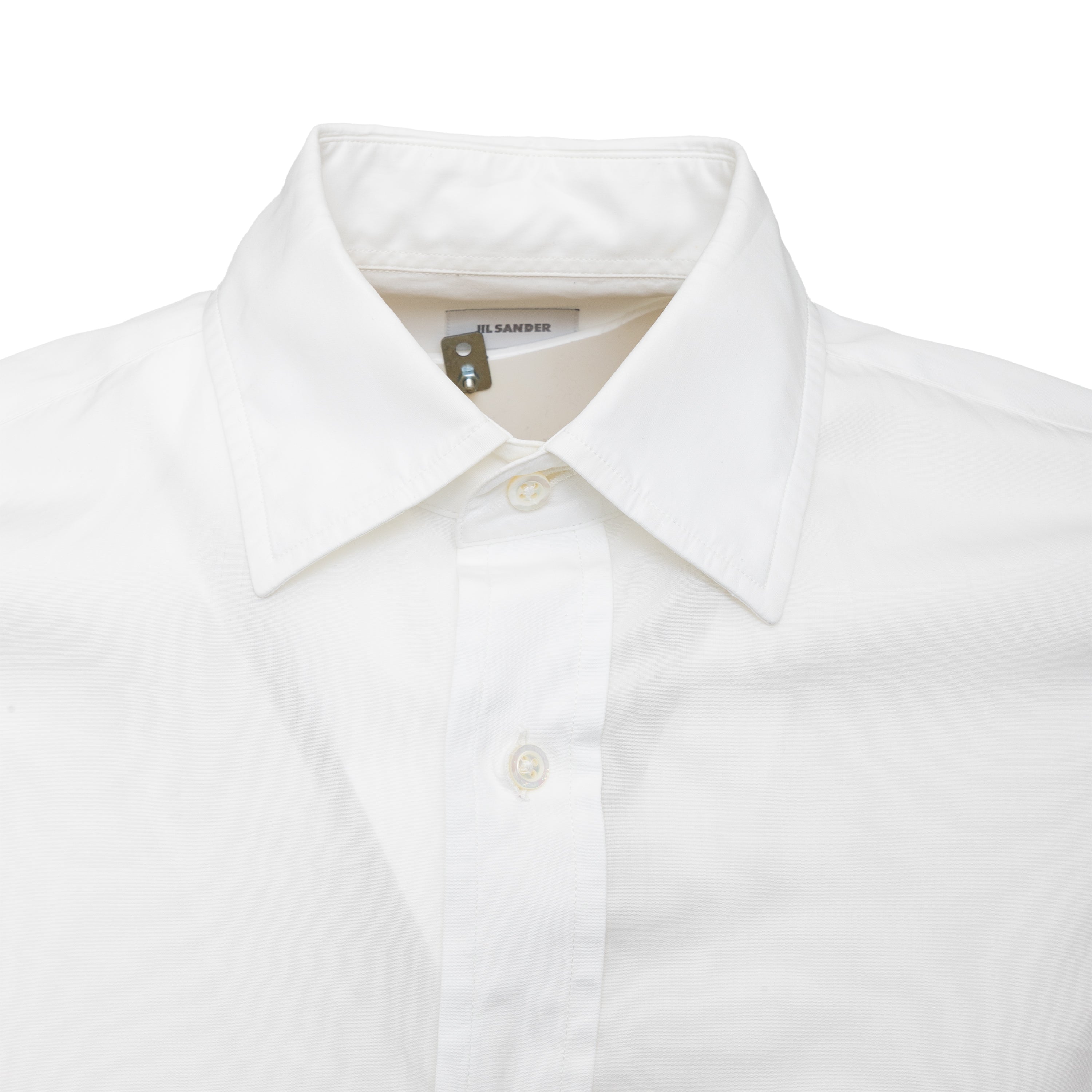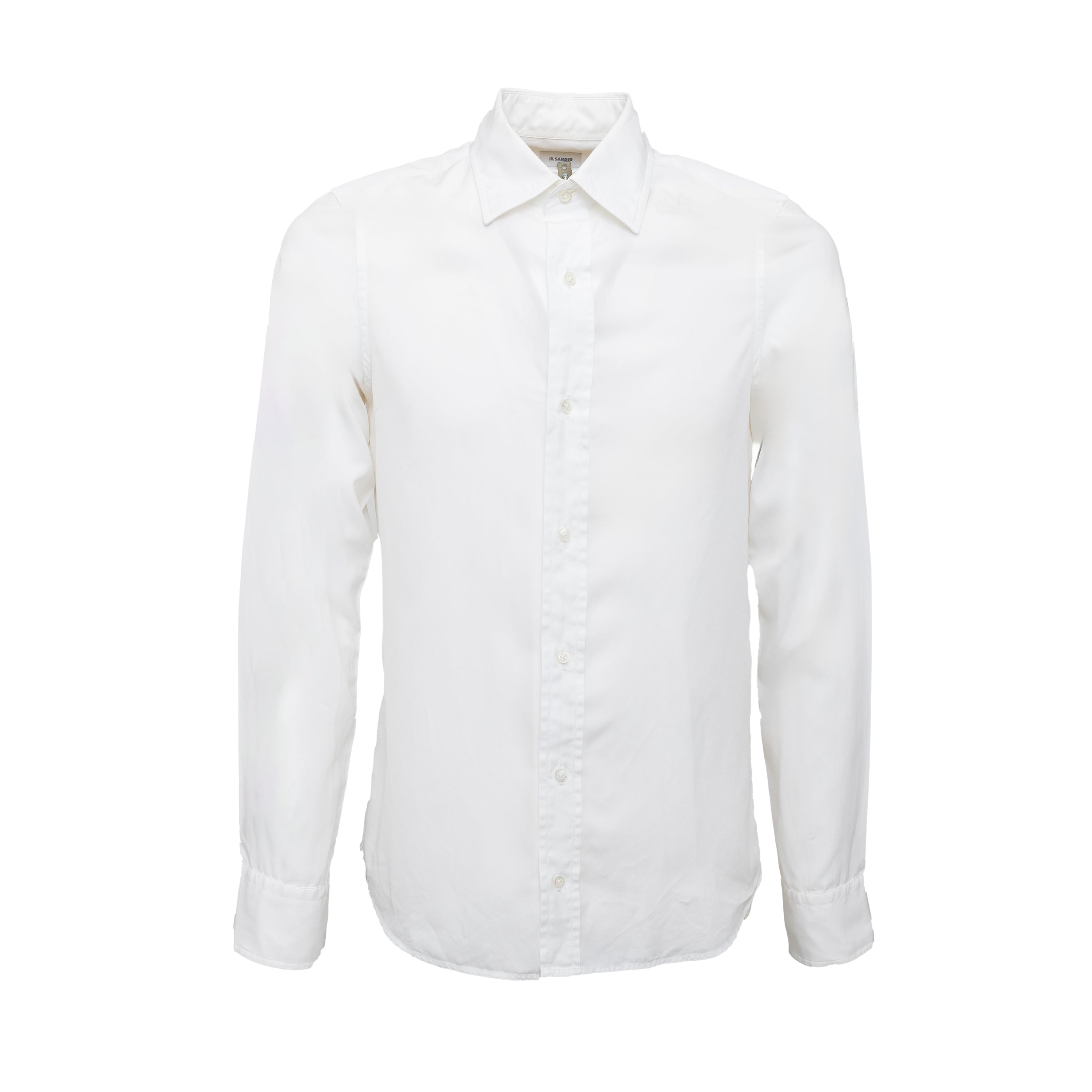 This Jil Sander Classic Shirt is expertly crafted from a cotton fabric. Its front button closure, featuring mother of pearl cream color buttons, adds to its stylish and classic look. The long sleeve and cuff design offers a comfortable fit.