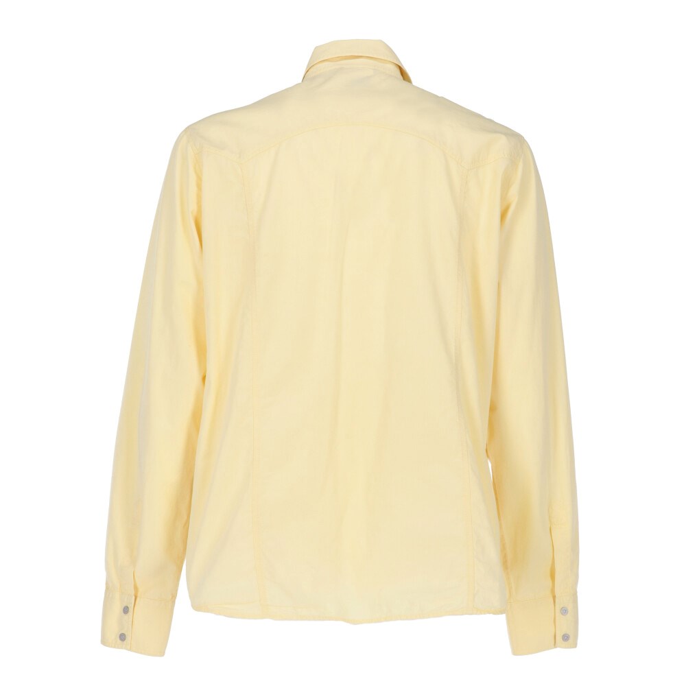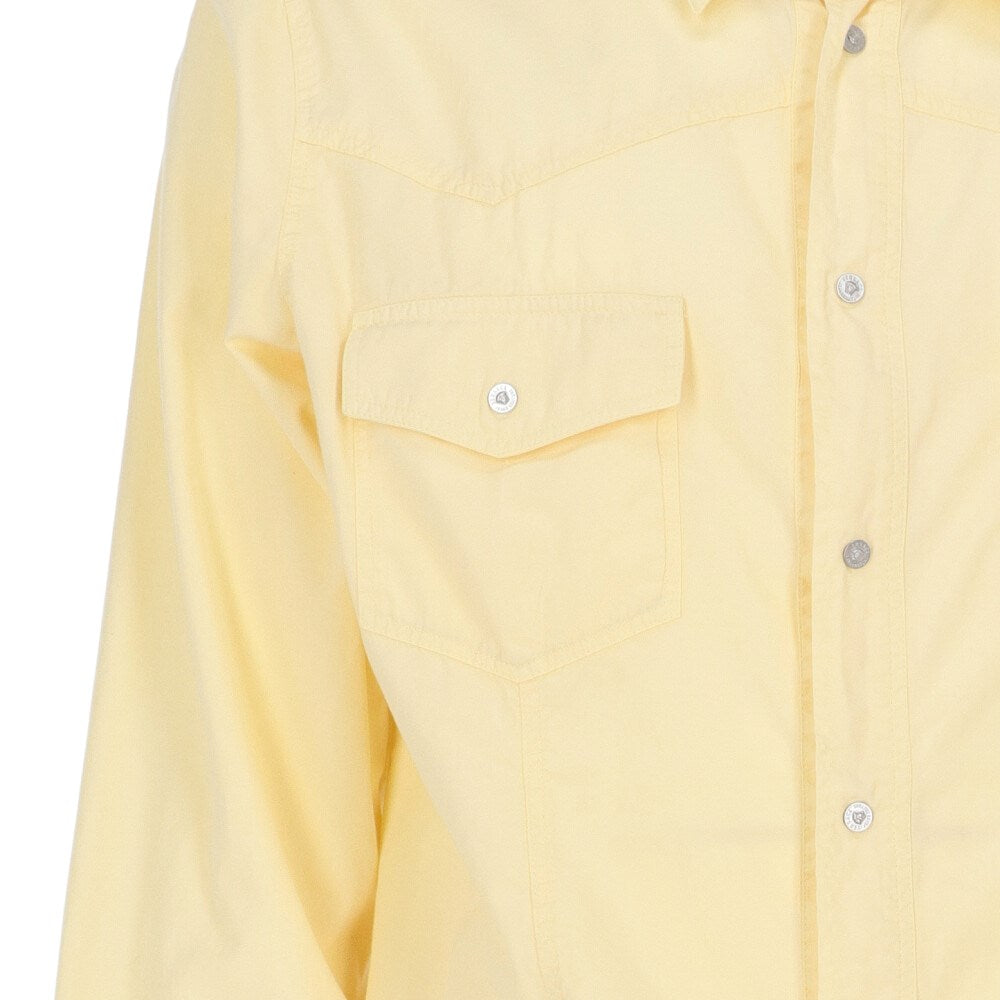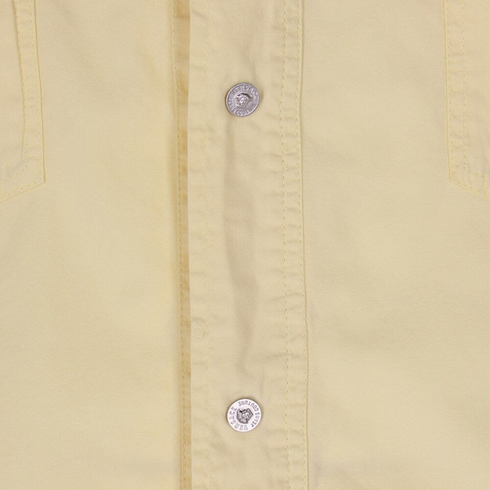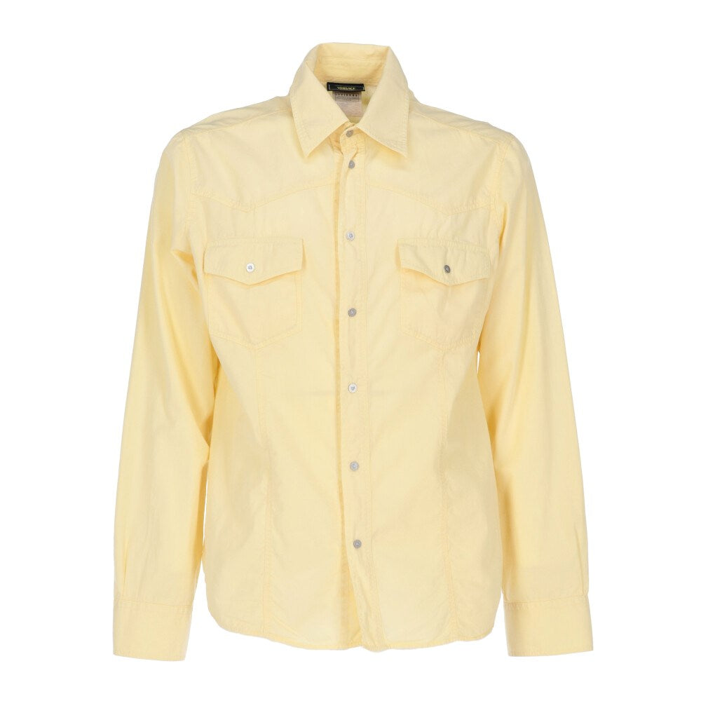 Versace yellow cotton shirt. Classic collar, front closure with logoed snap buttons, two patch pockets with flaps and buttoned cuffs.
