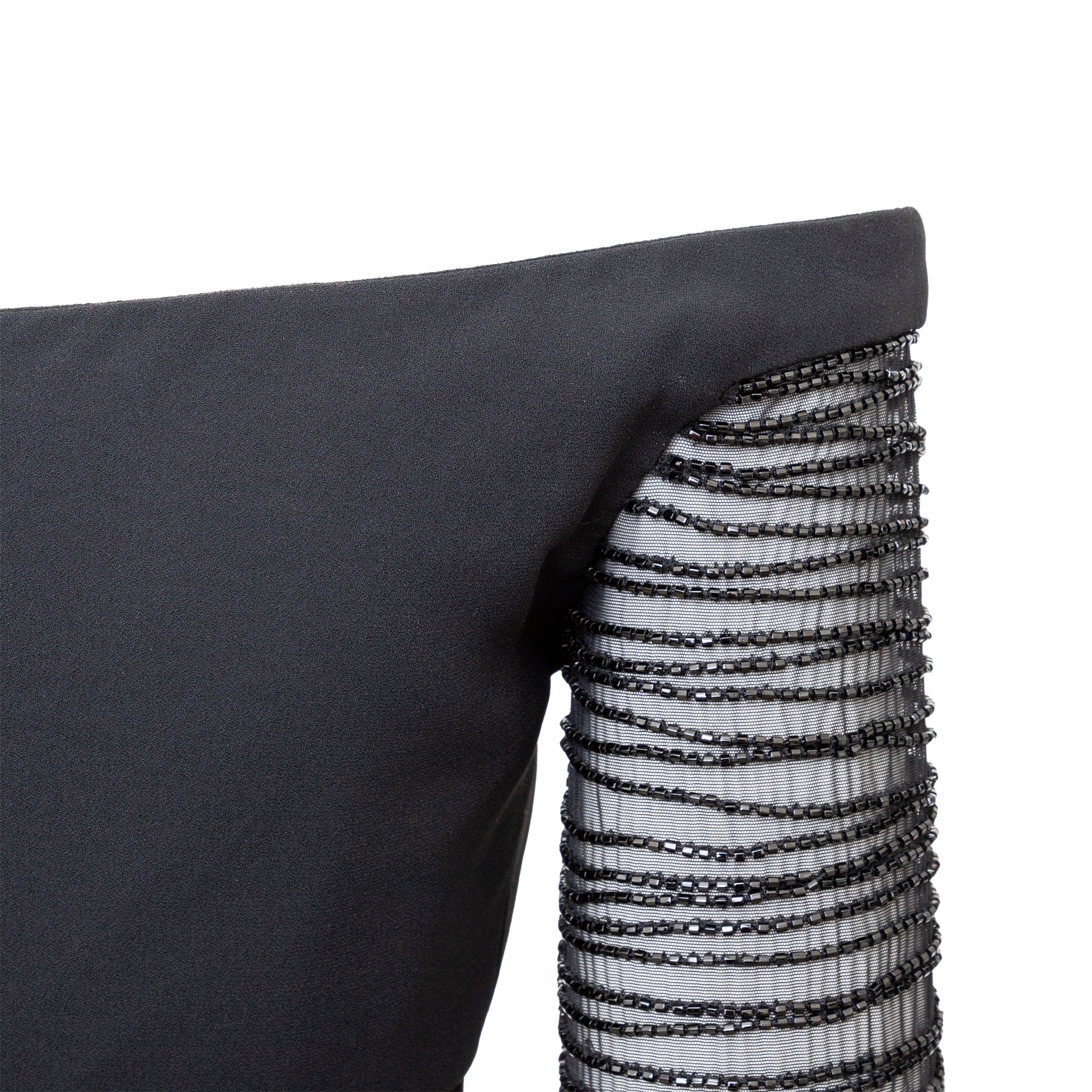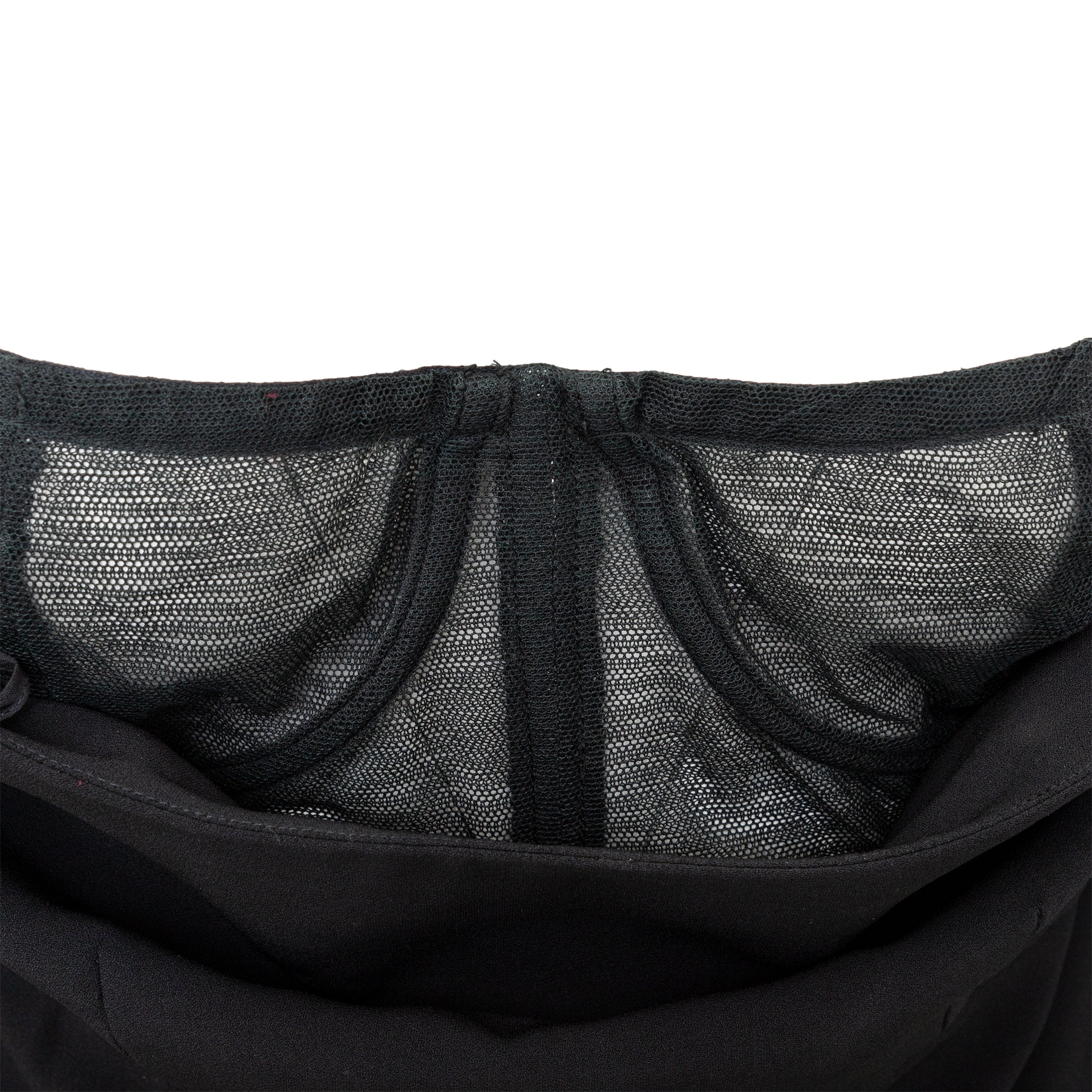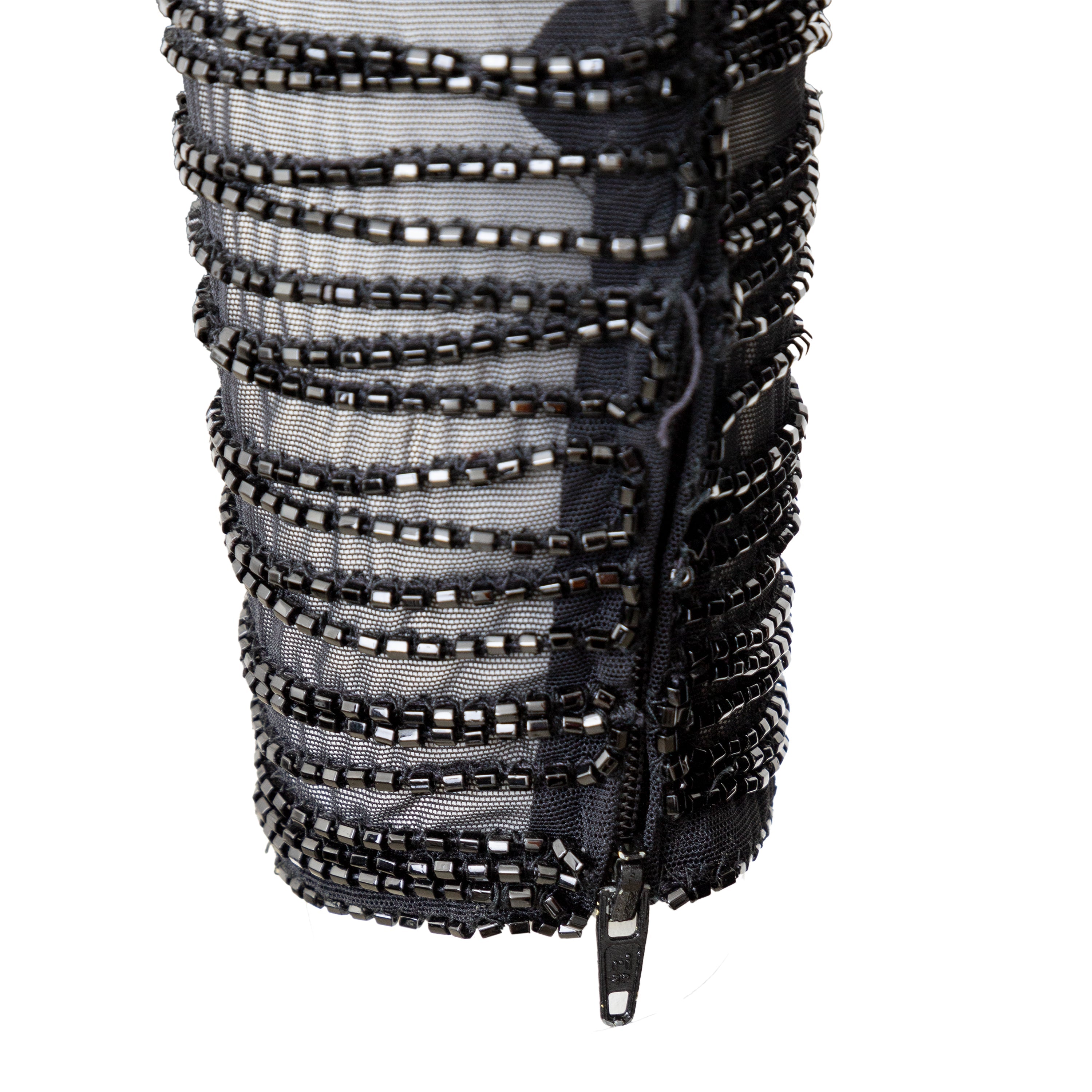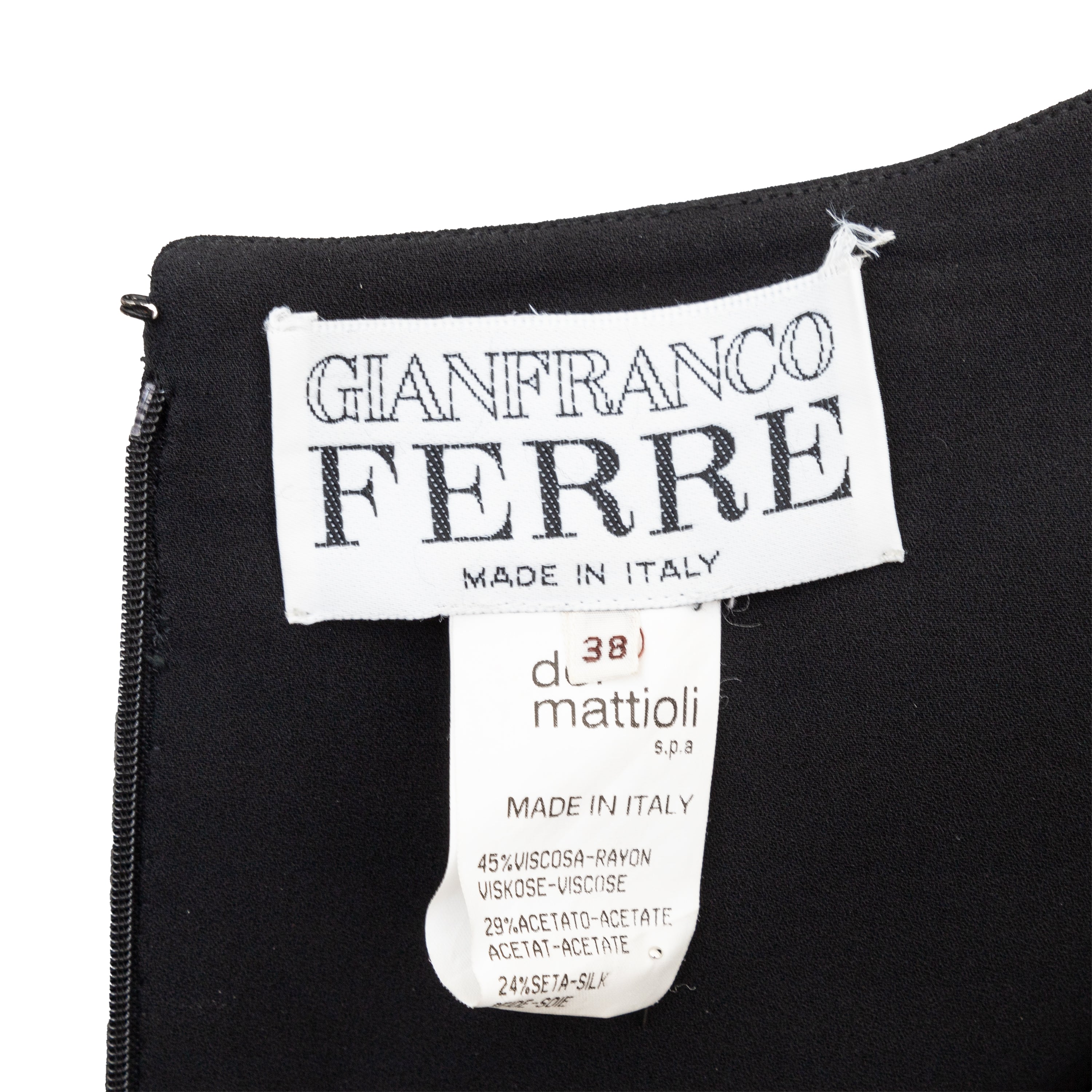 Elegant and timeless, this Gianfranco Ferré off-shoulder long dress captures the essence of the 90s. Adorned with black tubular crystals, the sheer long sleeves with the off-shoulder design add a touch of glamour to the classic silhouette.