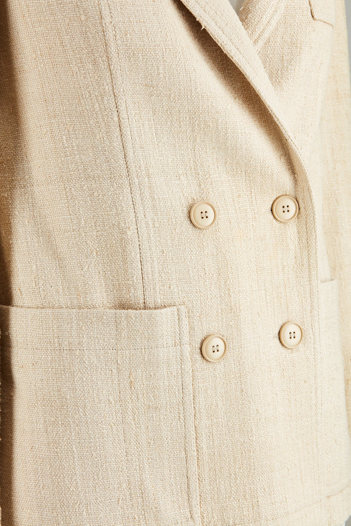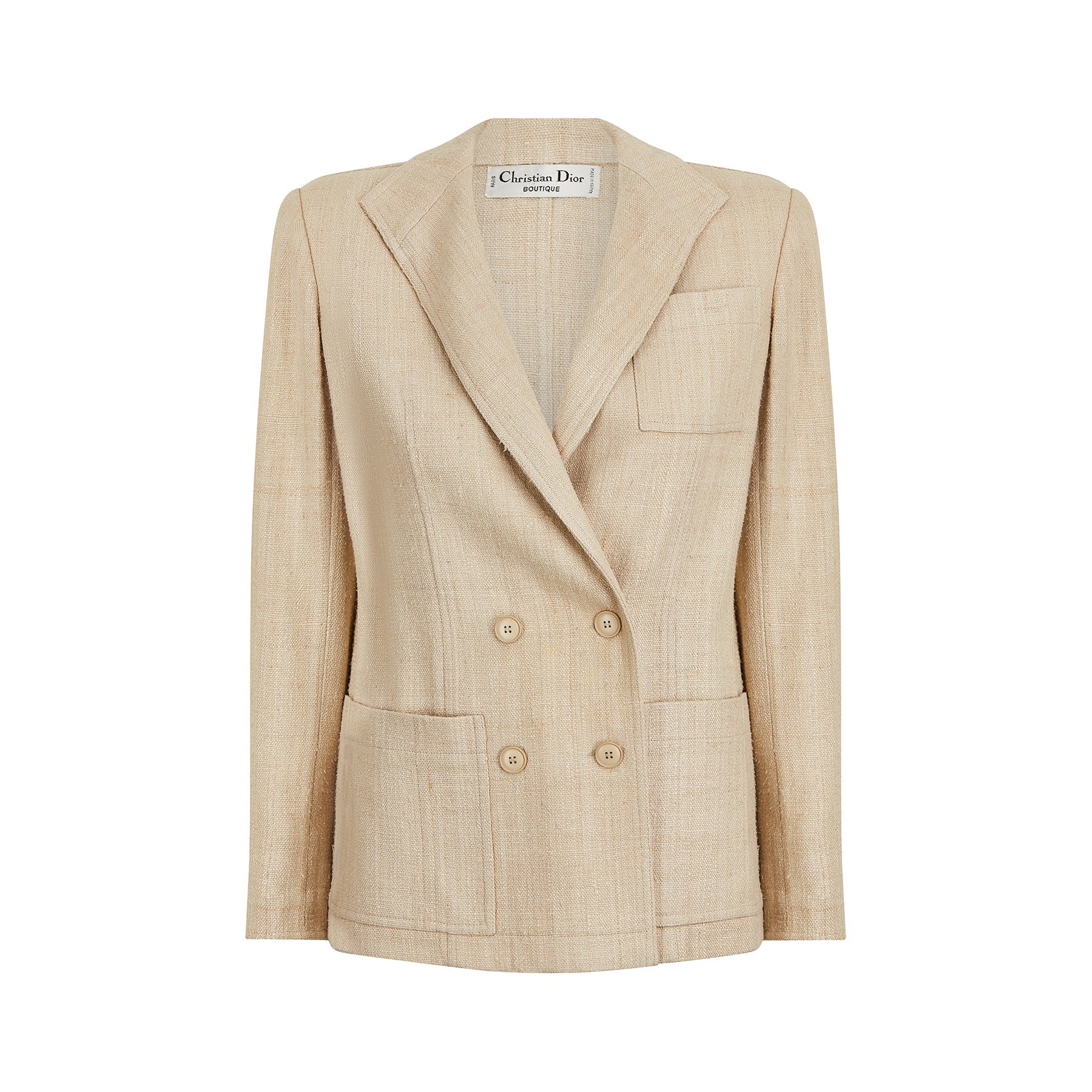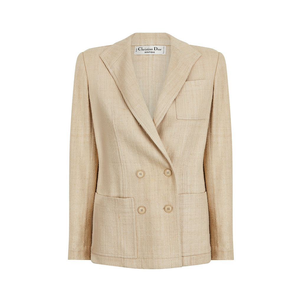 1990s Christian Dior Oatmeal Linen Double Breasted Jacket